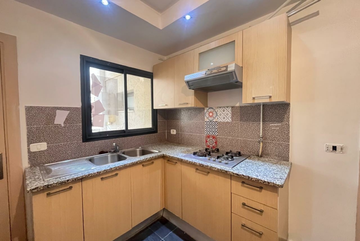 Ce bureau H+2 est situé au cœur d’Ezzahra. Il dispose d’un salon lumineux grâce à son ouverture sur un balcon, ainsi que d’une cuisine équipée d’éléments de rangement, hotte, plaque et four. Il comprend également deux chambres et une salle de bain.
