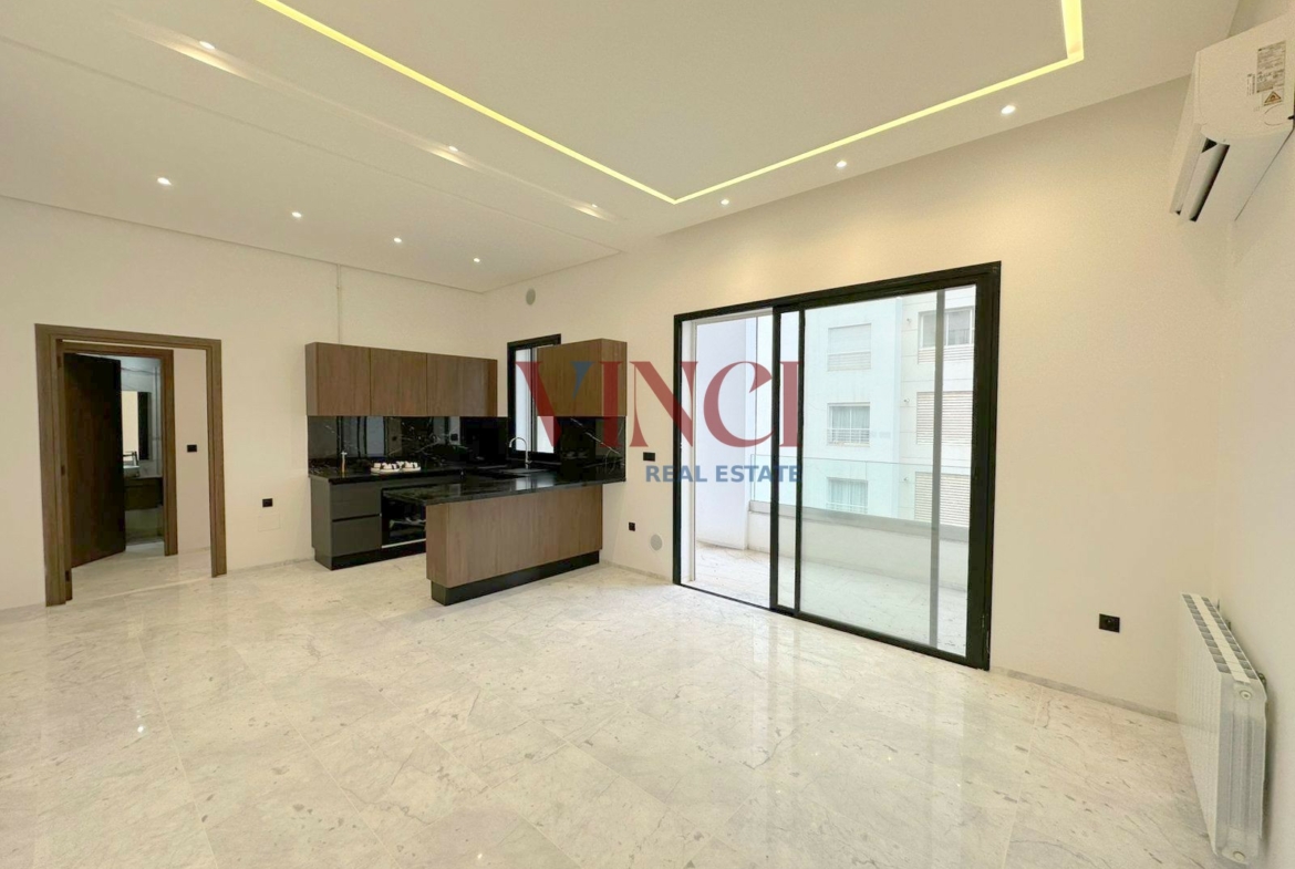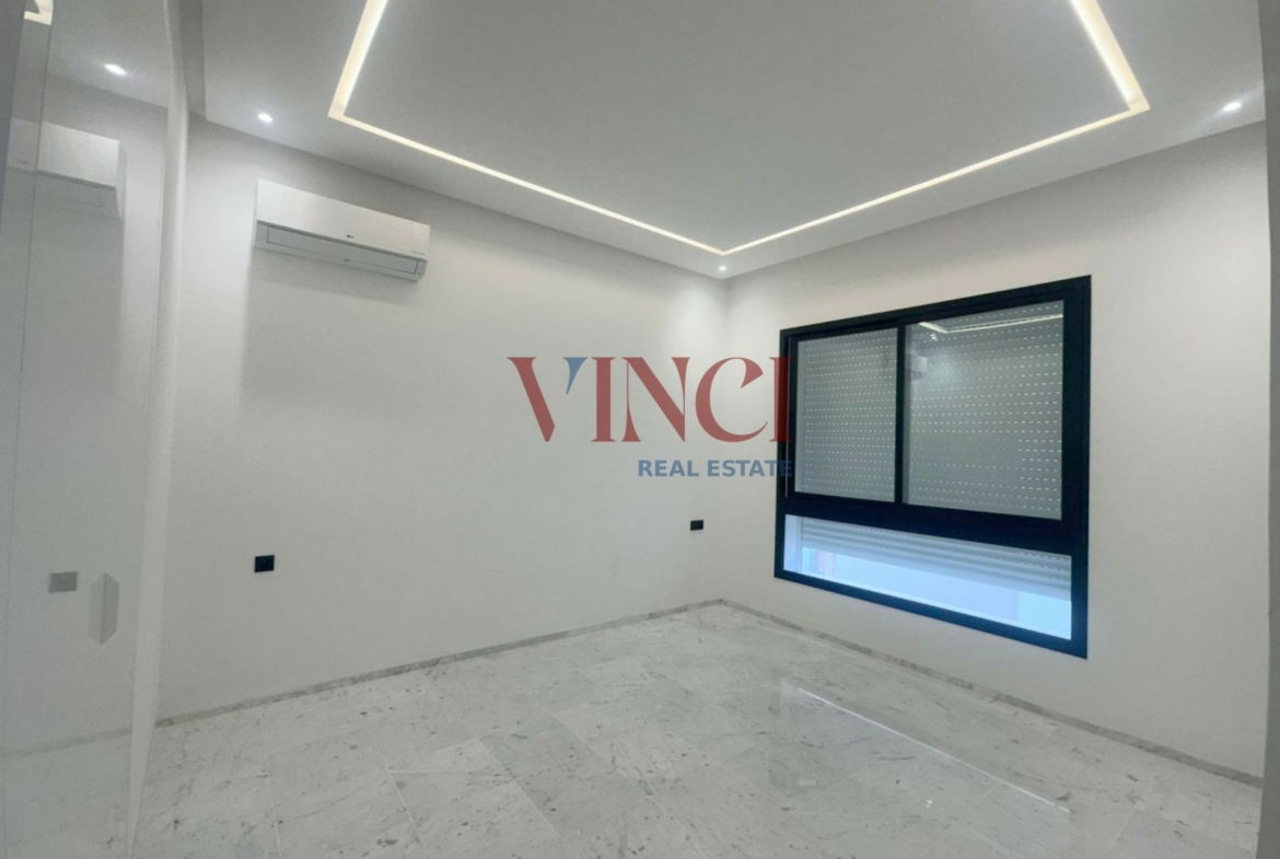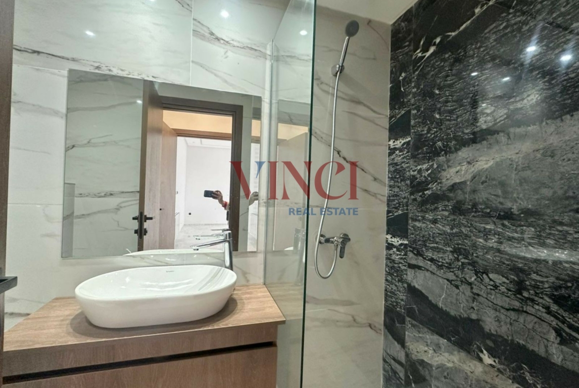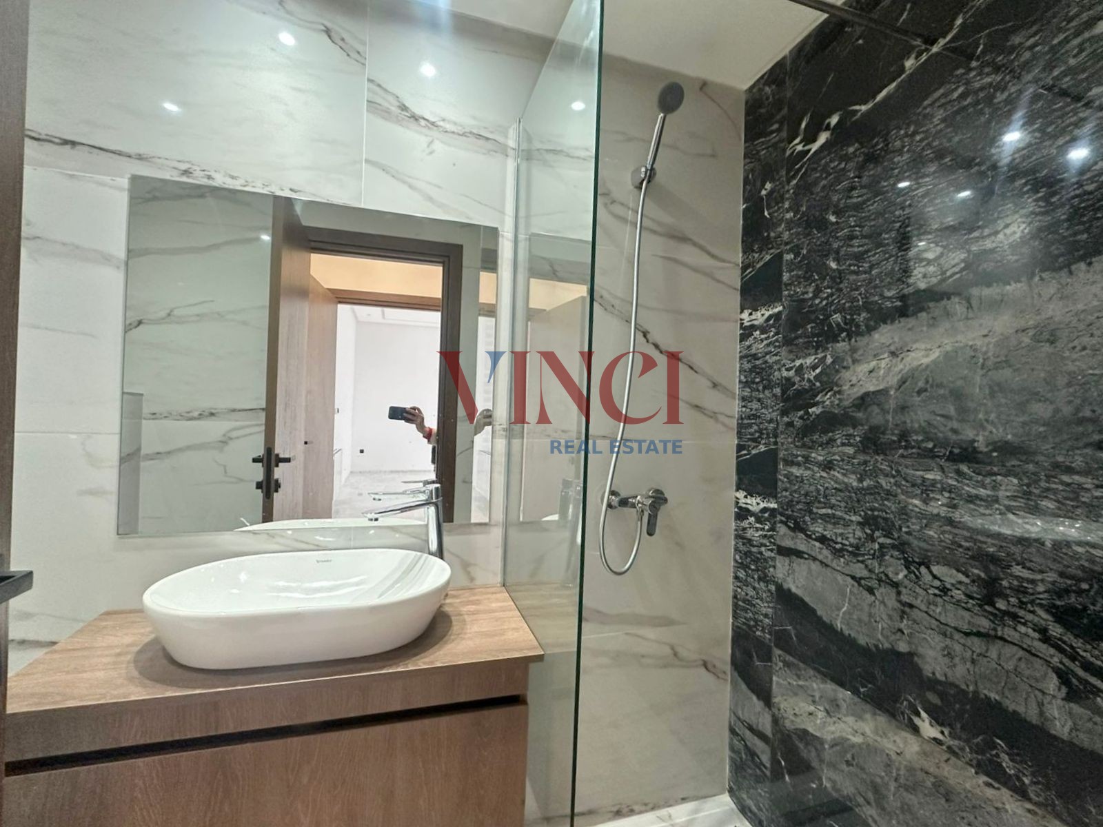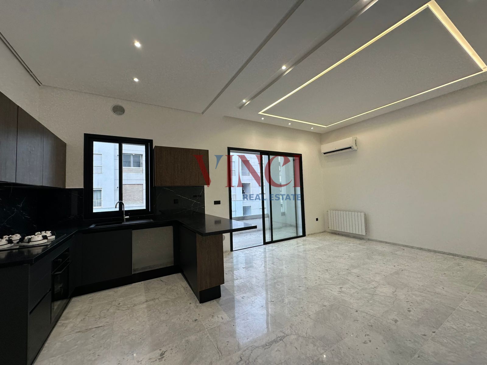 Cet appartement est situé au cinquième étage d’une résidence calme et sécurisée de sept niveaux. Il se compose d’un salon lumineux ouvrant sur une terrasse et dispose d’un chauffage central ainsi que de la climatisation. La cuisine ouverte est équipée d’une plaque de cuisson, d’un four électrique et d’une hotte aspirante. La partie nuit comprend une chambre à coucher avec dressing ainsi qu’une salle de douche