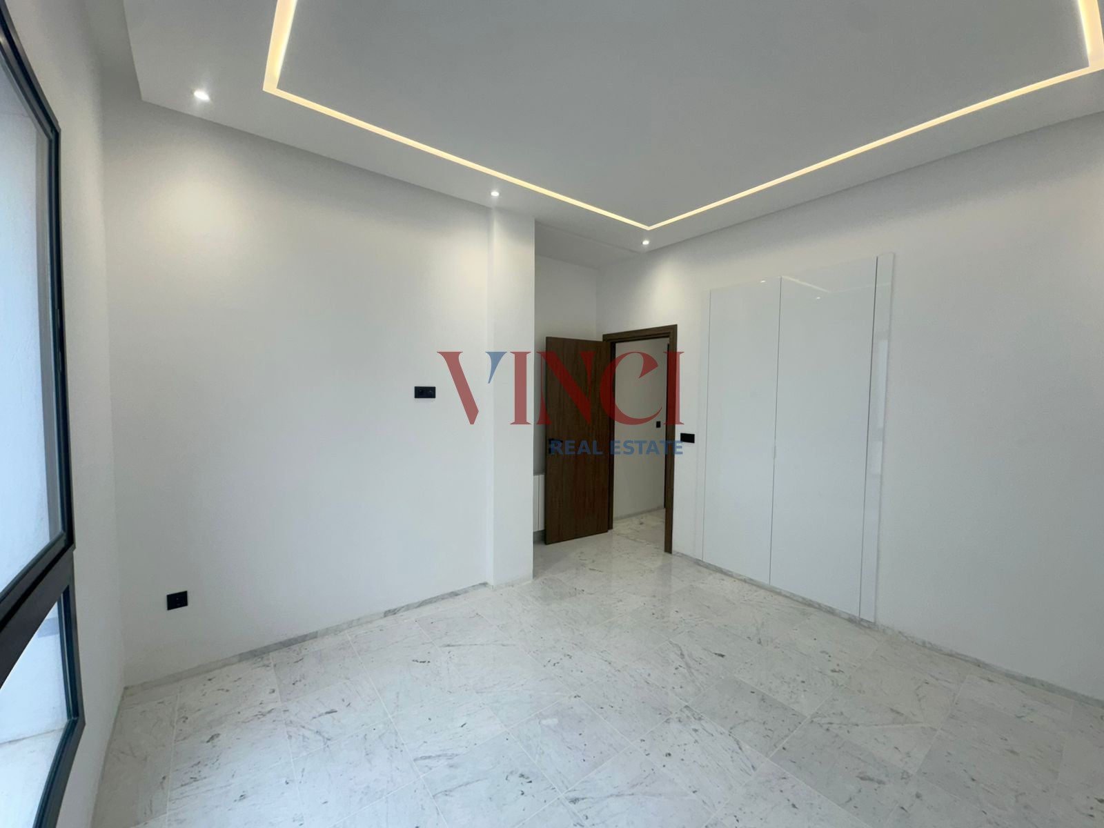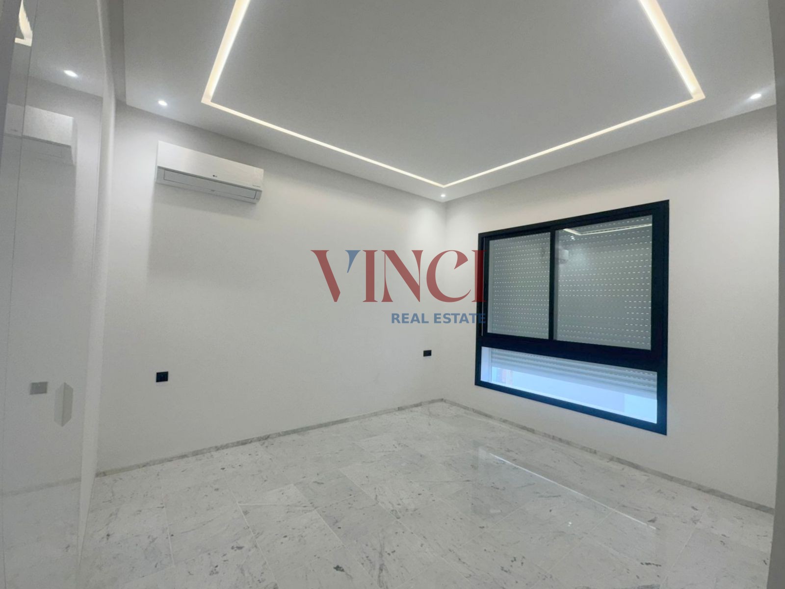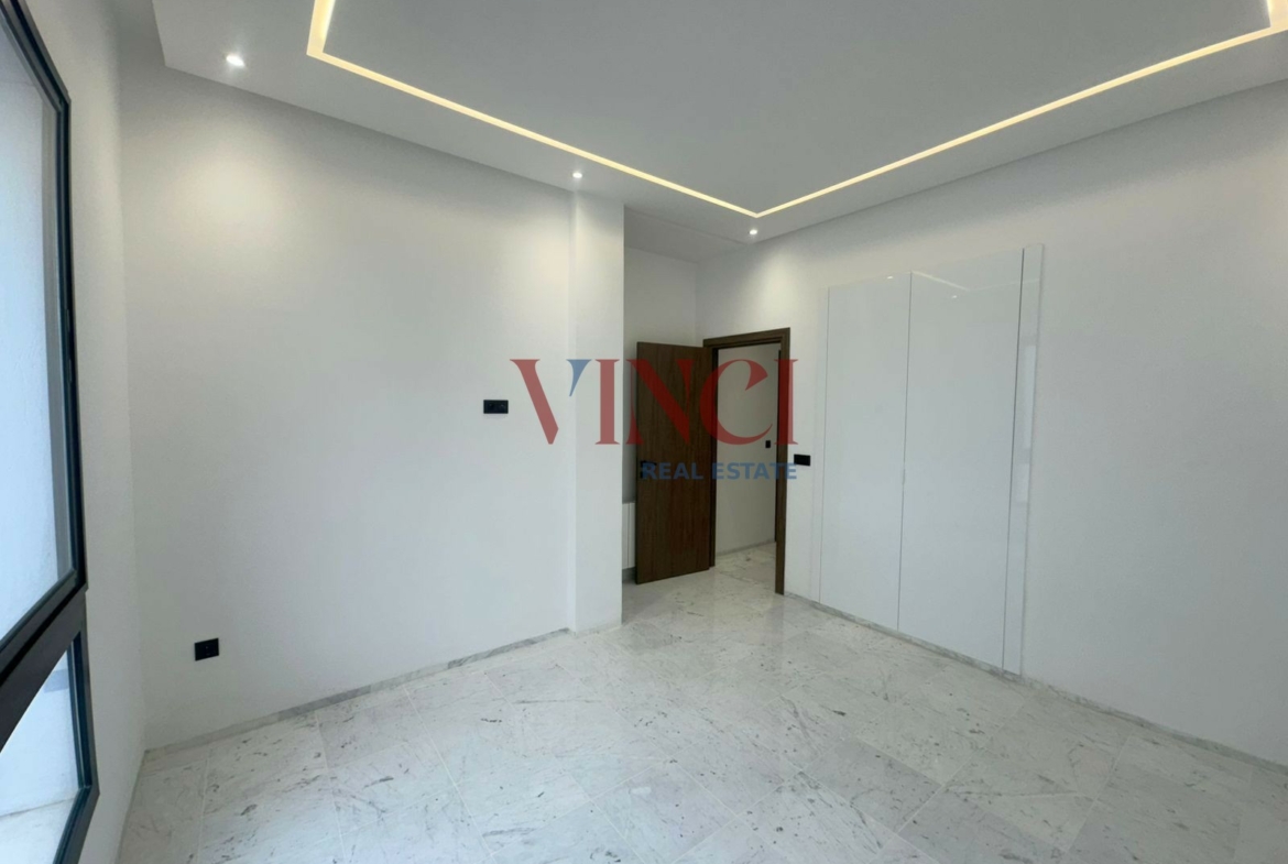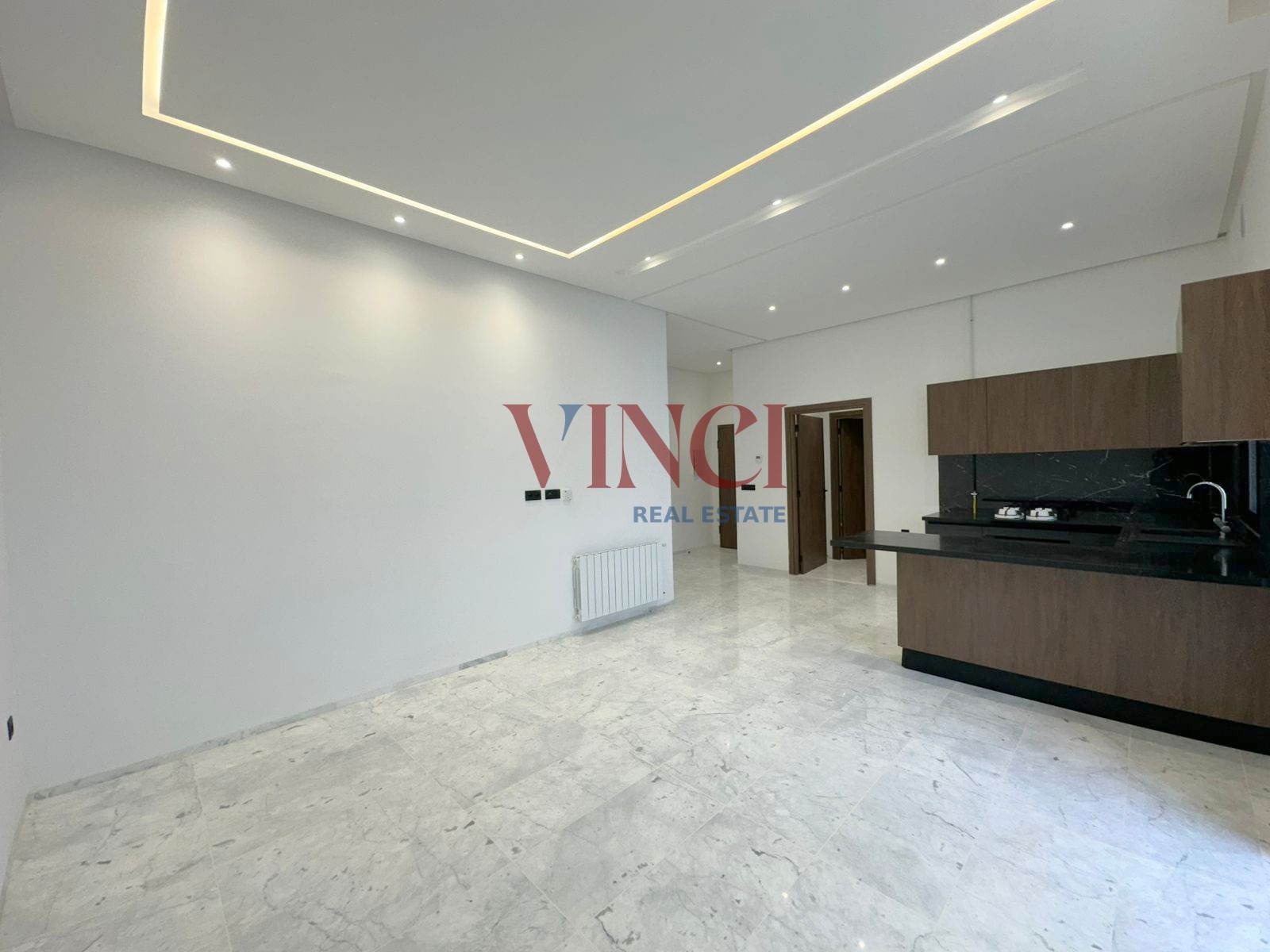 Cet appartement est situé au cinquième étage d’une résidence calme et sécurisée de sept niveaux. Il se compose d’un salon lumineux ouvrant sur une terrasse et dispose d’un chauffage central ainsi que de la climatisation. La cuisine ouverte est équipée d’une plaque de cuisson, d’un four électrique et d’une hotte aspirante. La partie nuit comprend une chambre à coucher avec dressing ainsi qu’une salle de douche