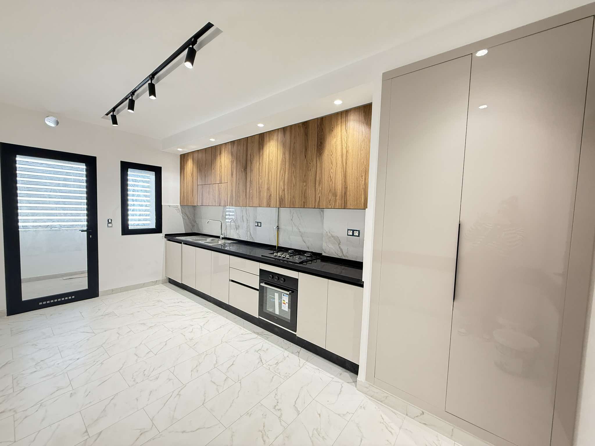 À l’entrée, un hall dessert un salon ouvrant lumineux . La cuisine moderne est aménagée et équipée d’une plaque chauffante, d’une hotte aspirante et d’un four électrique. Elle est complétée par un séchoir fonctionnel. Une salle d’eau pour les invités vient compléter la partie jour.