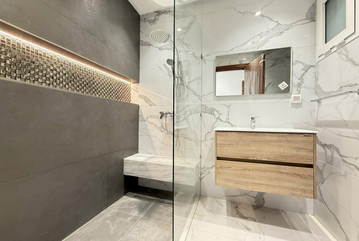 La partie nuit se compose de deux chambres à coucher, chacune disposant de dressings. une salle d’eau avec cabine de douche.