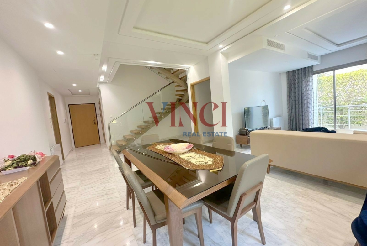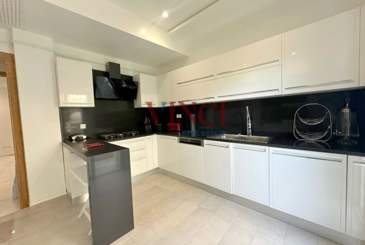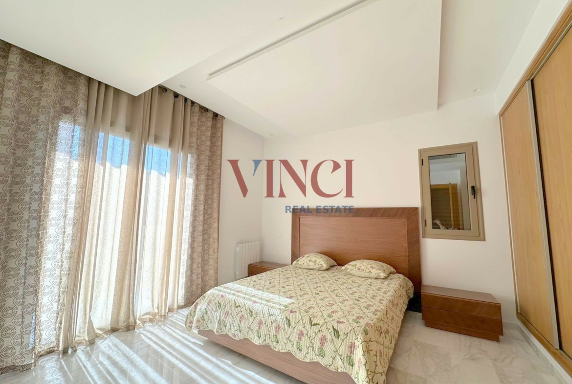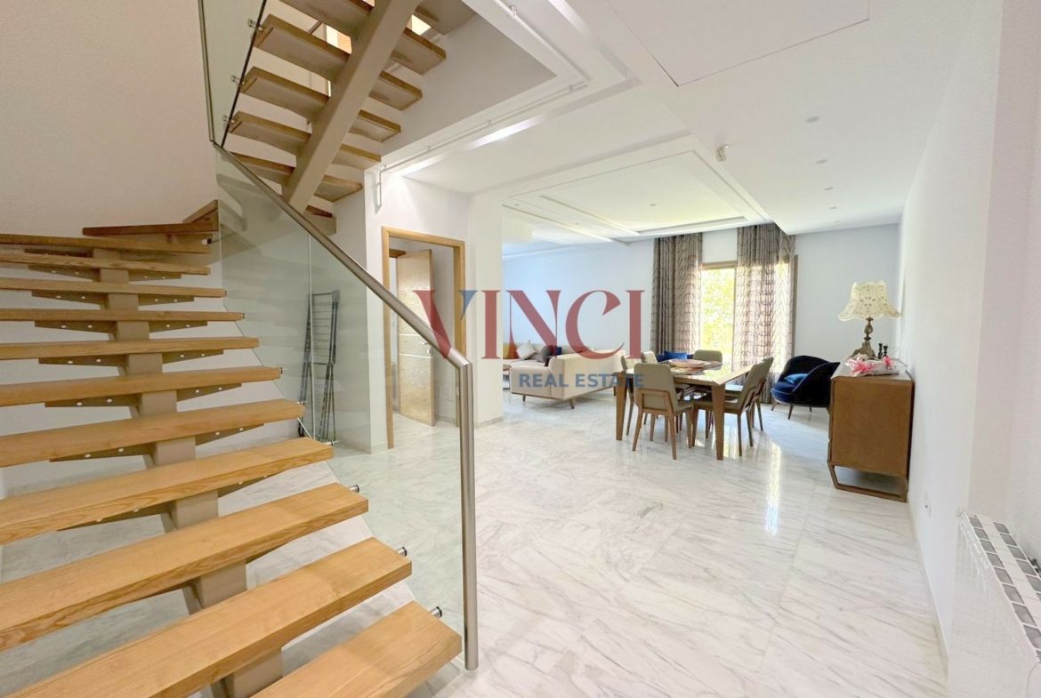 Ce duplex richement meublé est situé dans une résidence calme et sécurisée de deux niveaux. Il dispose d’un jardin entourant le salon avec télévision et la cuisine fermée, entièrement équipée, avec vue sur le jardin. Le bien comprend également le chauffage central, la climatisation et une salle d’eau pour les invités au rez-de-chaussée. À l’étage, vous trouverez une suite parentale avec dressing et salle de douche, deux chambres avec dressing, une salle de bain commune ainsi qu’une place de parking.
