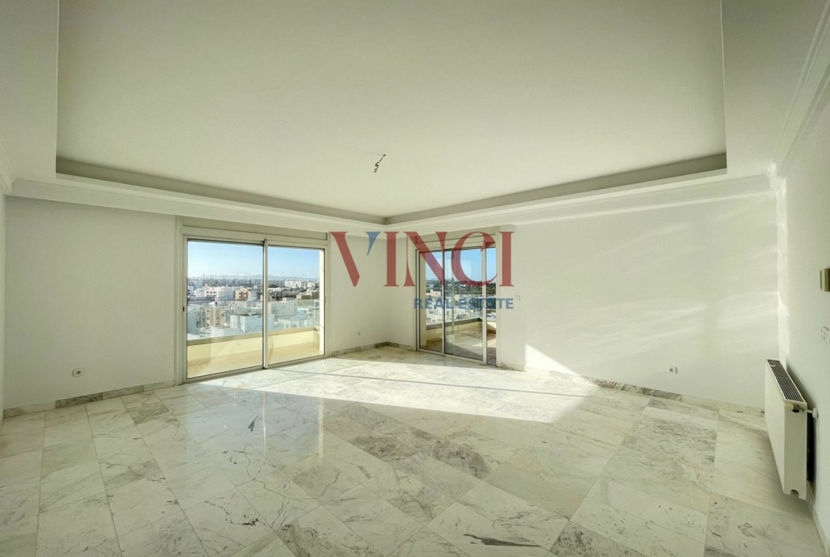 Cet appartement, idéalement situé à Ain Zaghouan Nord, bénéficie de la proximité immédiate de toutes les commodités. Il se trouve au sixième et dernier étage d’une résidence sécurisée équipée de deux ascenseurs.