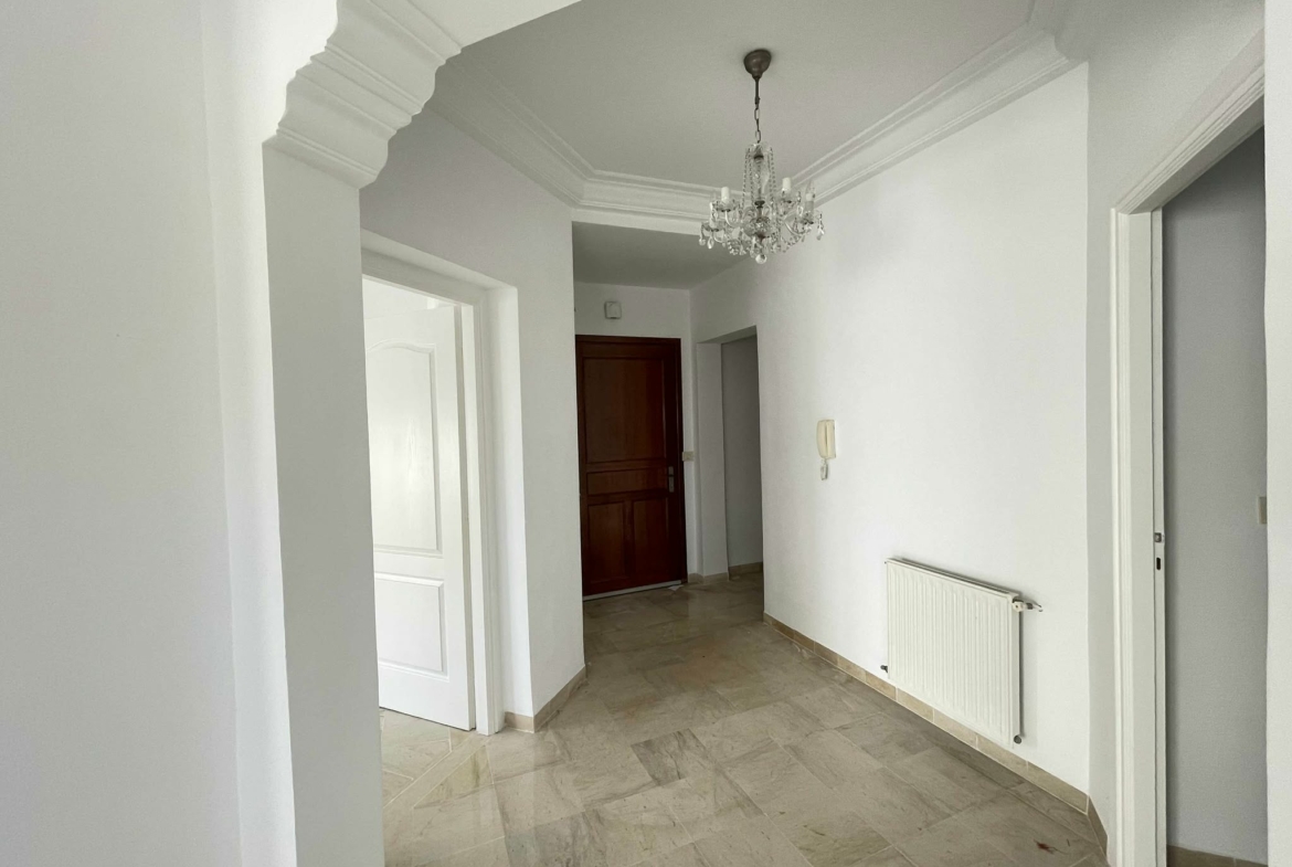 Cet appartement se distingue par ses volumes généreux et son emplacement privilégié au sixième étage d’une résidence bien entretenue, dotée d’un double ascenseurs et située à proximité de toutes les commodités. L’entrée s’ouvre sur un vaste séjour lumineux grâce à son orientation sud-est, permettant d’aménager aisément un salon ainsi qu’un espace salle à manger. Cette pièce de vie s’accompagne d’un balcon fonctionnel. La cuisine est bien agencée. Elle donne également accès à un séchoir pratique. Une salle d’eau pour les invités est disponible à l’entrée. L’espace nuit comprend quatre chambres à coucher dont deux sont équipées de dressings. Elles partagent une salle de bain commune. Une place de parking est disponible au sous-sol.