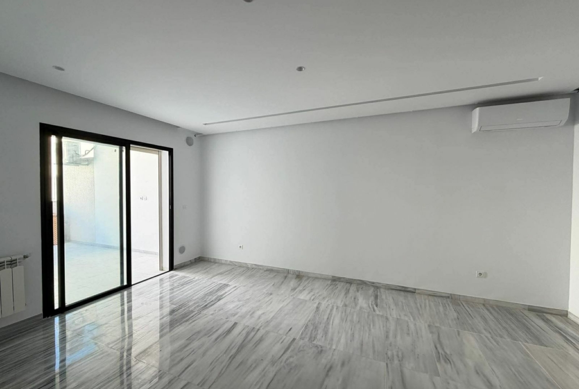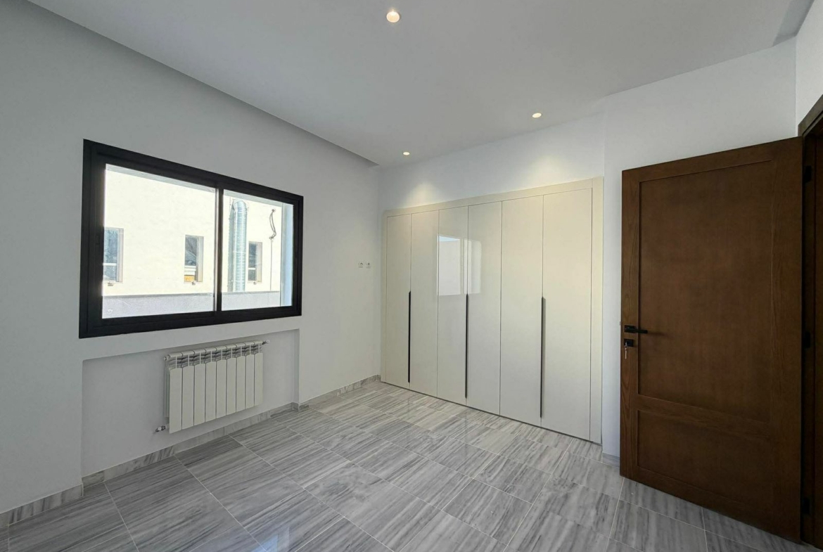 Cet appartement est situé au deuxième étage d’une résidence récente aux jardins de l’aouina à proximité immédiate de toutes les commodités.