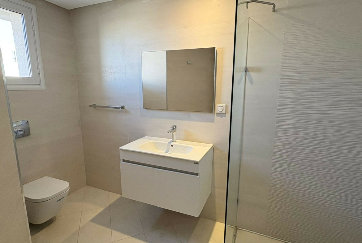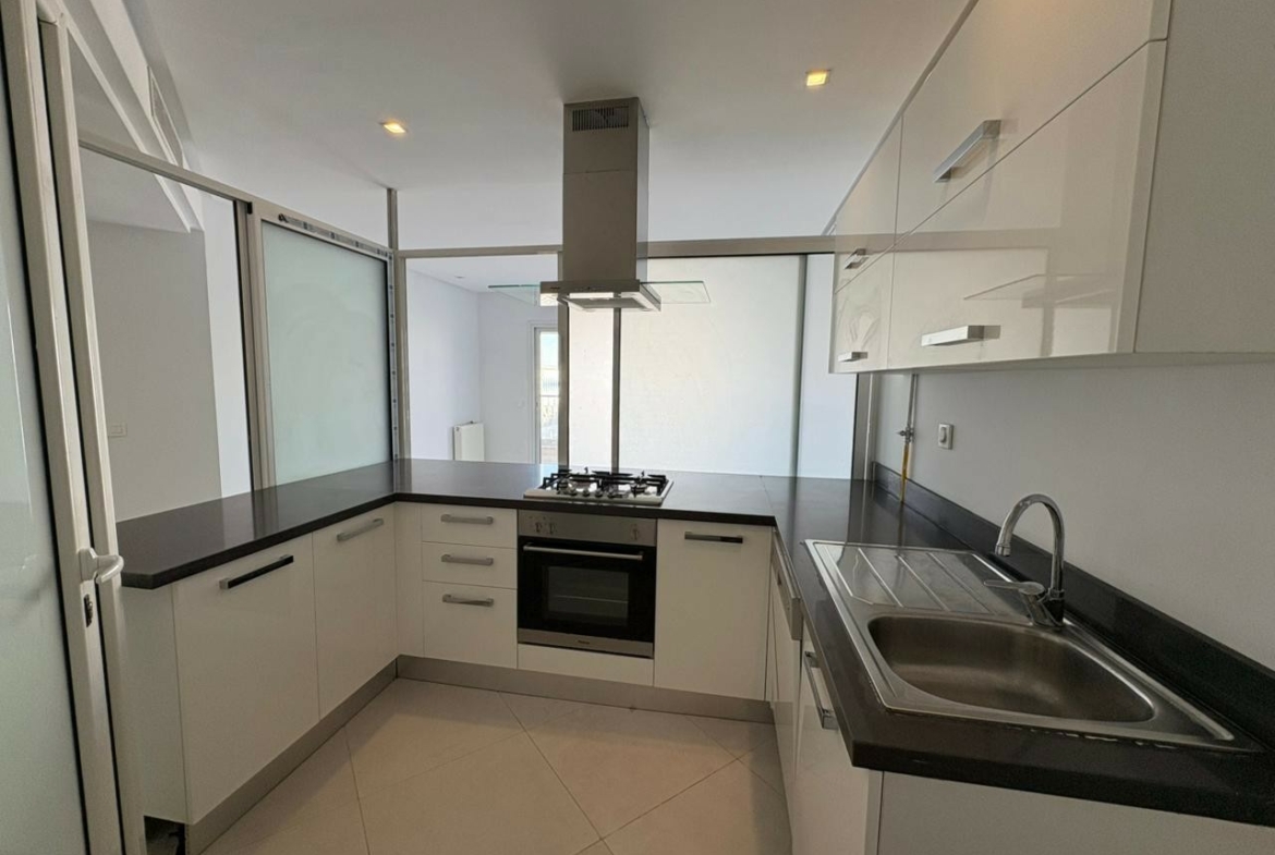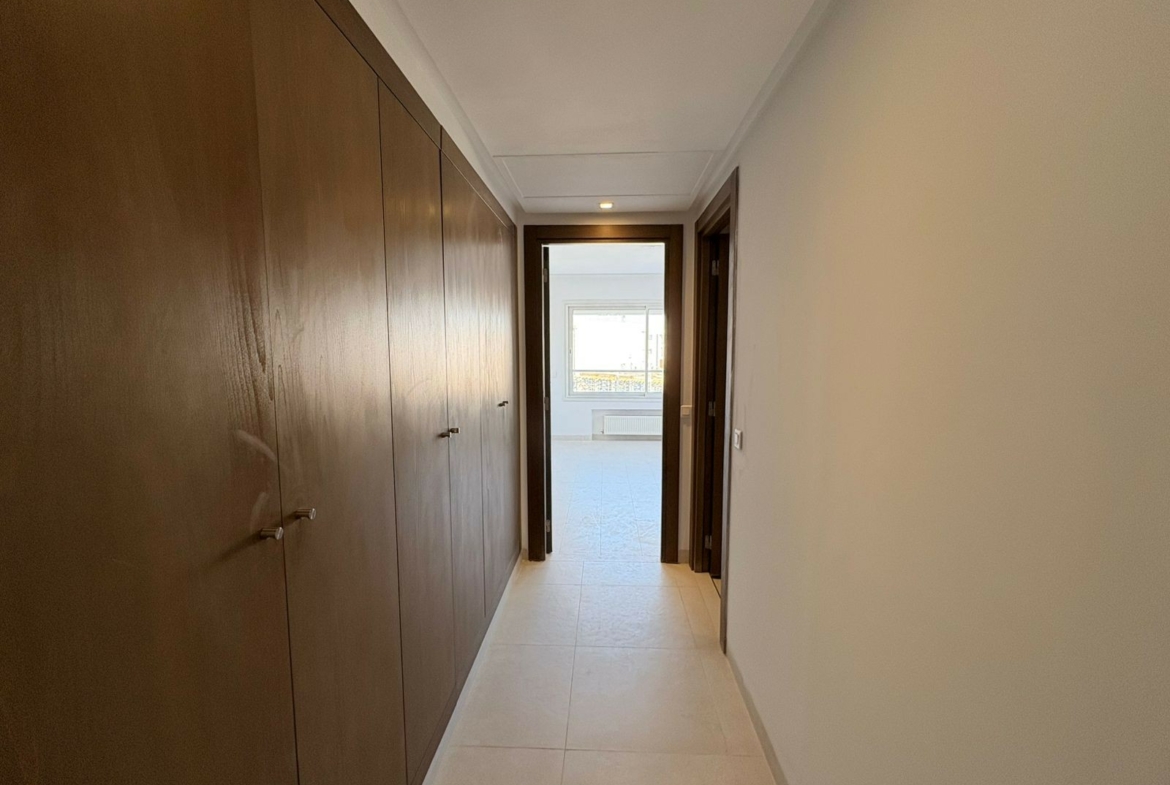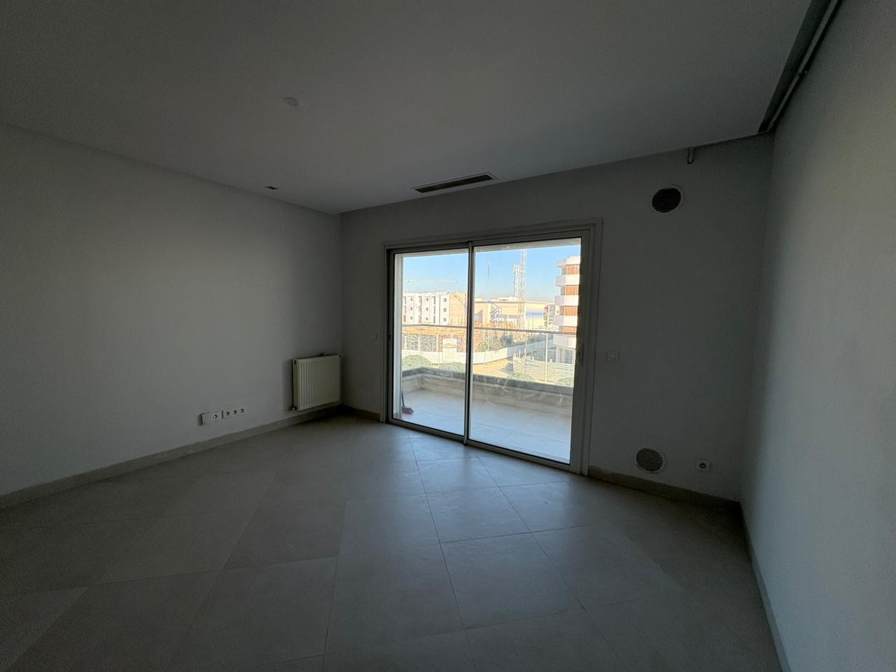 Un appartement en S+1 vide de 80 m², situé au 2ème étage d’une résidence sécurisée avec ascenseur aux Jardins de Carthage. Il comprend un salon lumineux ouvrant sur un balcon, une cuisine indépendante équipée, une chambre à coucher, un coin dressing au hall et une salle de douche commune. L’appartement est équipé de la climatisation et du chauffage central, et dispose d’une place de parking.