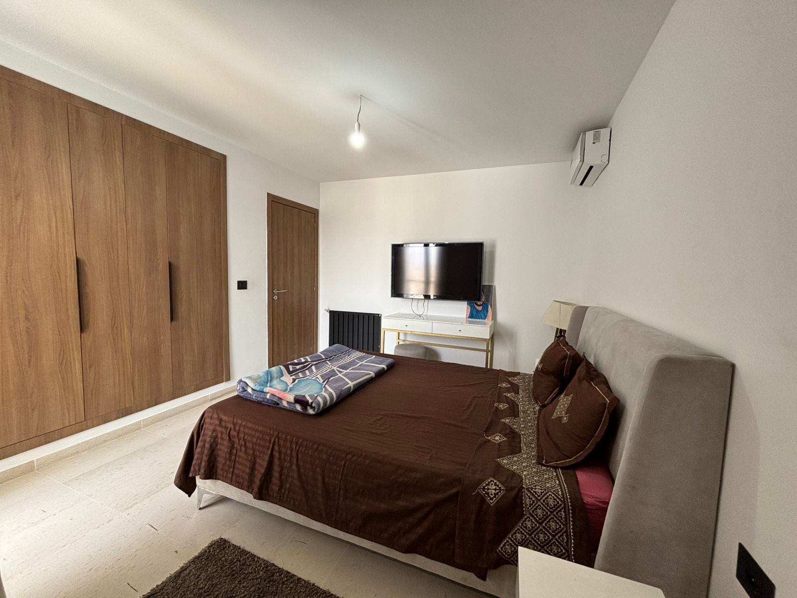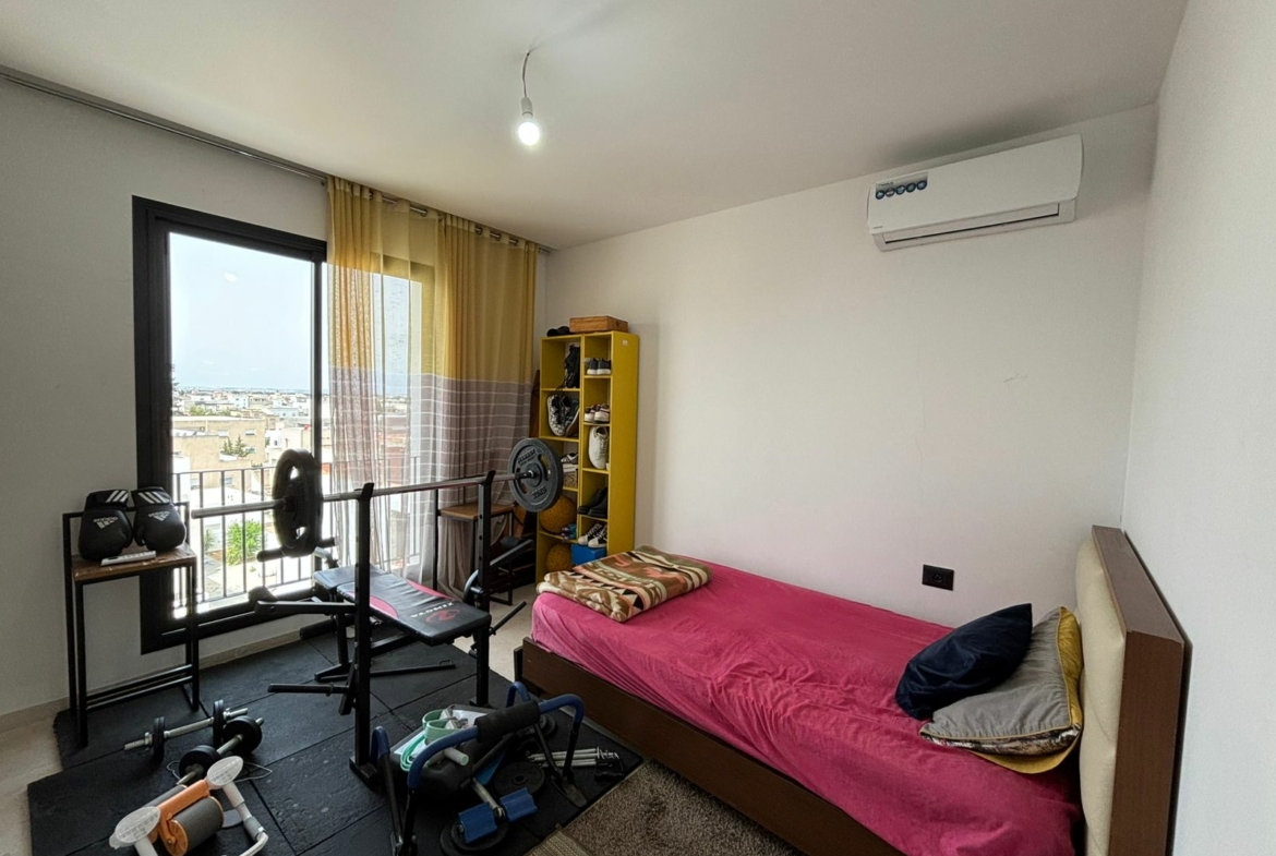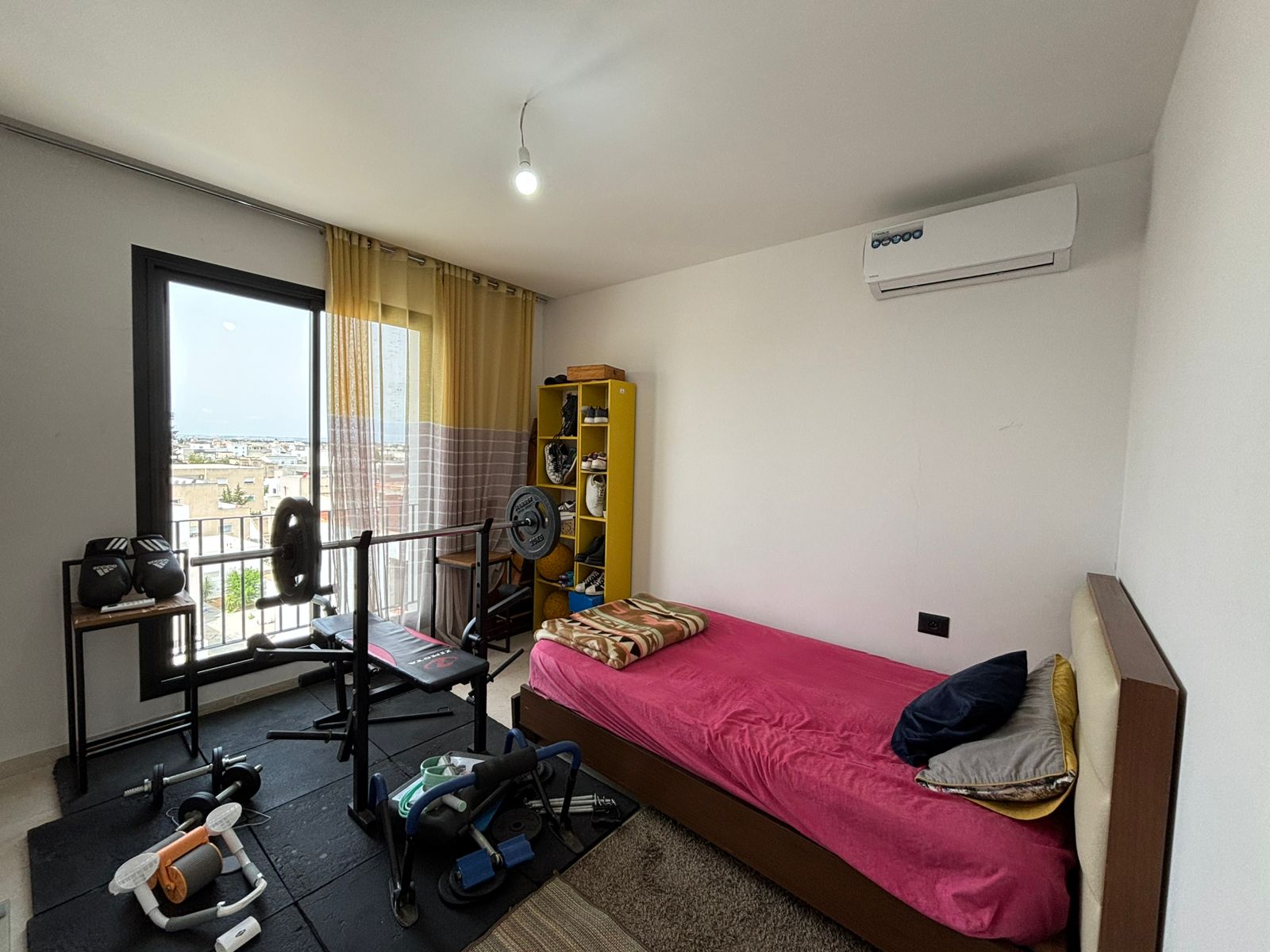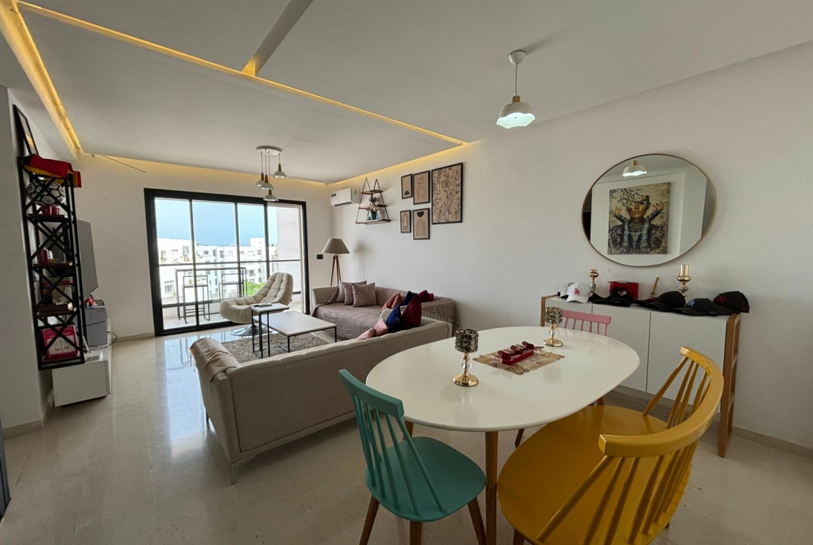 Cet appartement S+2 de 110 m² est situé dans une résidence R+4 à Boumhal, équipée d’un ascenseur. L’appartement s’ouvre sur une pièce de vie spacieuse, idéale pour aménager un salon et une salle à manger s’ouvrent sur un balcon. La cuisine est équipée par des éléments de rangement, plaque, hotte, four et dispose d’un séchoir