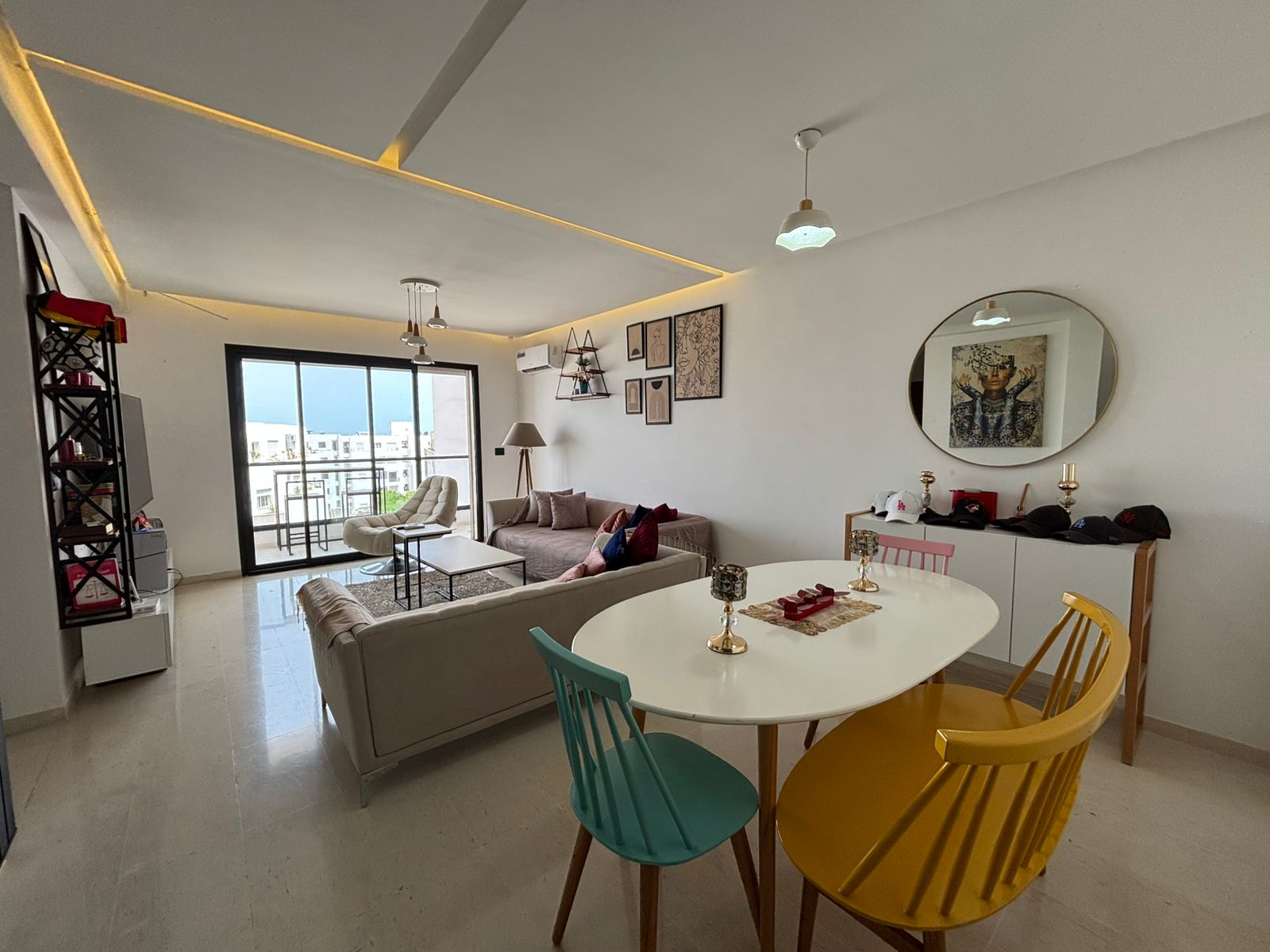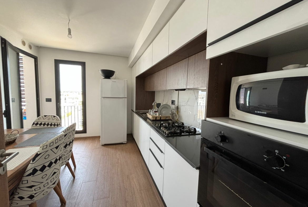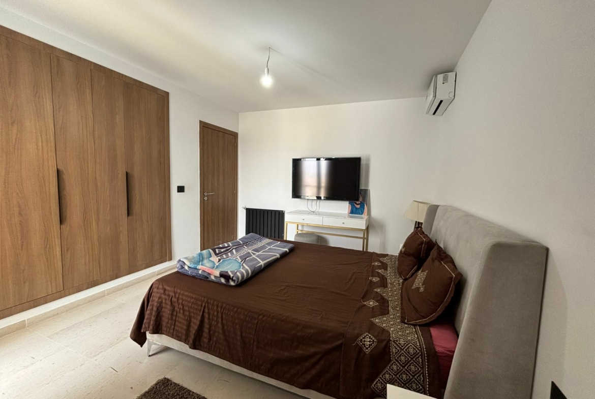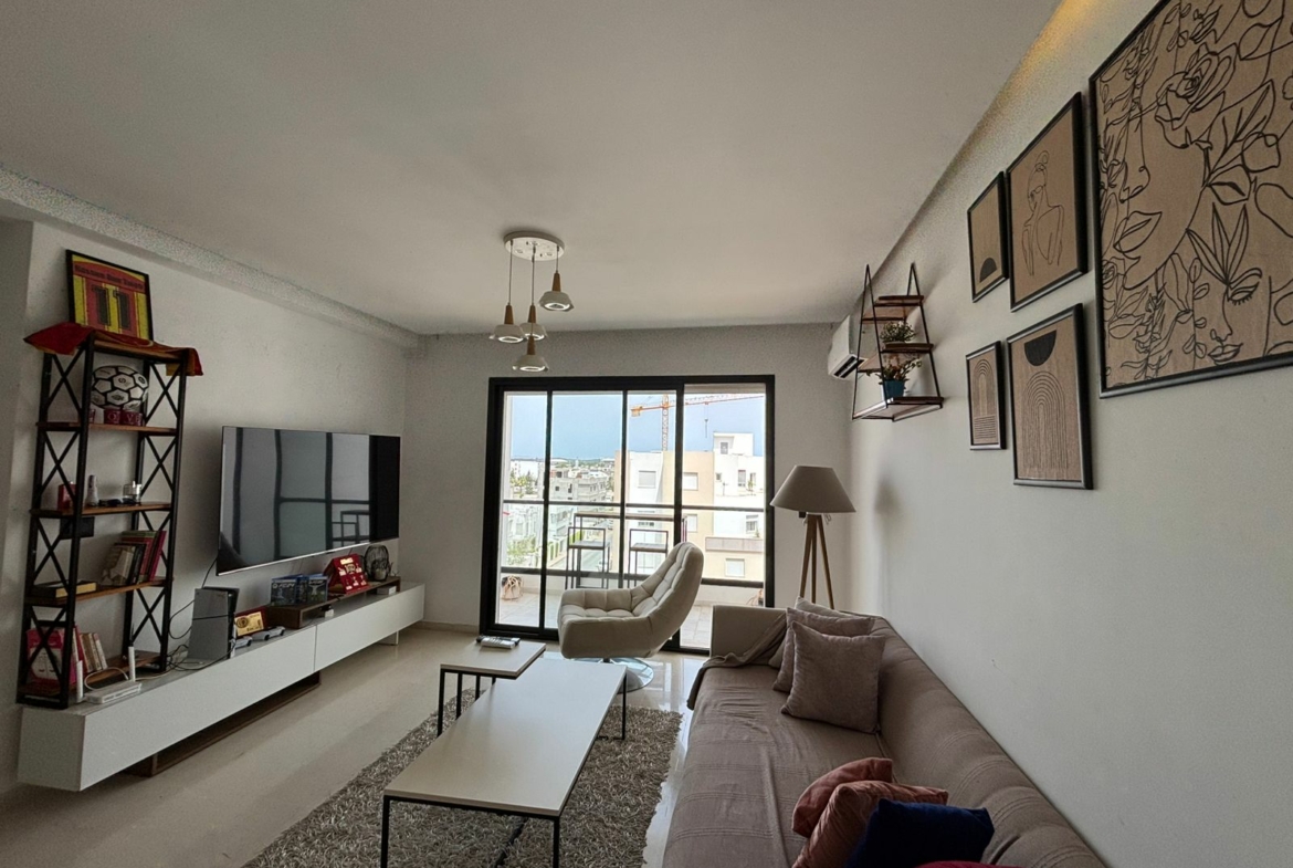Cet appartement S+2 de 110 m² est situé dans une résidence R+4 à Boumhal, équipée d’un ascenseur. L’appartement s’ouvre sur une pièce de vie spacieuse, idéale pour aménager un salon et une salle à manger s’ouvrent sur un balcon. La cuisine est équipée par des éléments de rangement, plaque, hotte, four et dispose d’un séchoir
