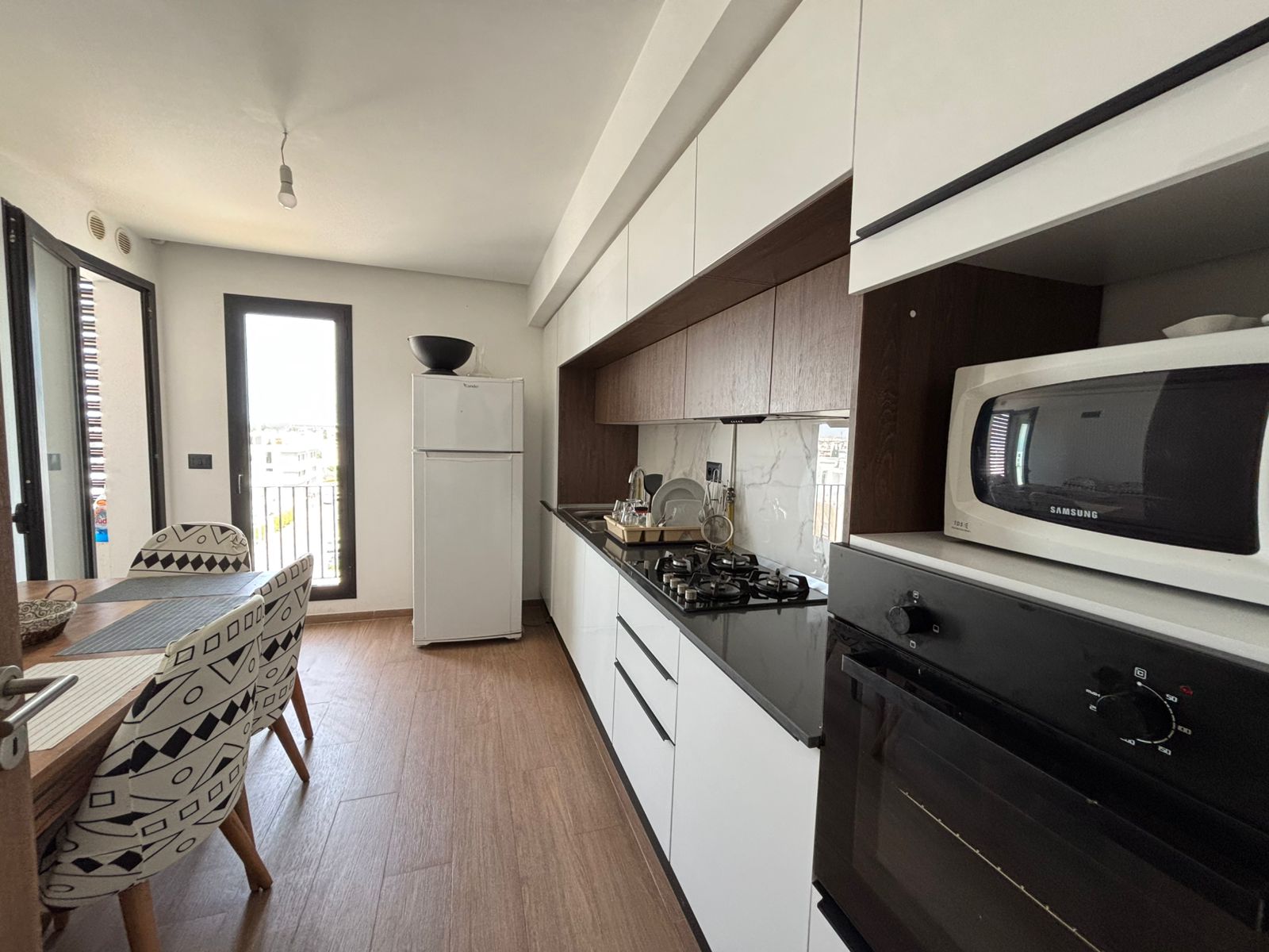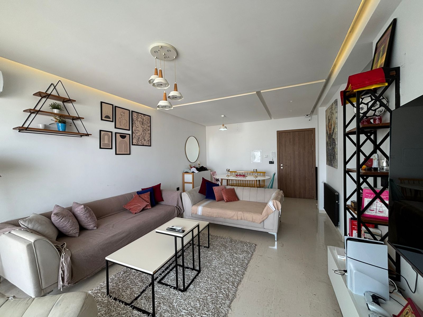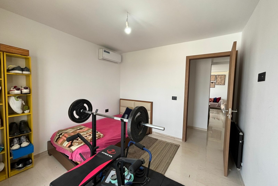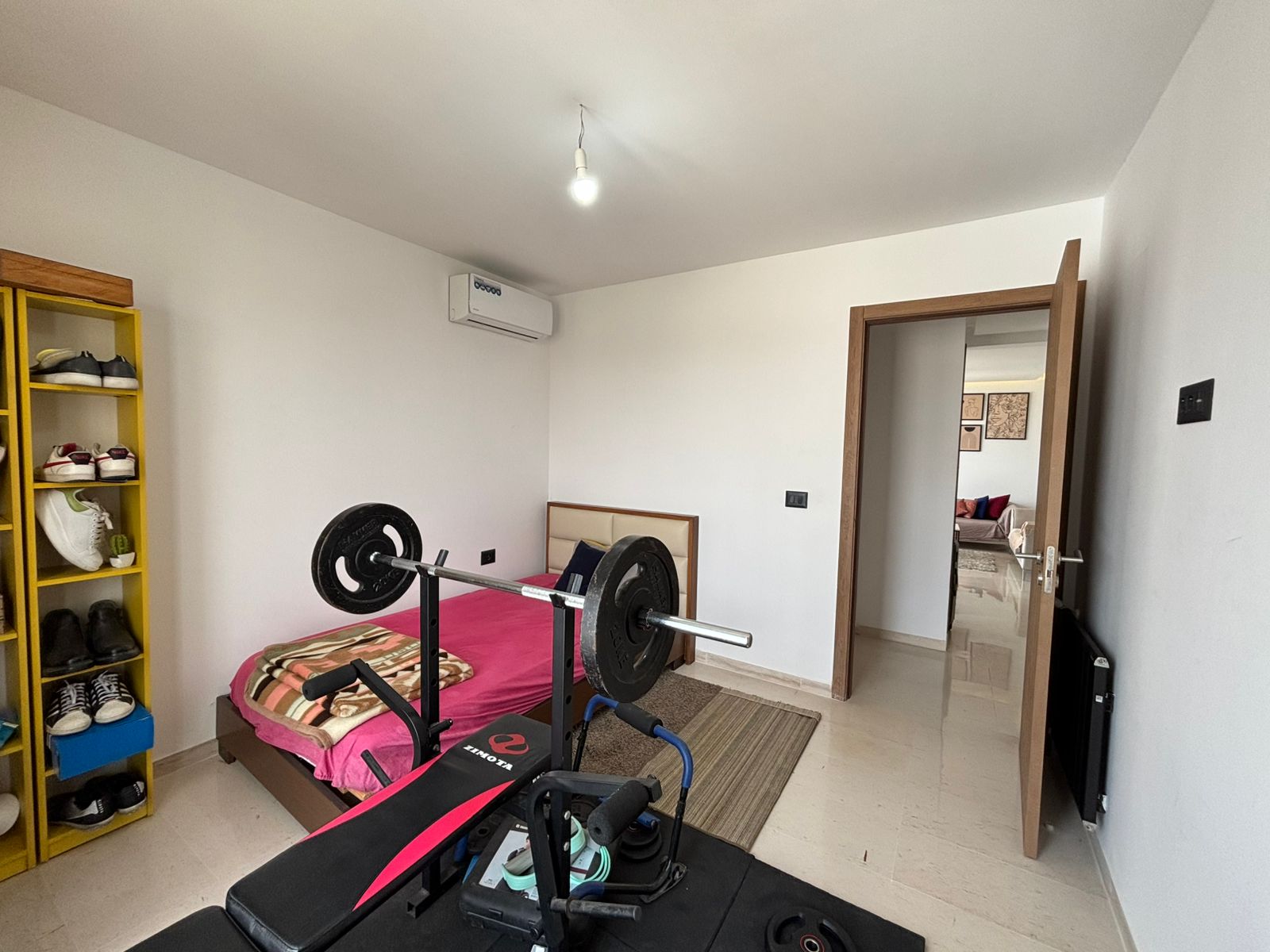 Cet appartement S+2 de 110 m² est situé dans une résidence R+4 à Boumhal, équipée d’un ascenseur. L’appartement s’ouvre sur une pièce de vie spacieuse, idéale pour aménager un salon et une salle à manger s’ouvrent sur un balcon. La cuisine est équipée par des éléments de rangement, plaque, hotte, four et dispose d’un séchoir