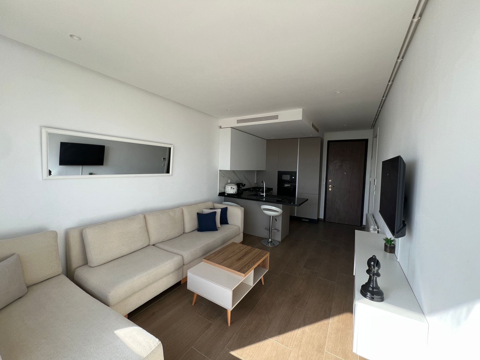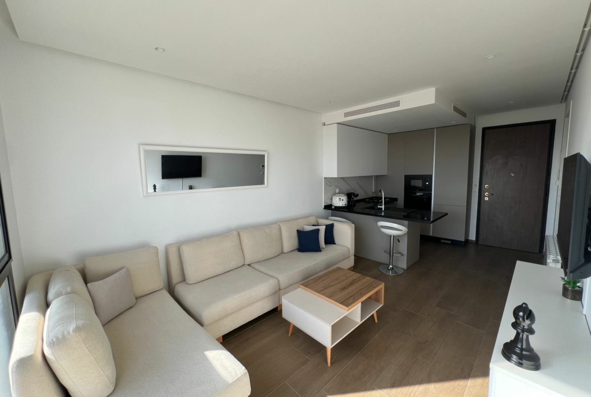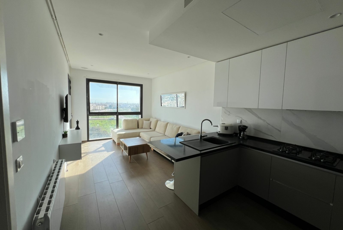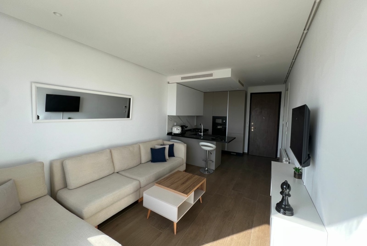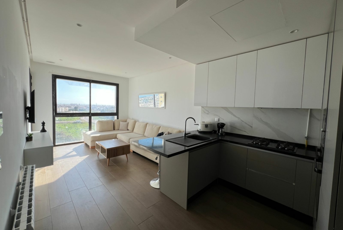 Appartement en S+2 meublé situé au 7ème étage d’une résidence sécurisée, équipée d’une piscine commune, d’une salle de jeux pour enfants et de deux ascenseurs. Il se compose d’un salon lumineux avec accès à un balcon, d’une cuisine ouverte, et d’une partie nuit totalement séparée comprenant un dressing encastré dans le hall, deux chambres à coucher avec dressing, dont une avec balcon, ainsi qu’une salle de douche commune. L’appartement est doté du chauffage et de la climatisation et dispose d’une place de parking au sous-sol. Idéal pour une location confortable dans un cadre résidentiel de qualité.