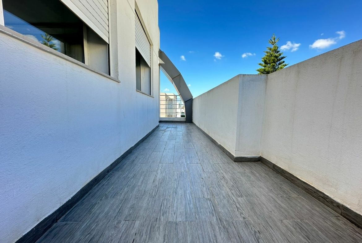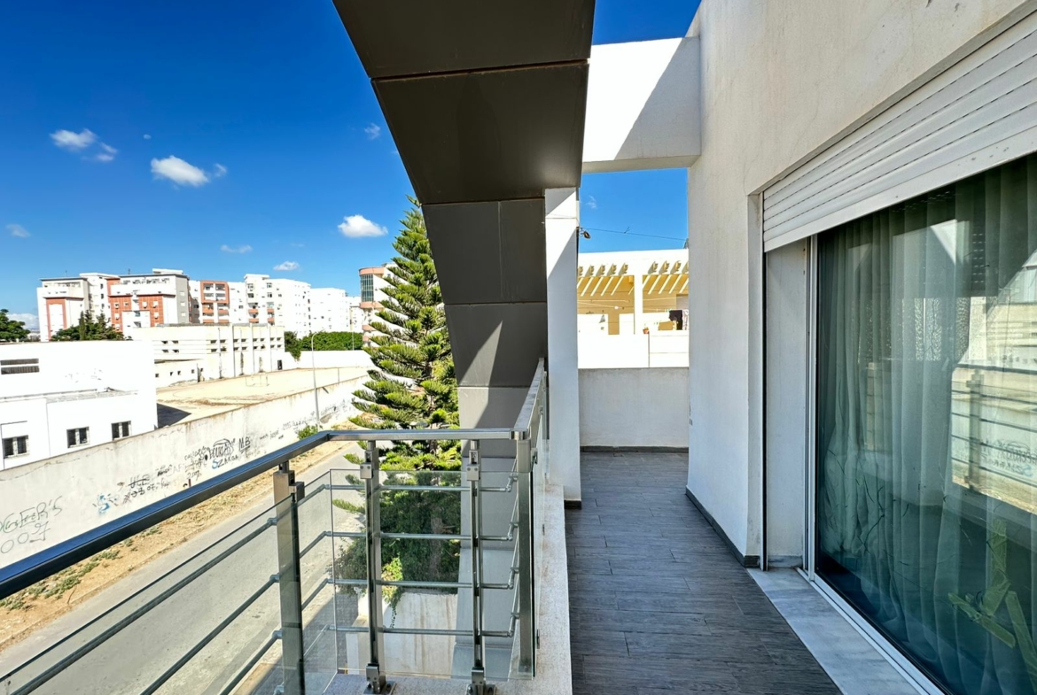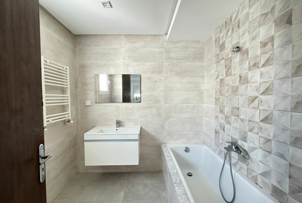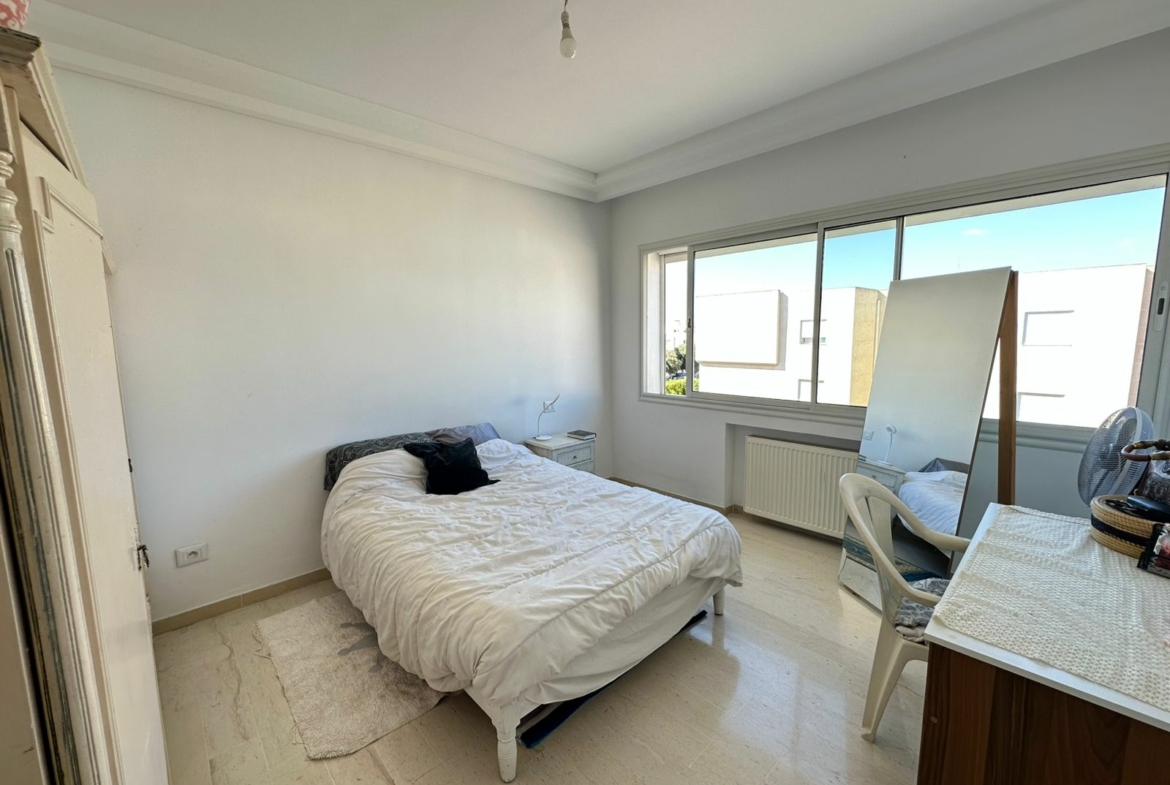 Cet appartement se situe au deuxième étage d’une résidence sécurisée, érigée sur seulement deux niveaux et bénéficie d’un emplacement privilégié aux Jardins de l’Aouina, à proximité de toutes les commodités.