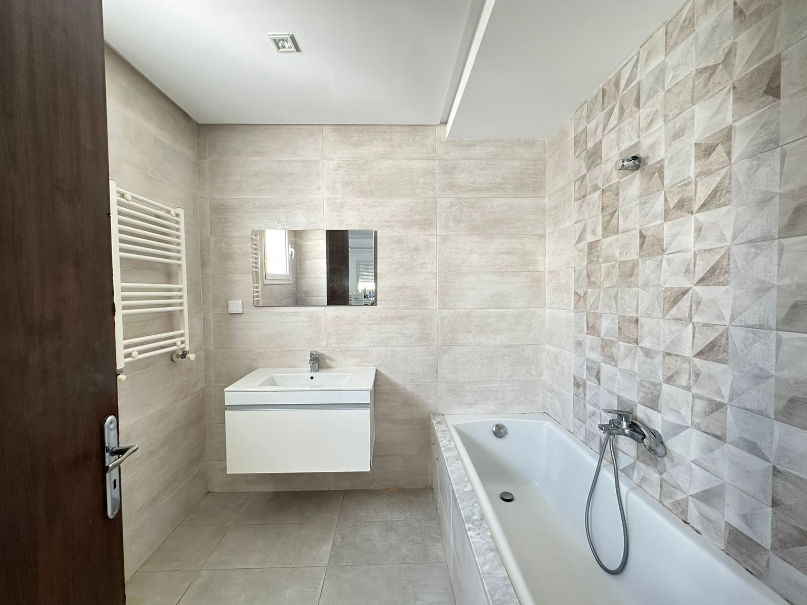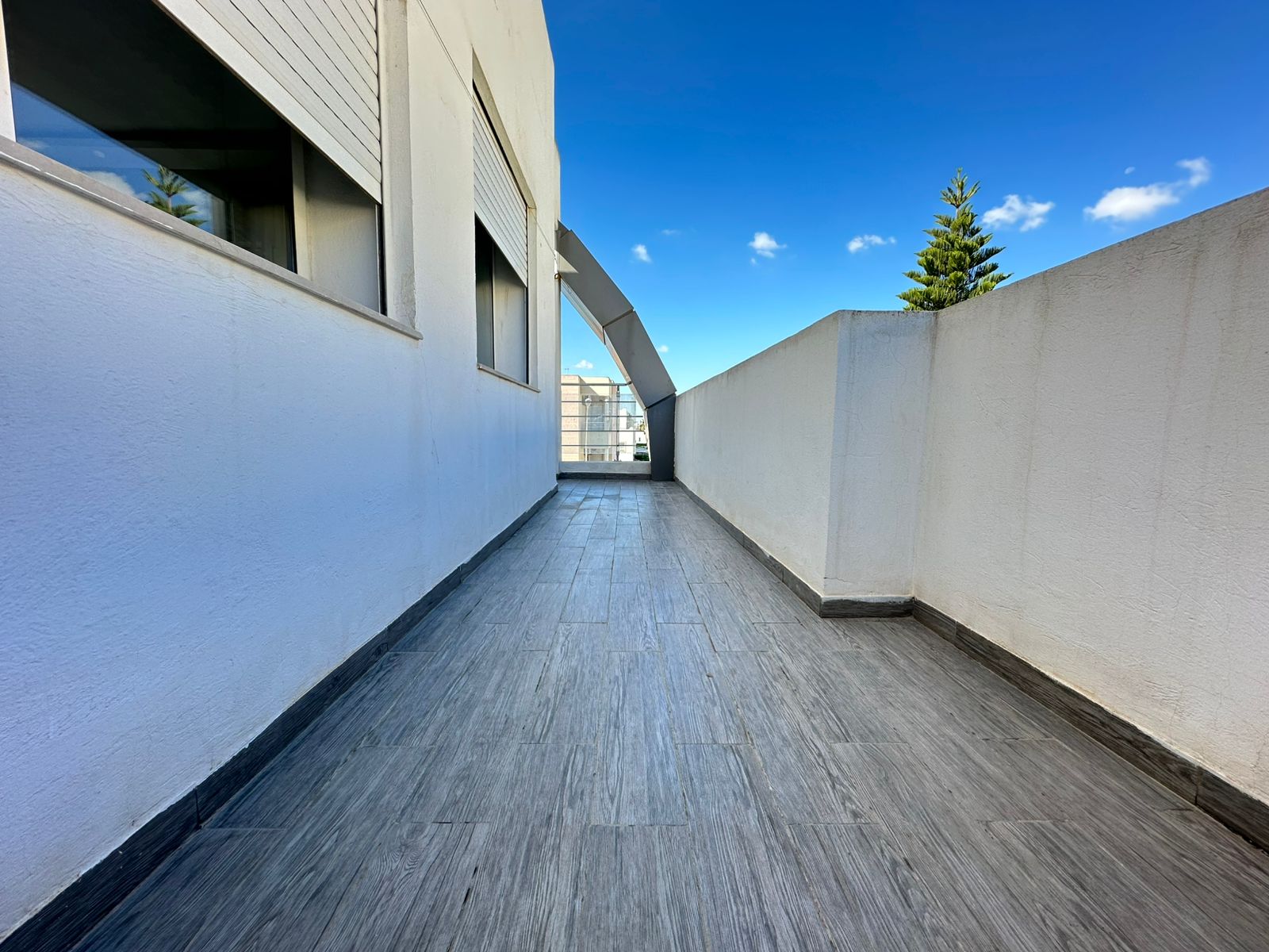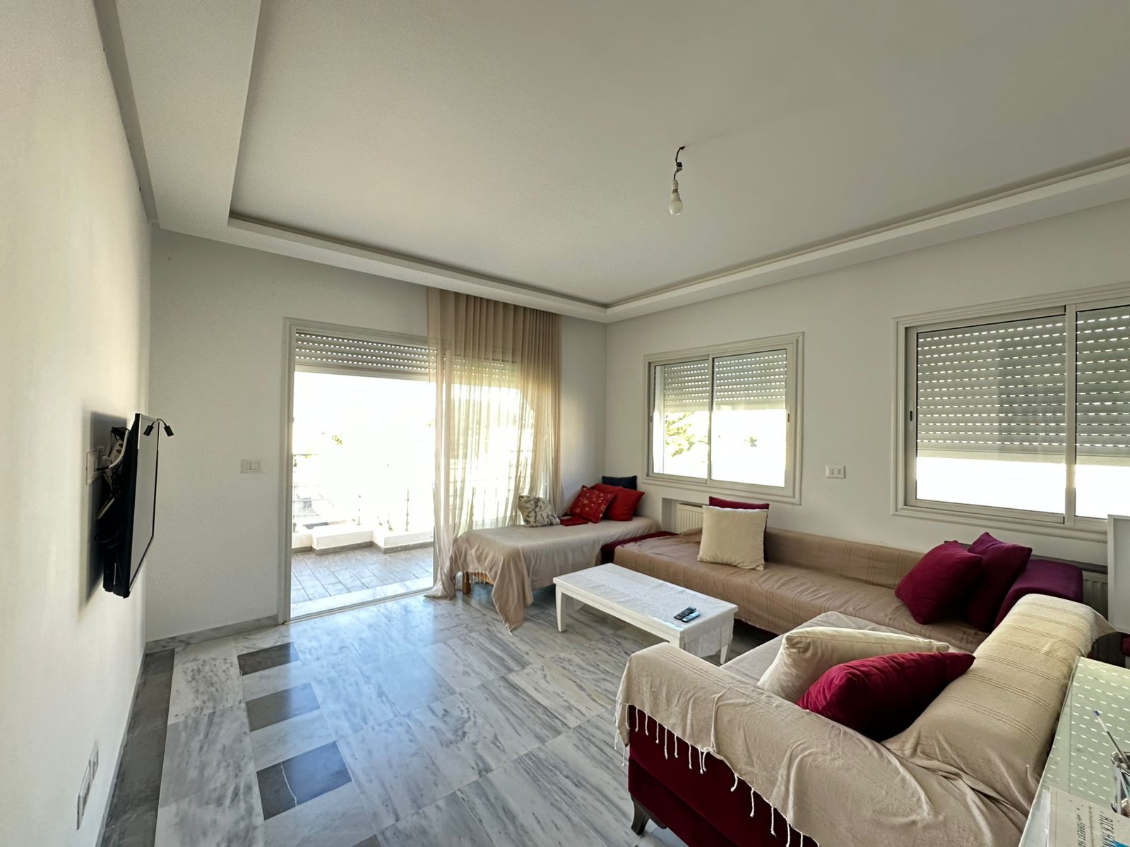 Cet appartement se situe au deuxième étage d’une résidence sécurisée, érigée sur seulement deux niveaux et bénéficie d’un emplacement privilégié aux Jardins de l’Aouina, à proximité de toutes les commodités.