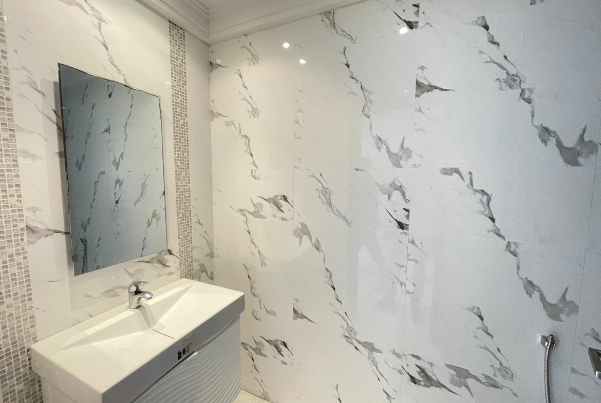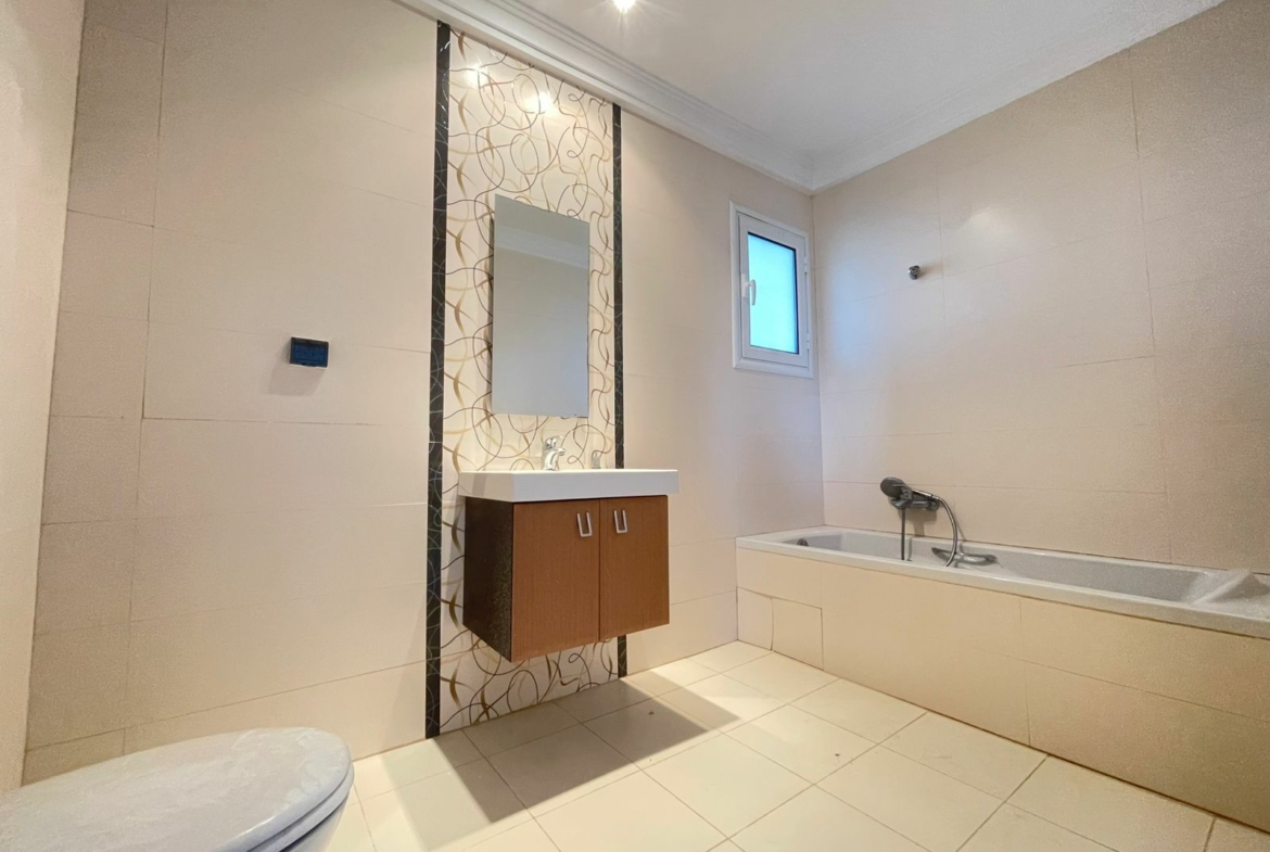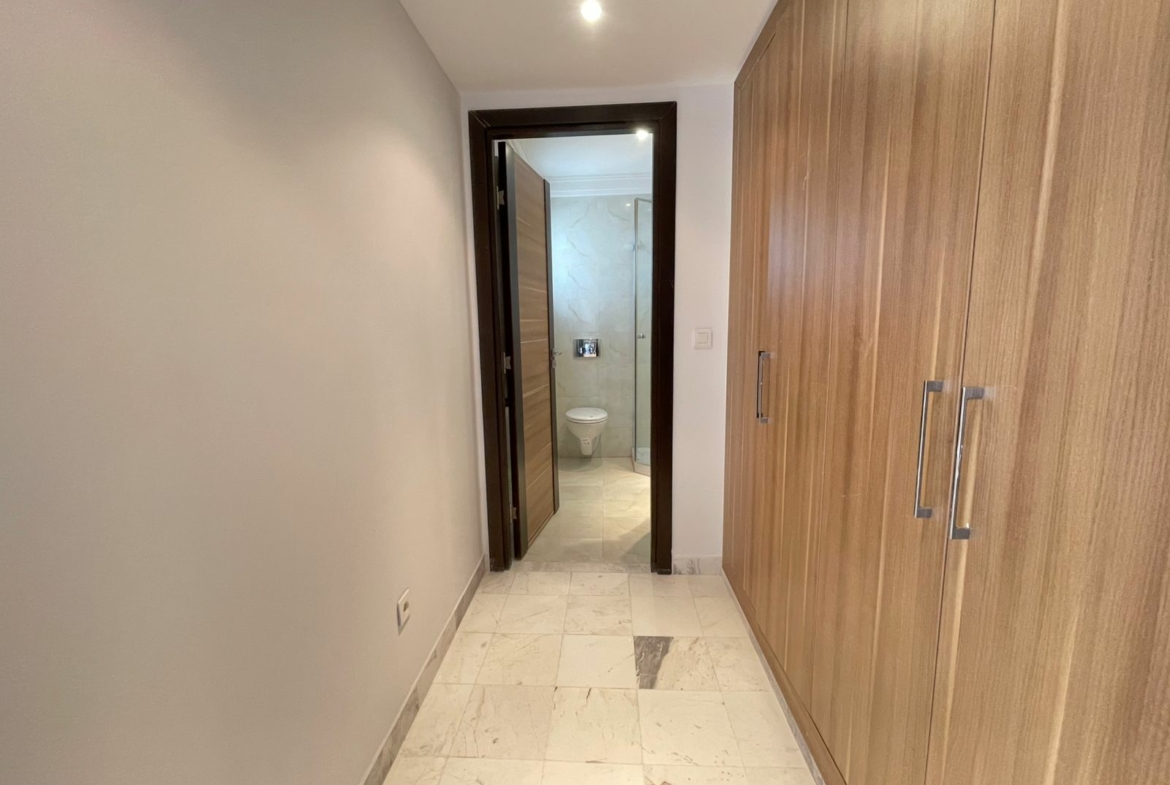 Dès l’entrée, un salon spacieux pouvant accueillir un coin salon et une salle à manger. Il s’ouvre sur deux balcons, apportant luminosité naturelle. Une salle d’eau invités complète la partie jour.