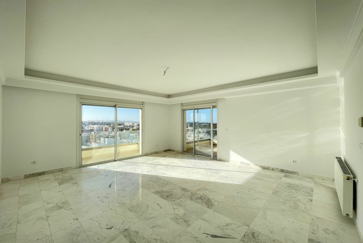 Cet appartement, idéalement situé à Ain Zaghouan Nord, bénéficie de la proximité immédiate de toutes les commodités. Il se trouve au sixième et dernier étage d’une résidence sécurisée équipée de deux ascenseurs.