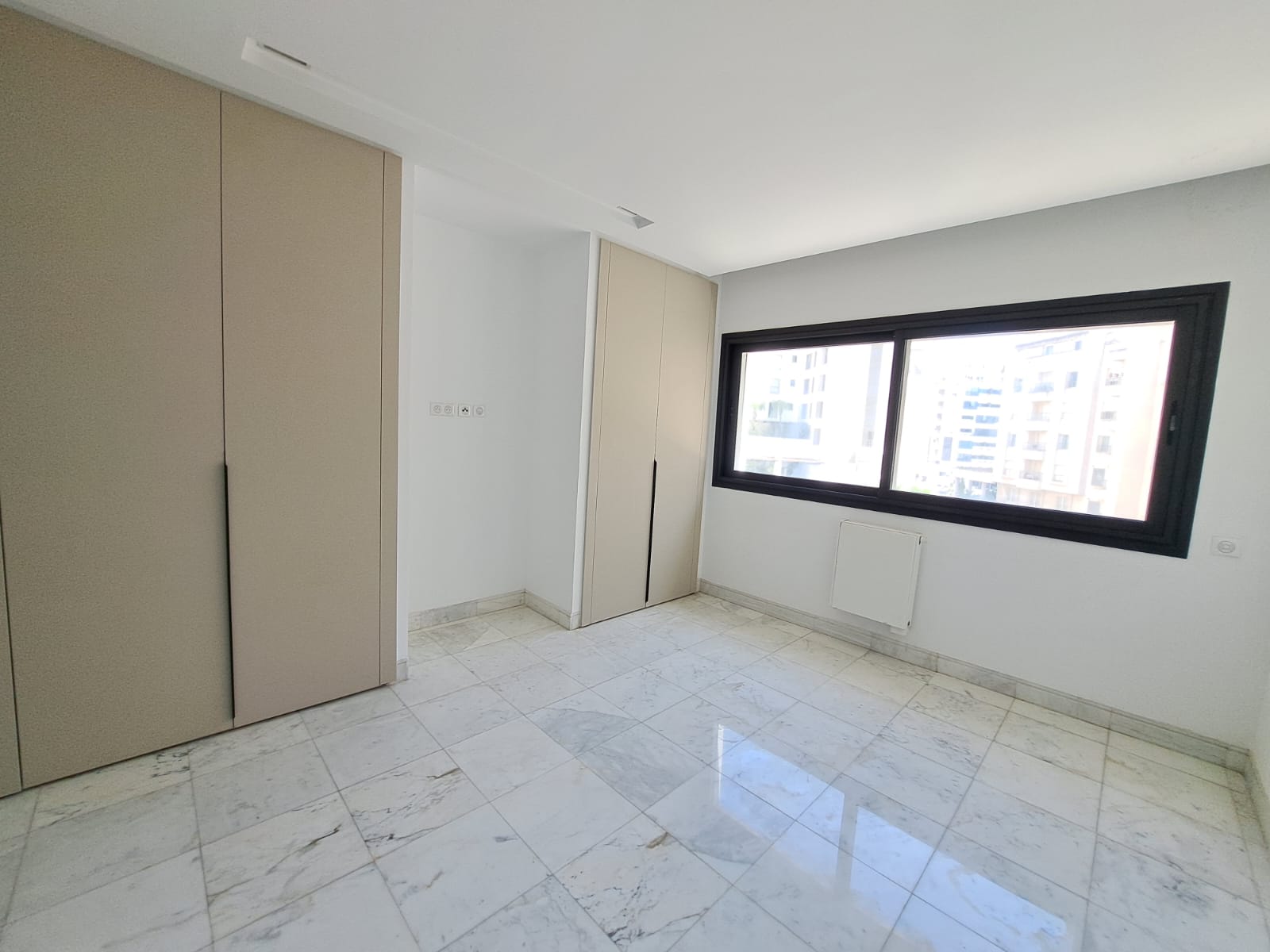 La partie jour s’ouvre sur un vaste espace de vie permettant l’aménagement d’un salon et d’une salle à manger, avec accès à un balcon. L’appartement profite d’une vue partielle sur le lac, assurant une excellente luminosité naturelle sur l’ensemble du bien.