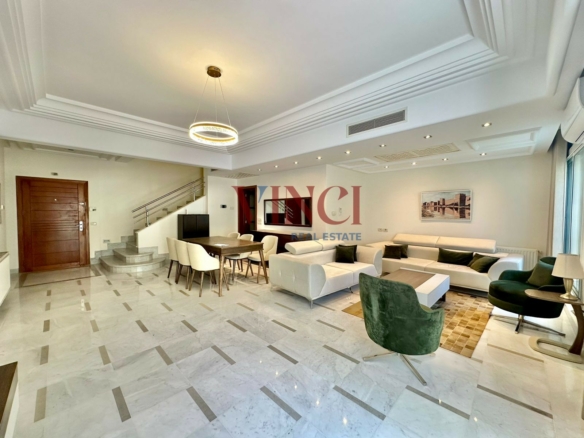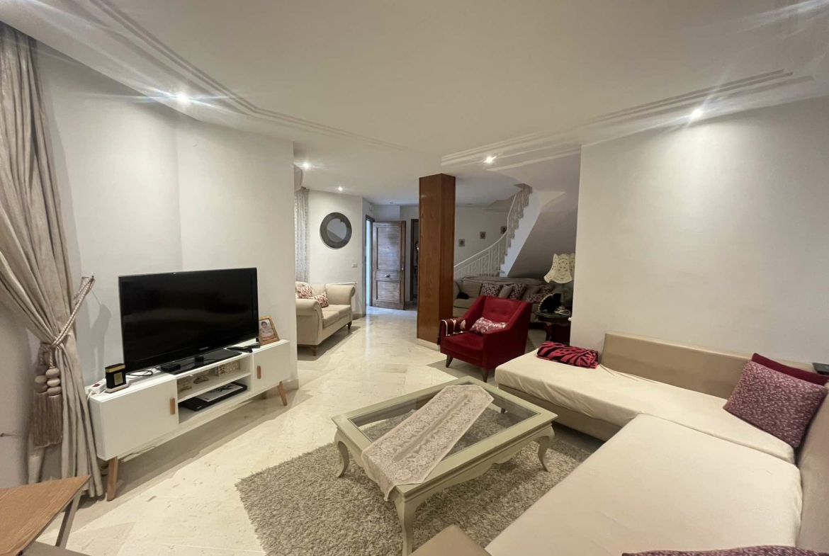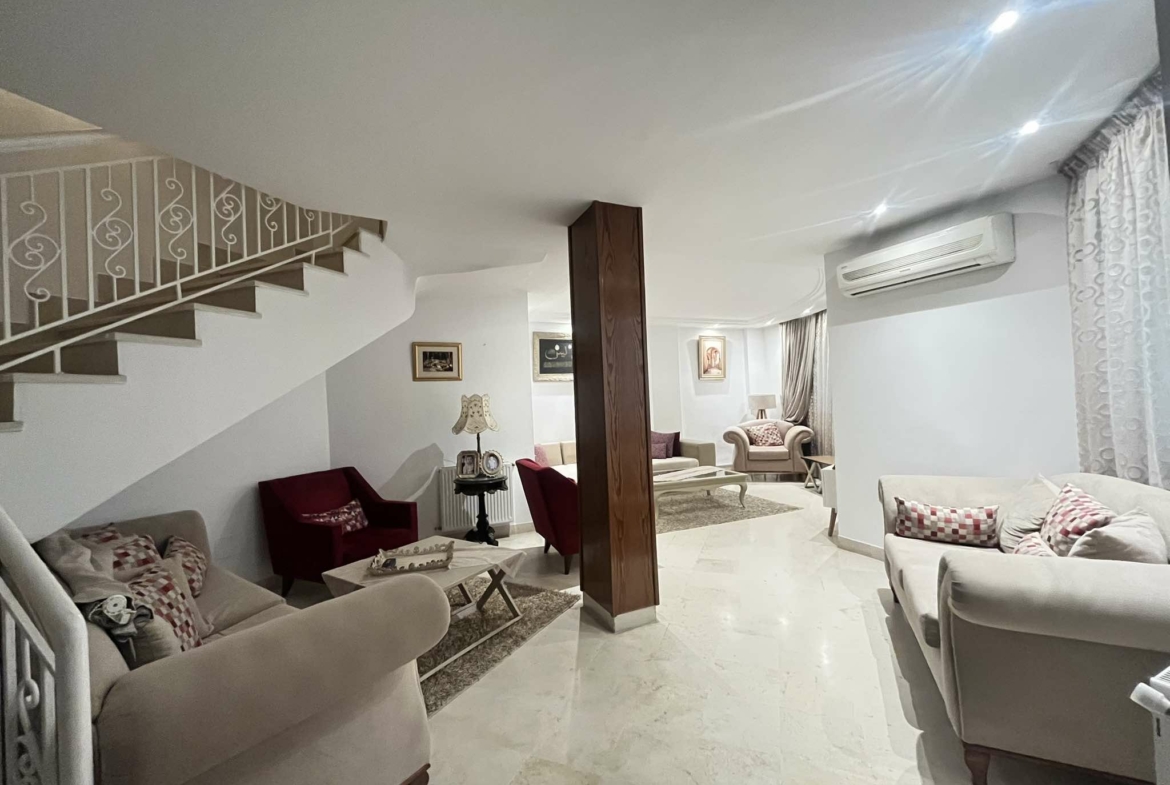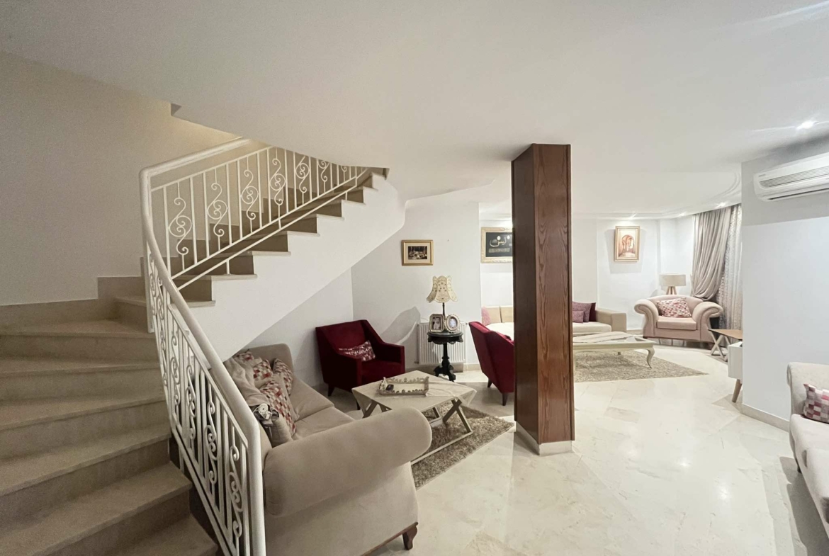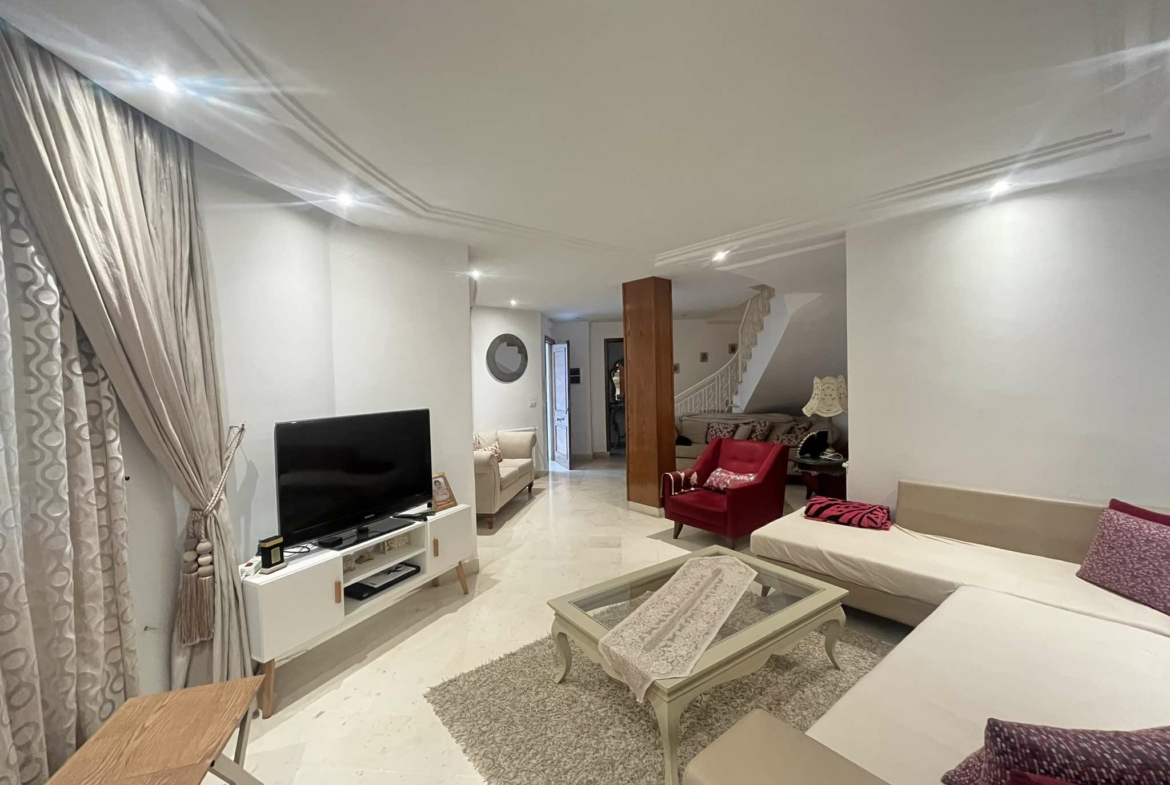 Ce duplex avec jardin privatif est situé au rez-de-chaussée d’une résidence calme et sécurisée aux Jardins de l’Aouina, à proximité immédiate de toutes les commodités.
