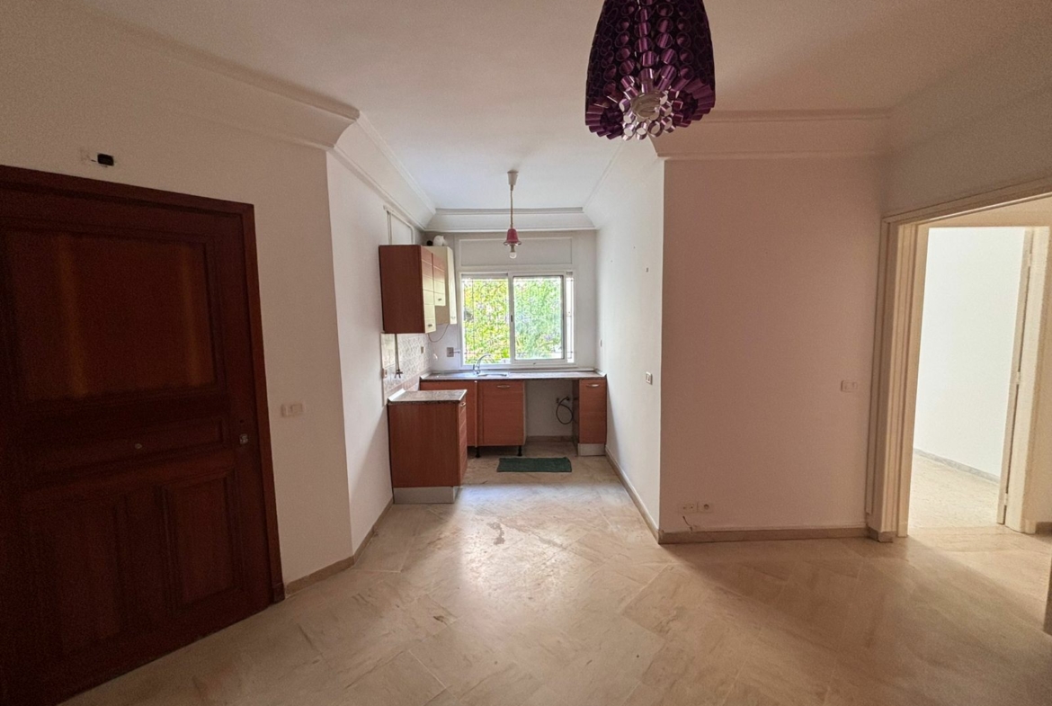Cet appartement en S+1 occupe le rez-de-chaussée d’une résidence sécurisée. Il est situé à Cité Ghazella, à proximité immédiate des commerces et de toutes les commodités. Dès l’entrée, on trouve une pièce de vie spacieuse, prolongée par une kitchenette ouverte avec des rangements pour plus de fonctionnalité. La partie nuit abrite une chambre à coucher et une salle de bain. L’appartement est équipé du chauffage central.