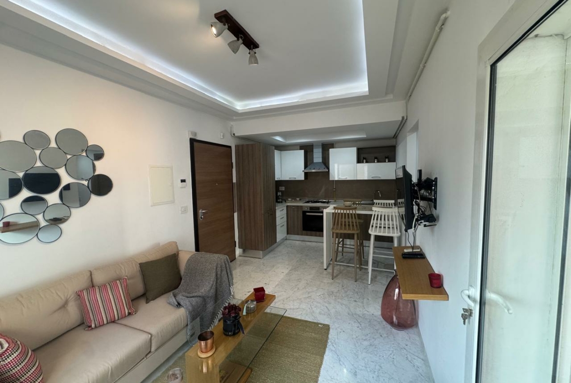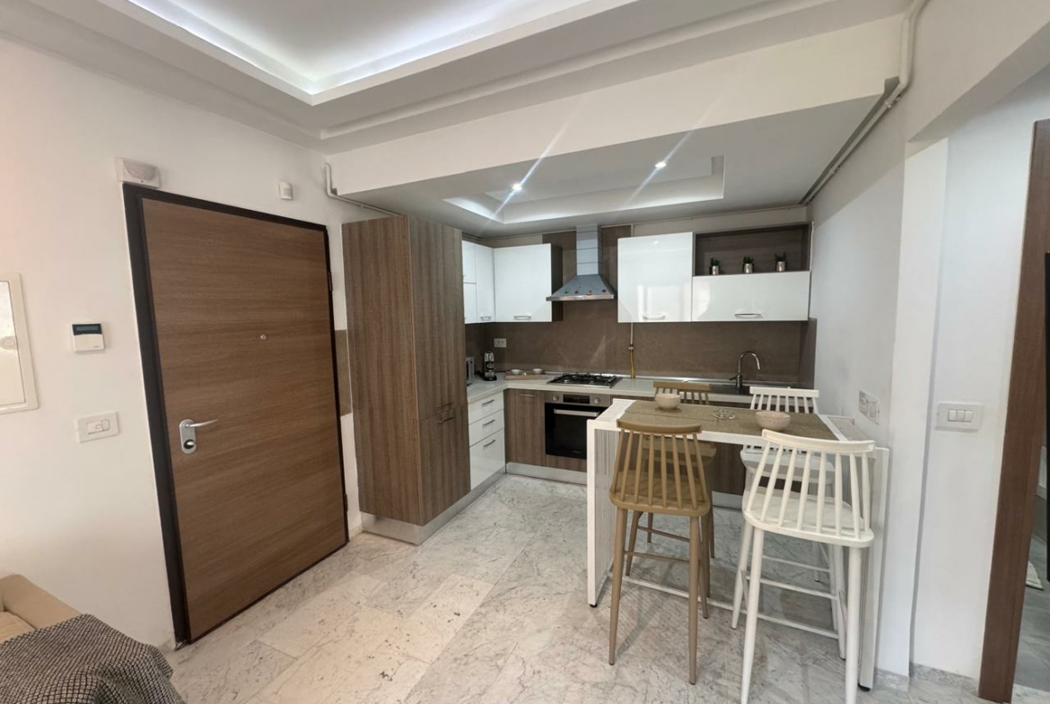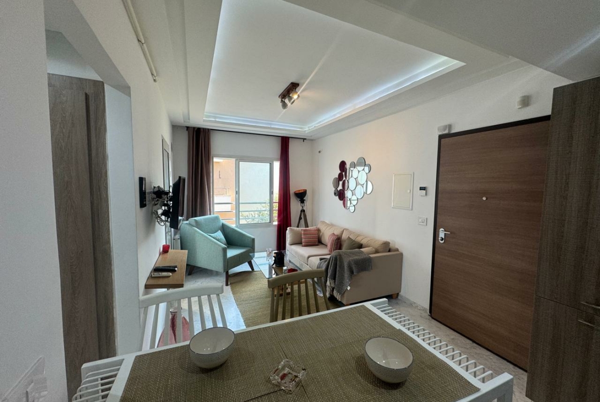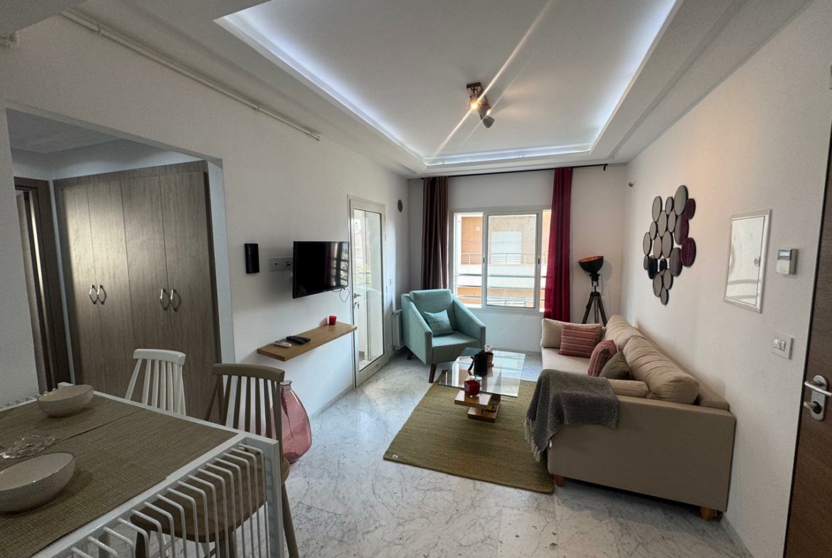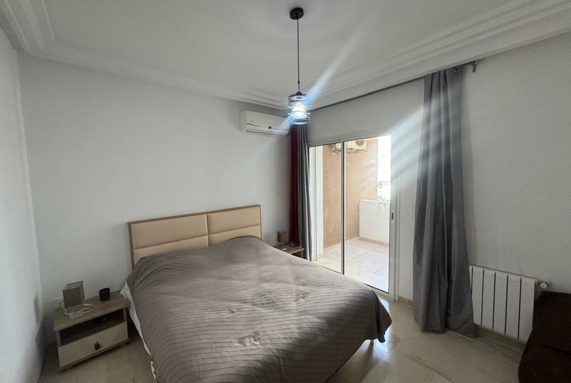 Situé à Cité Ghazella, cet appartement en S+1 meublé occupe le premier étage d’une résidence sécurisée dotée d’un ascenseur, à proximité de toutes les commodités. La pièce de vie est lumineuse et ouvre sur un balcon. Une kitchenette est aménagée avec des rangements et équipée d’une plaque de cuisson, d’une hotte, d’un four et d’une micro-onde. La partie nuit abrite une chambre à coucher ouverte sur un balcon, apportant plus de luminosité, avec un dressing pour plus de rangements. Une salle de douche vient compléter l’espace.