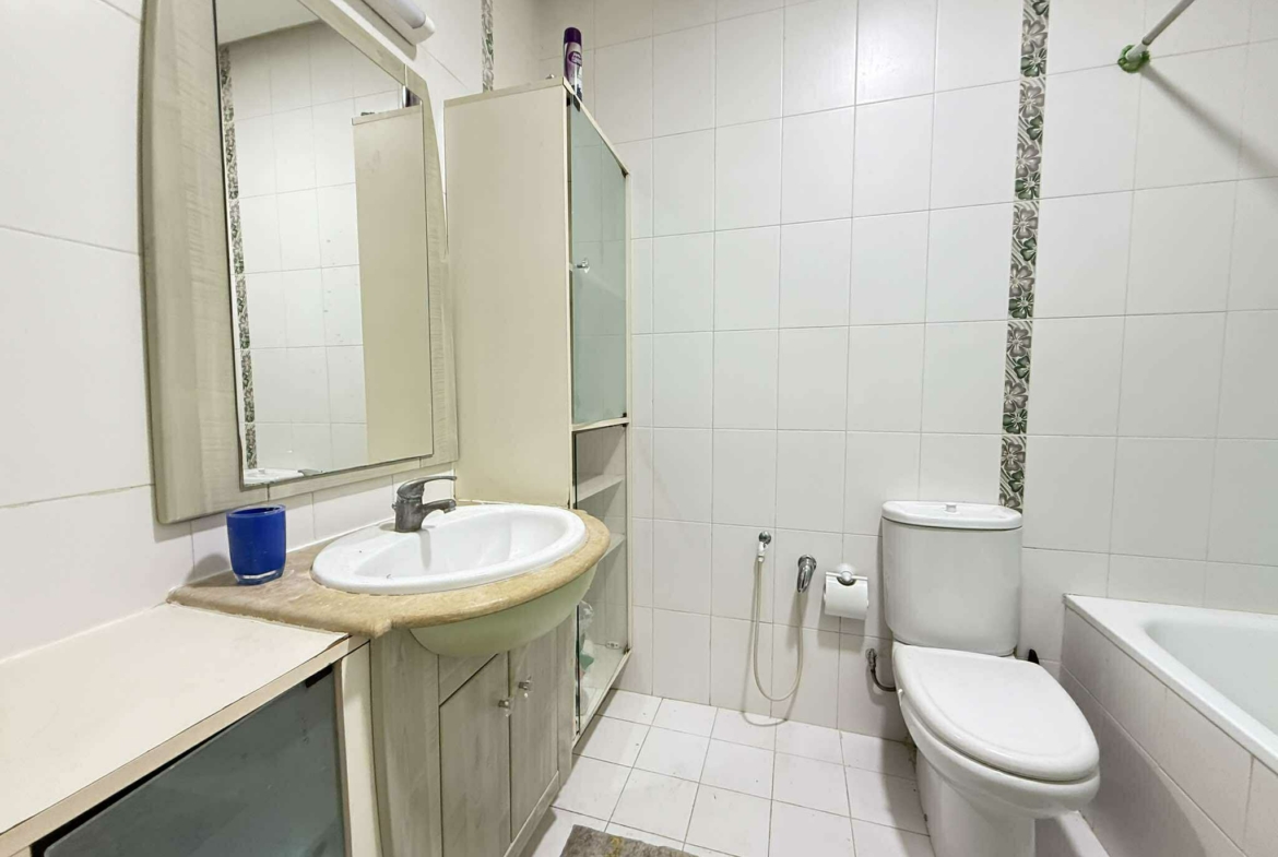La partie nuit se compose de deux chambres et d’une salle de bain commune. L’appartement bénéficie d’un chauffage central et d’une climatisation en système split pour un confort optimal toute l’année.
