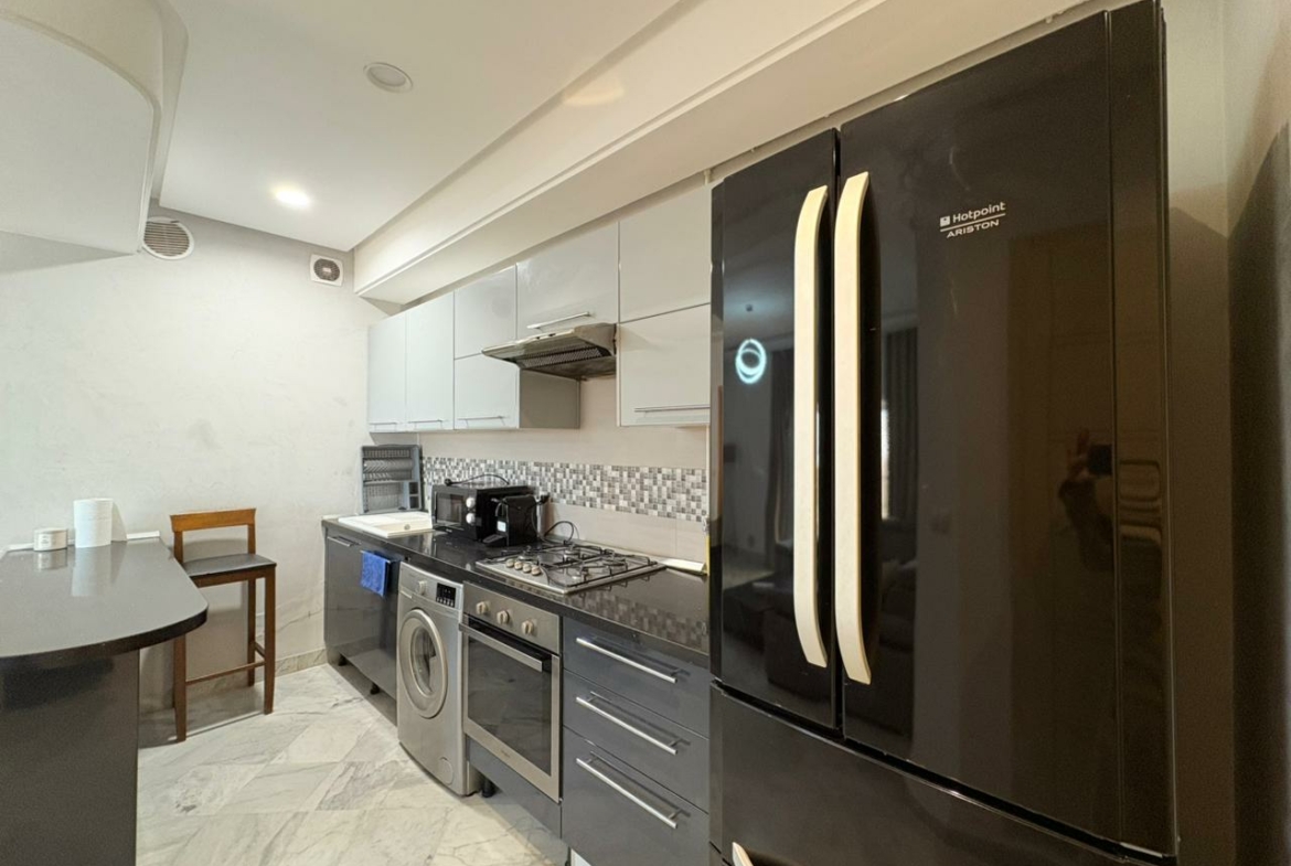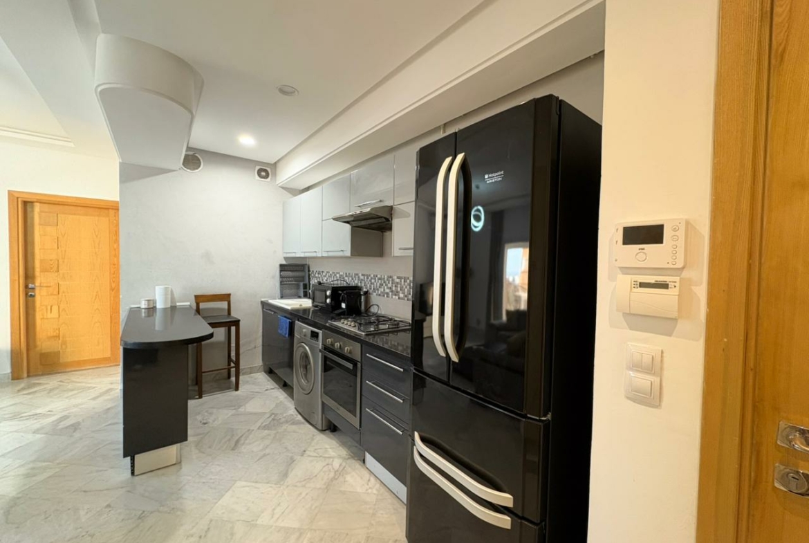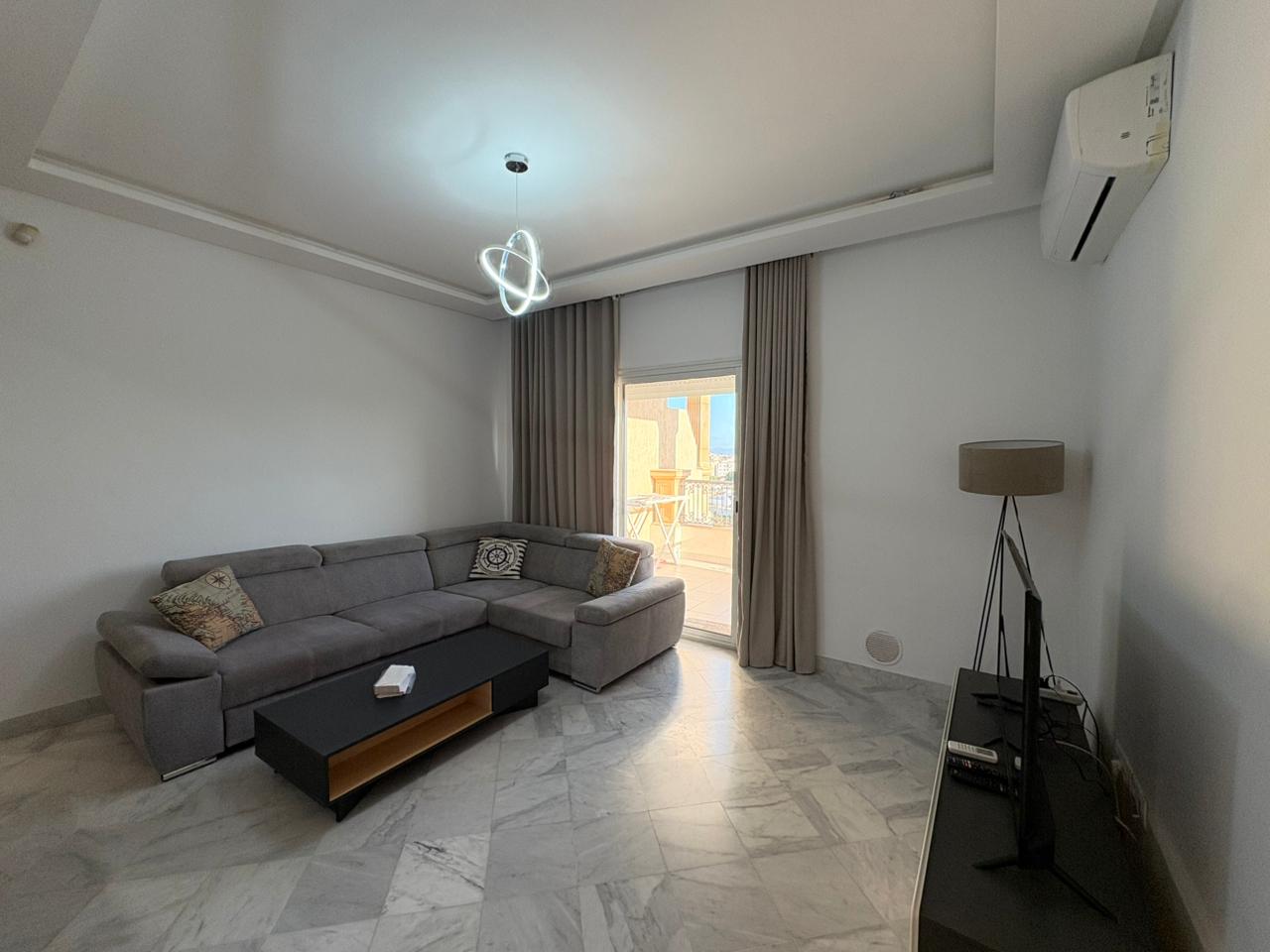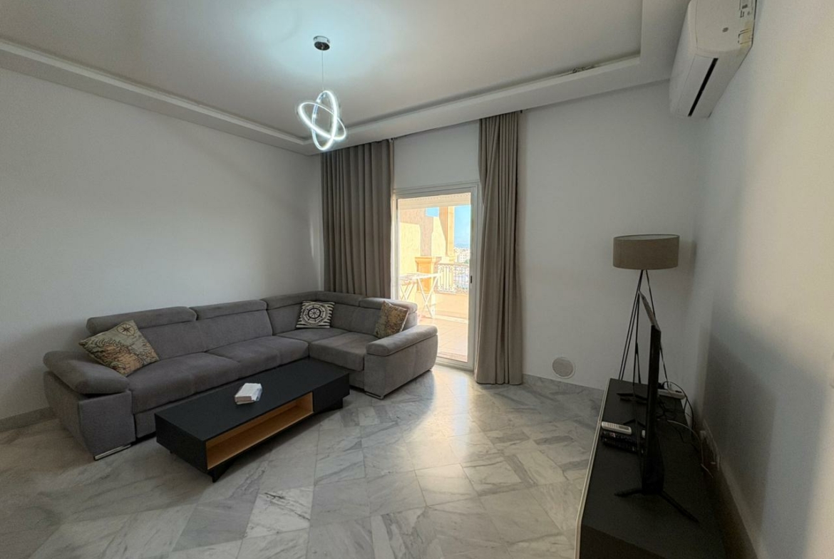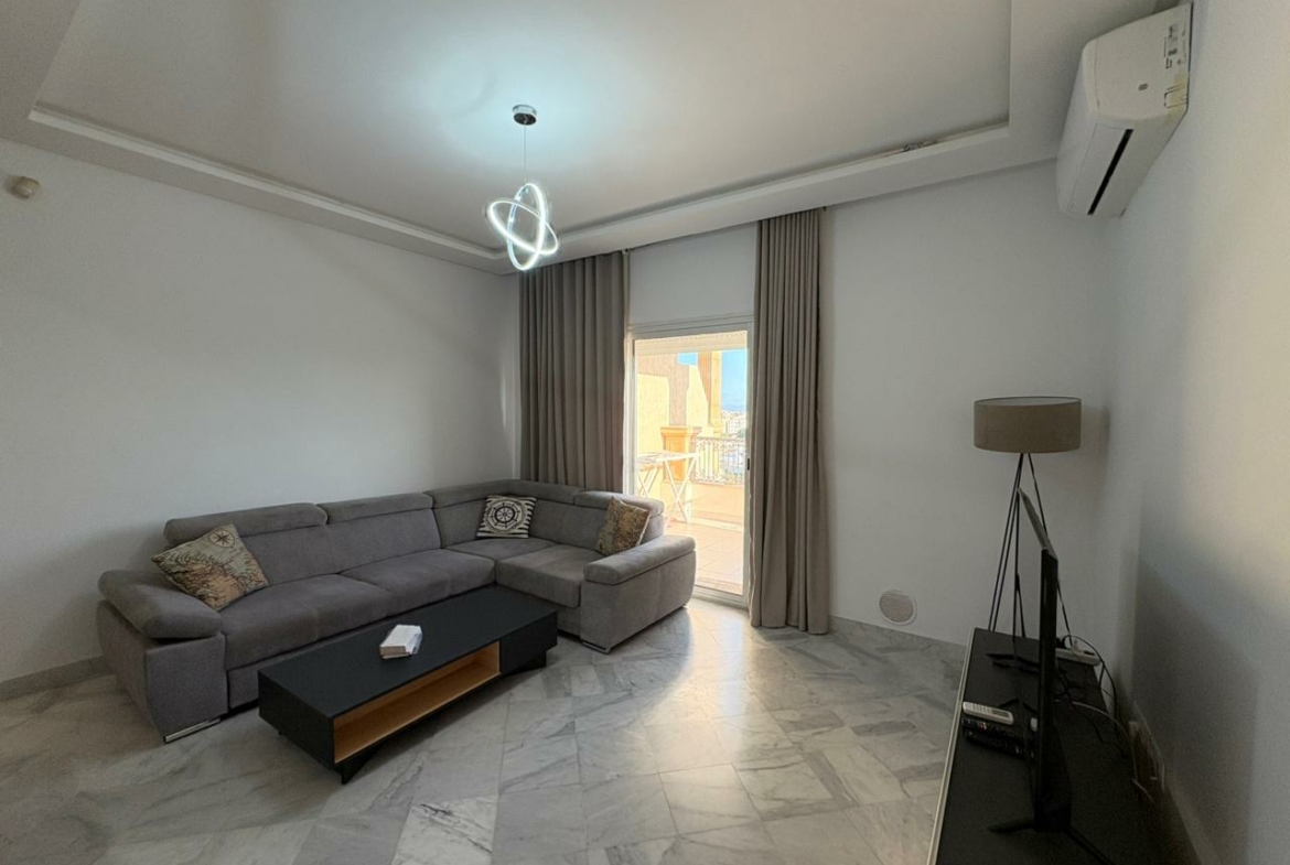 Appartement en S+1 meublé d’une superficie de 74 m², situé au 4ème étage d’une résidence sécurisée et bien gardée, dotée d’un ascenseur.