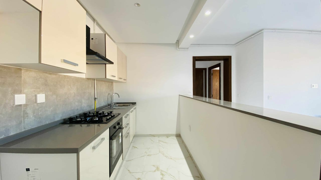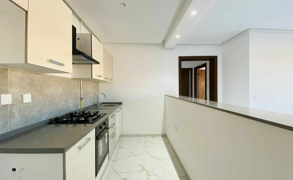 Cet appartement jamais habité est situé au dernier étage d’une résidence gardée, récemment construite à La Nouvelle Soukra.