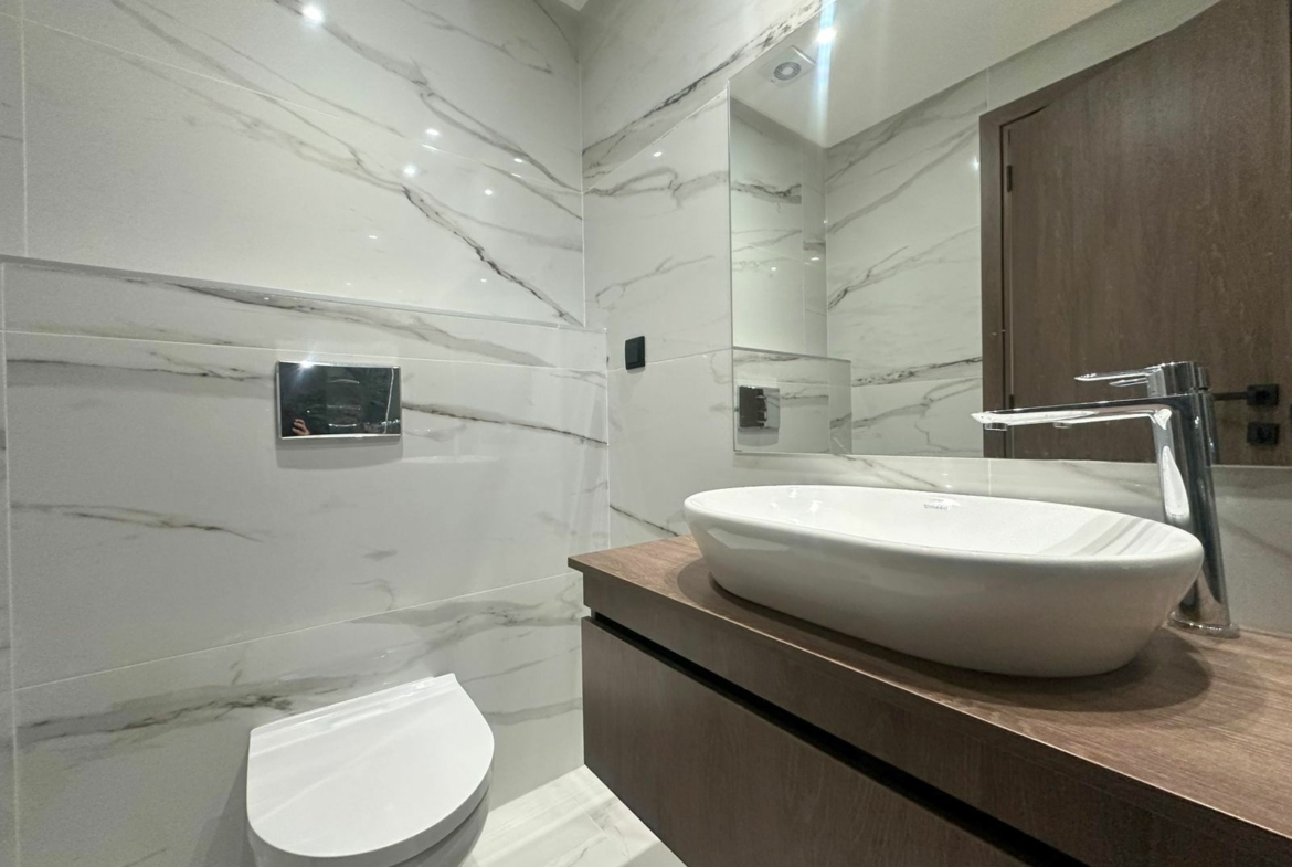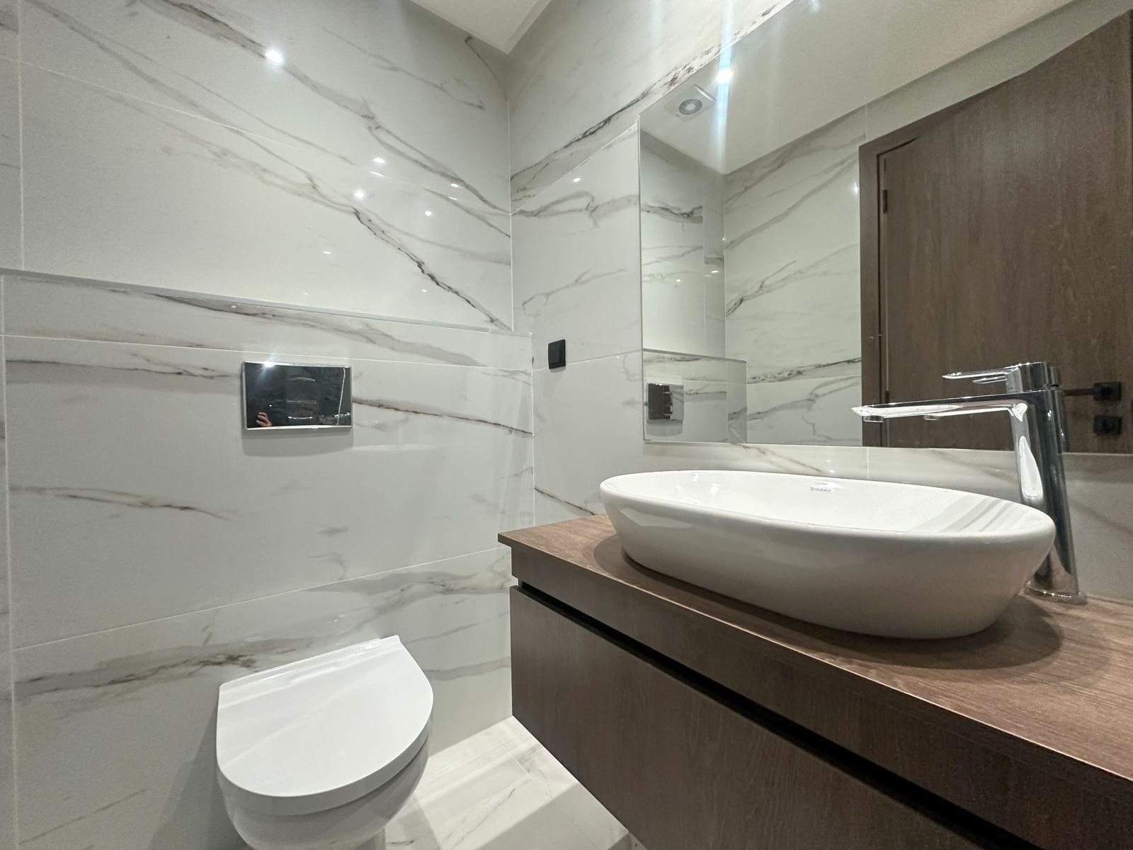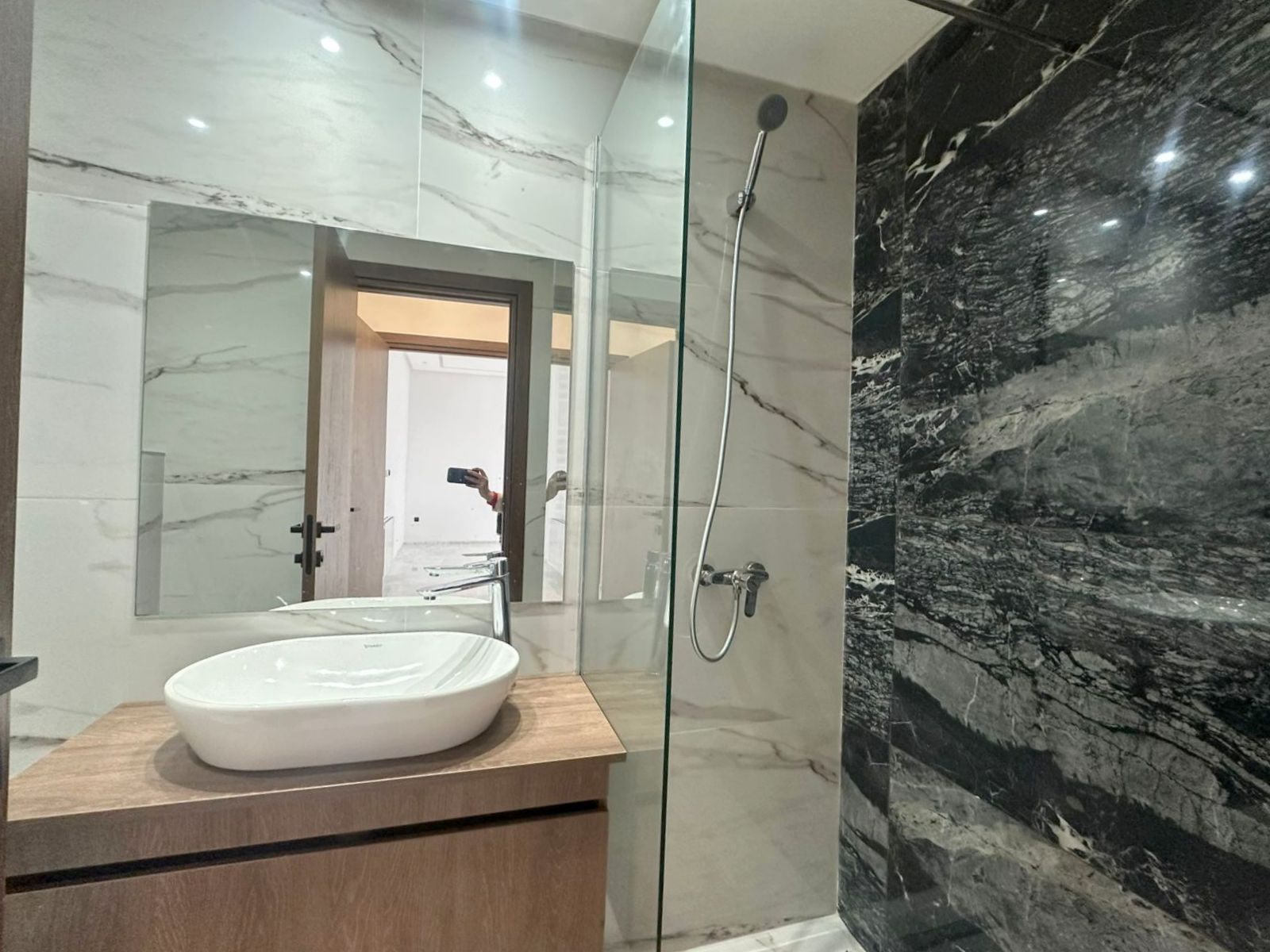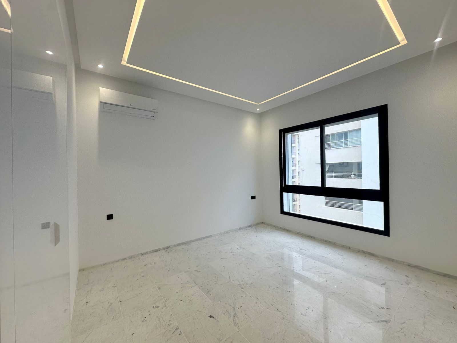 Cet appartement est situé au cinquième étage d’une résidence calme et sécurisée de sept niveaux. Il se compose d’un salon lumineux ouvrant sur une terrasse et dispose d’un chauffage central ainsi que de la climatisation. La cuisine ouverte est équipée d’une plaque de cuisson, d’un four électrique et d’une hotte aspirante. La partie nuit comprend une chambre à coucher avec dressing ainsi qu’une salle de douche.