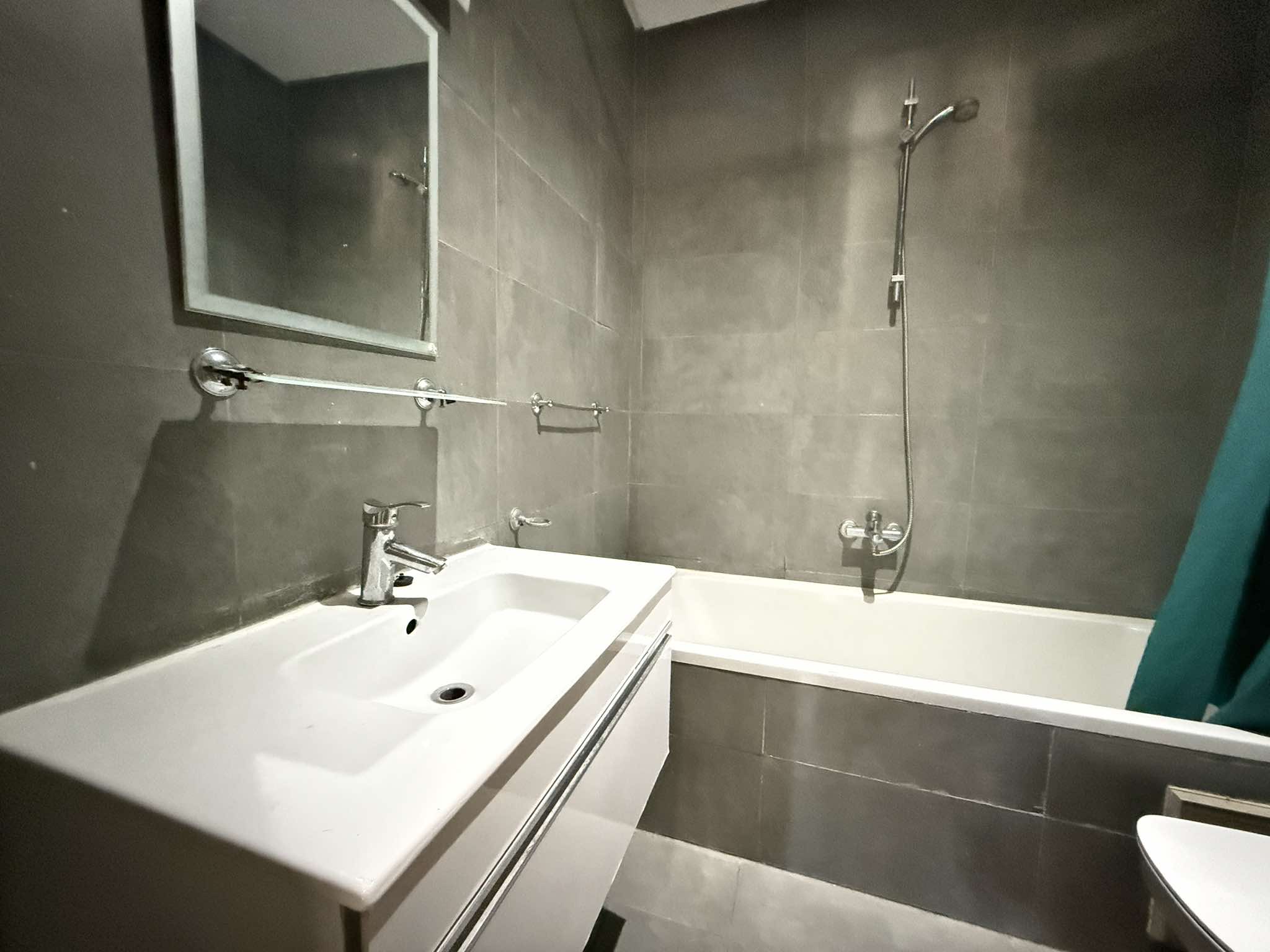 L’espace nuit comprend une chambre à coucher équipée d’un lit double, d’un dressing, d’une coiffeuse et d’un miroir. Une salle de bain avec baignoire complète ce bien fonctionnel et convivial.