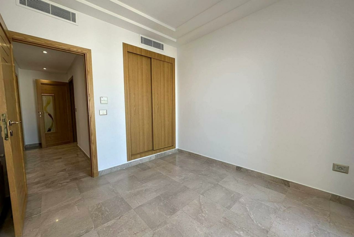Cet appartement est situé au 2ᵉ étage d’une résidence calme et sécurisée, disposant d’une piscine et érigée sur deux étages. Il se compose d’un salon lumineux avec balcon, d’une cuisine aménagée offrant de nombreux espaces de rangement et entièrement équipée plaque de cuisson, four électrique, hotte aspirante et séchoir, avec climatisation et chauffage central installés, ainsi que d’une salle d’eau pour invités et d’un hall avec dressing. L’espace nuit comprend une chambre à coucher avec dressing et une suite parentale avec dressing et salle de douche. Une place de parking est disponible au sous-sol.