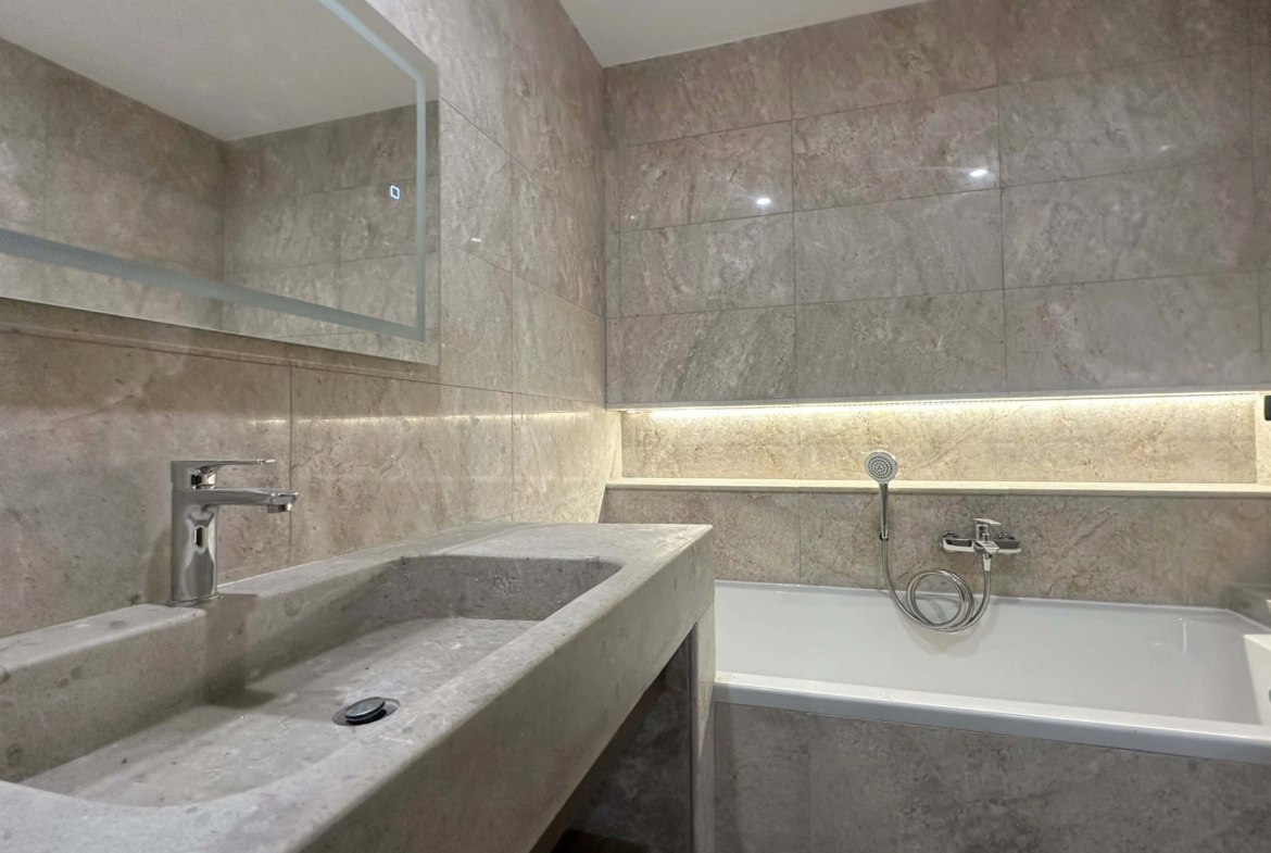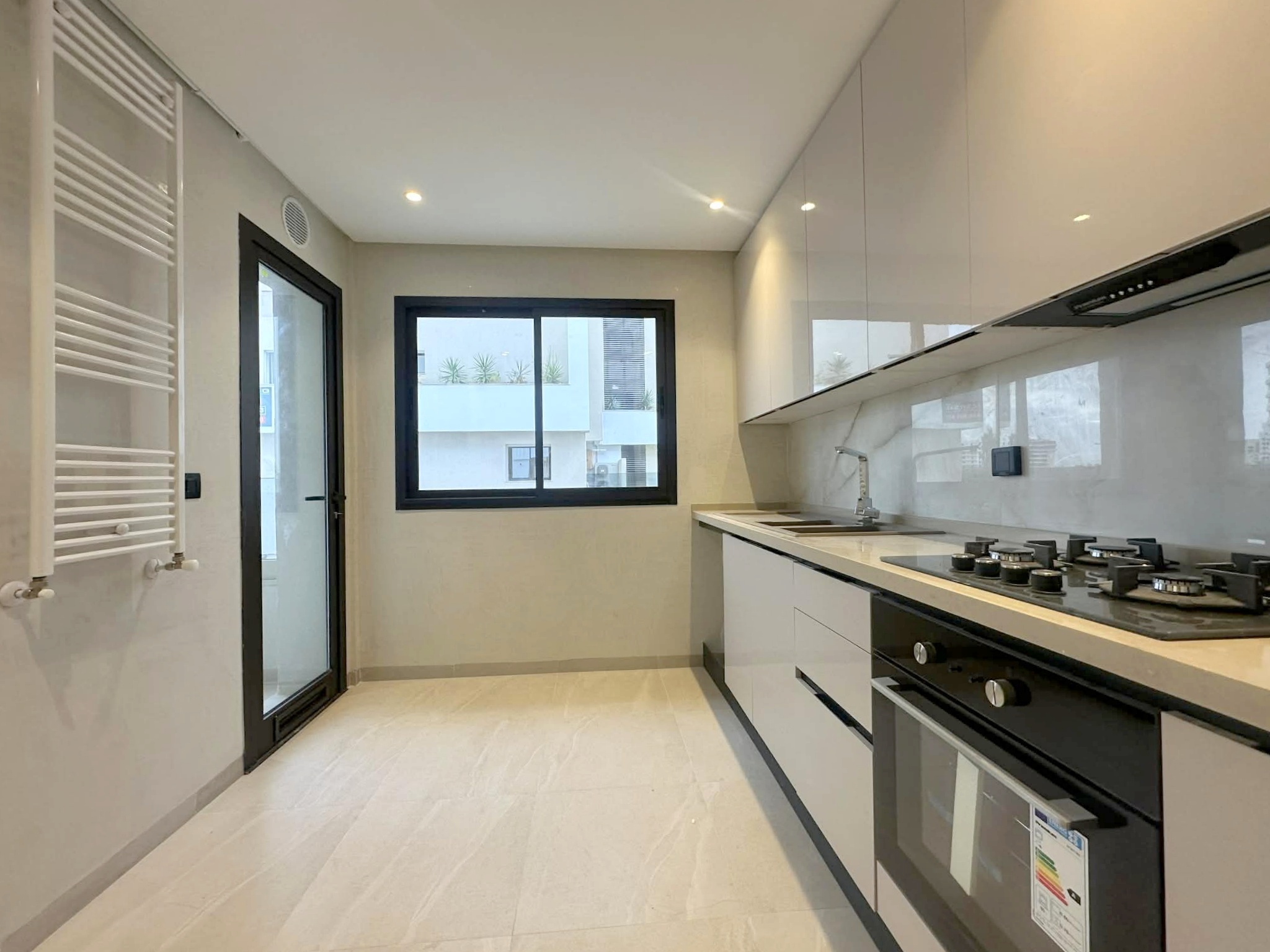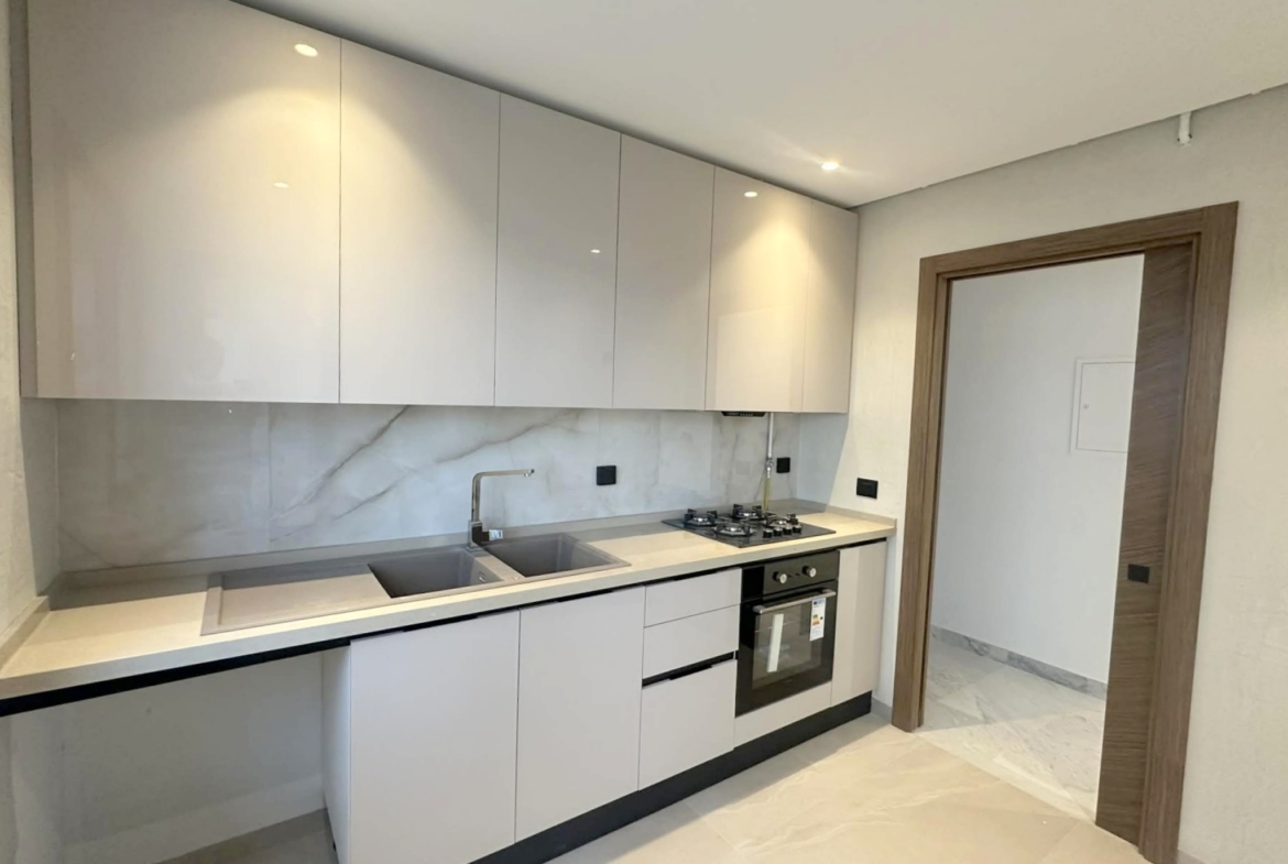 Cet appartement jamais habité est situé au premier étage d’une résidence récemment construite.