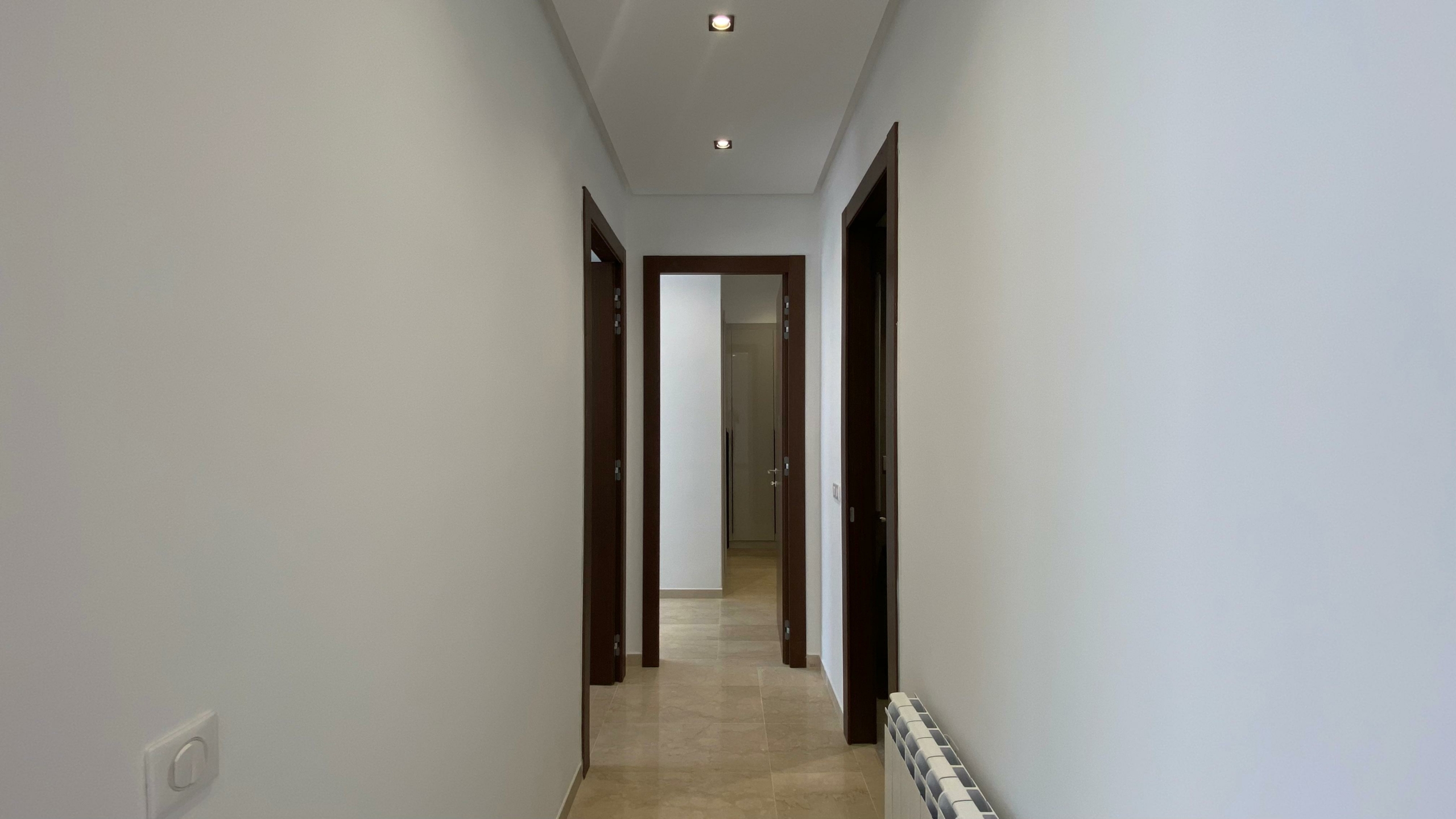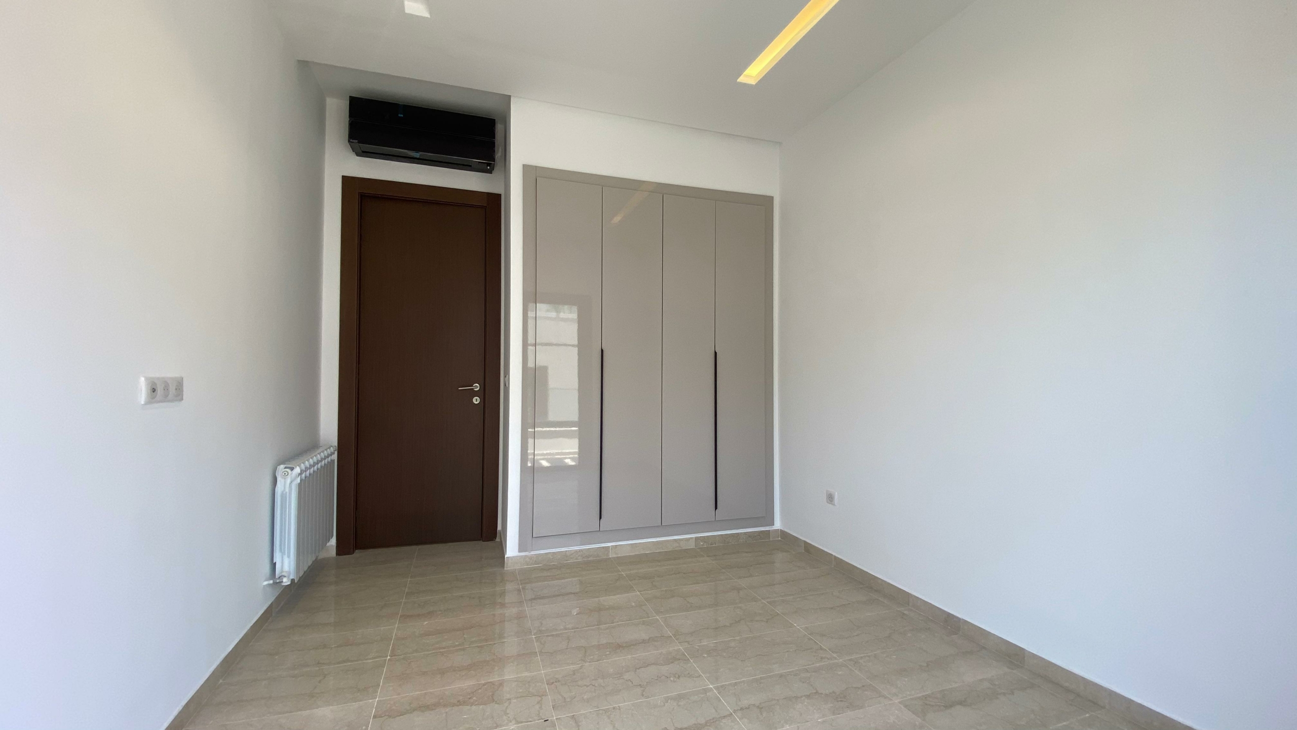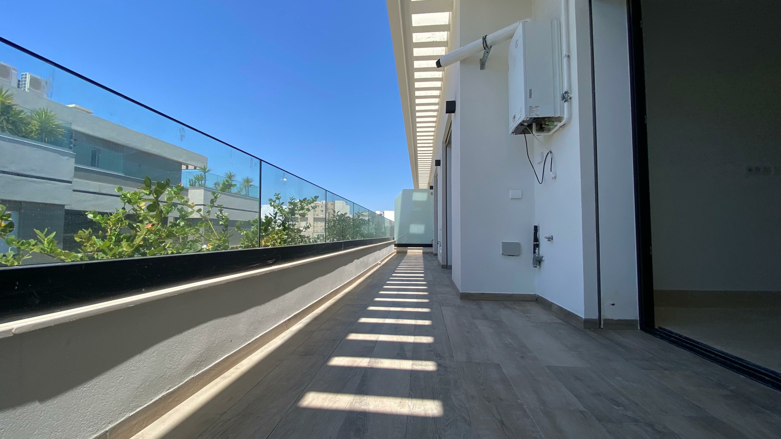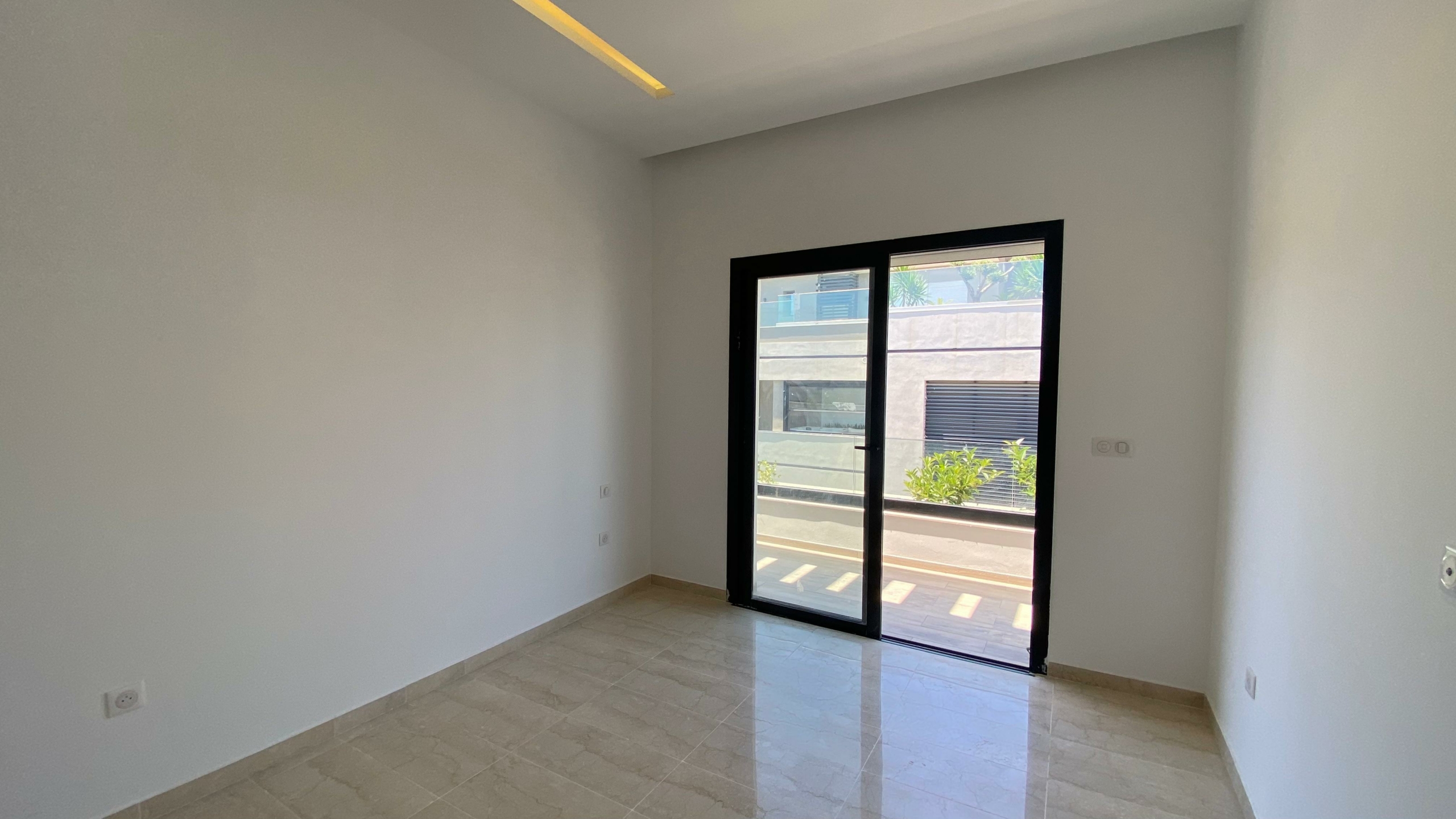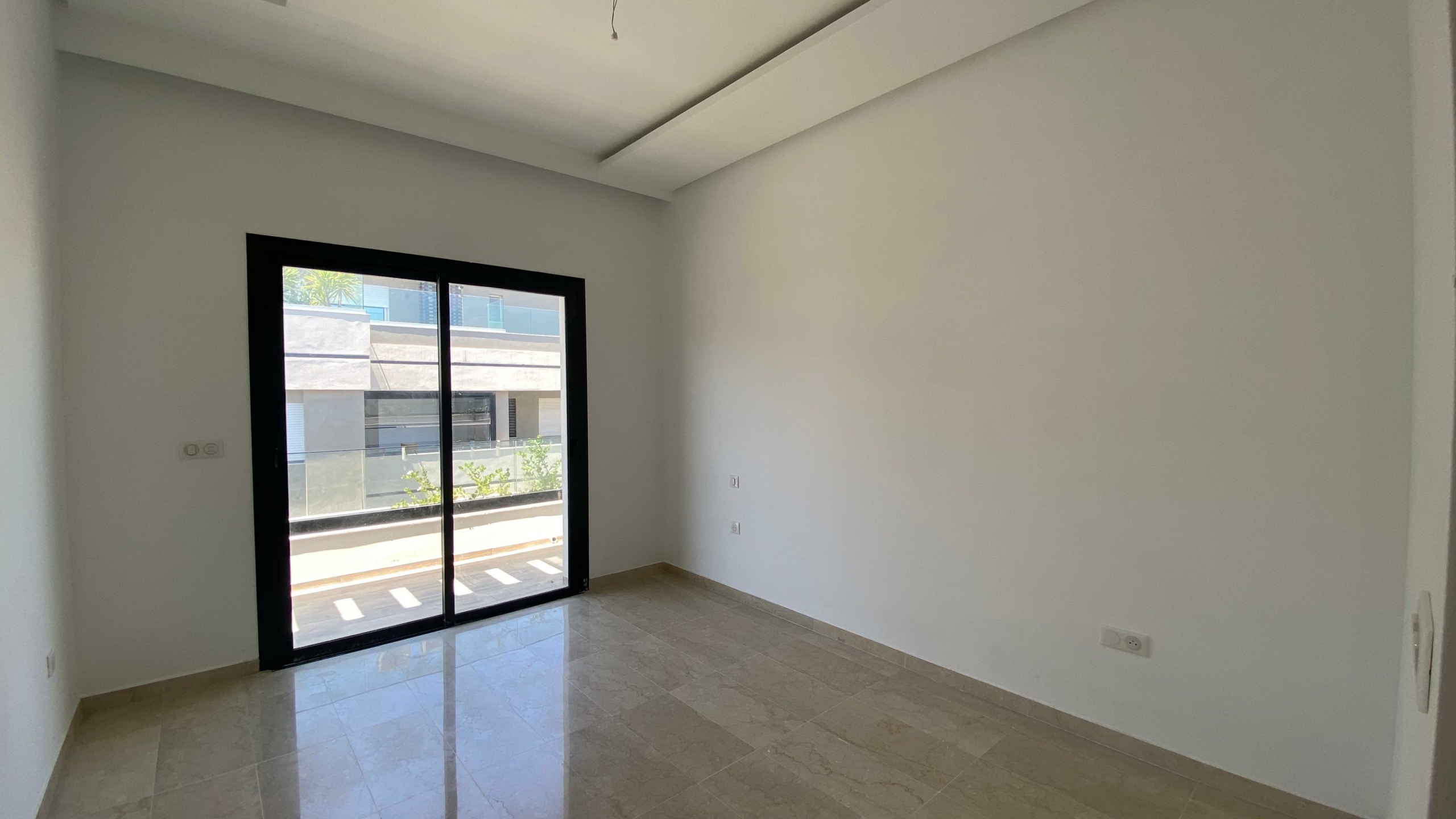 Appartement en S+2 neuf, situé au 3ème étage d’une résidence récemment construite, équipée d’un ascenseur. La partie jour comprend une cuisine américaine équipée, un salon lumineux avec terrasse ainsi qu’une salle de douche commune. La partie nuit se compose d’une suite parentale avec sa propre salle de douche et un dressing, ainsi que d’une chambre à coucher. L’appartement est doté de la climatisation et du chauffage.