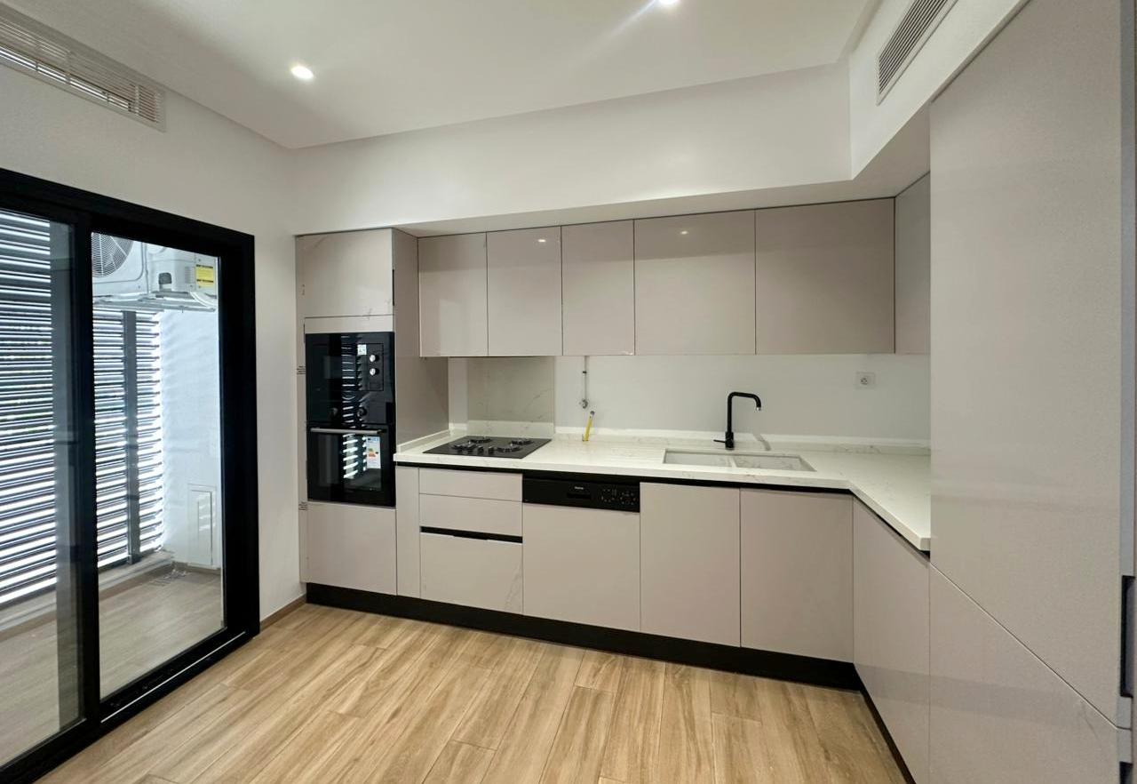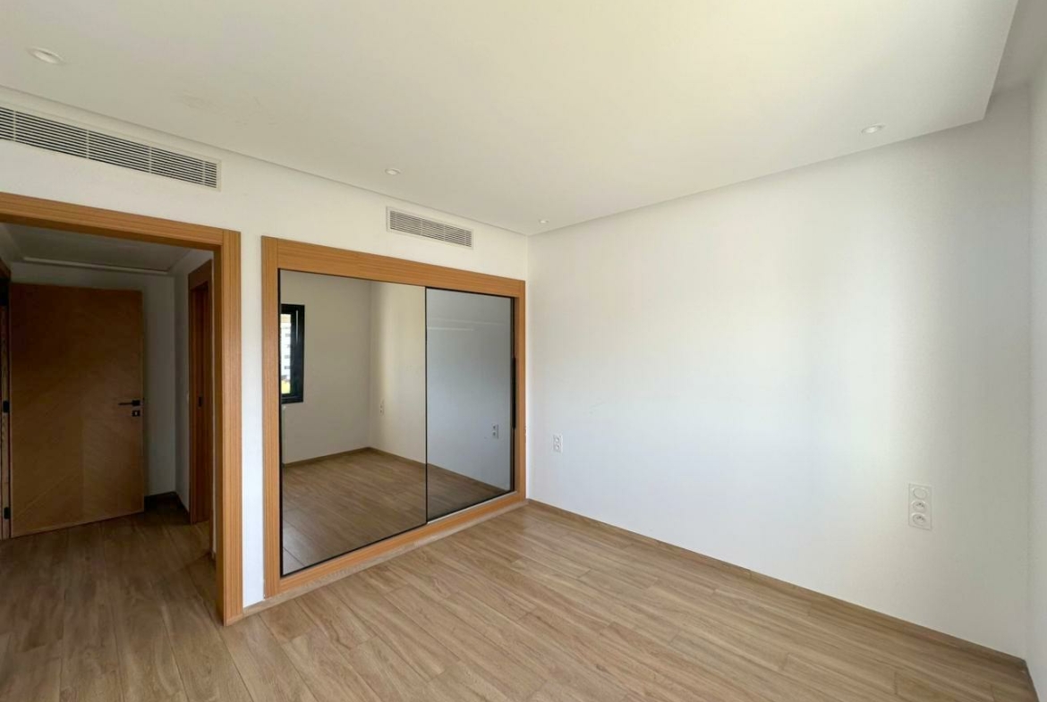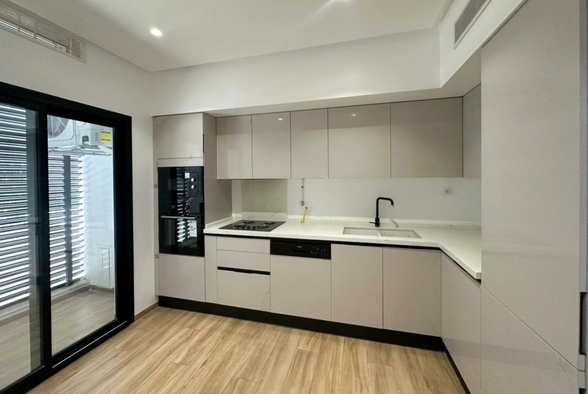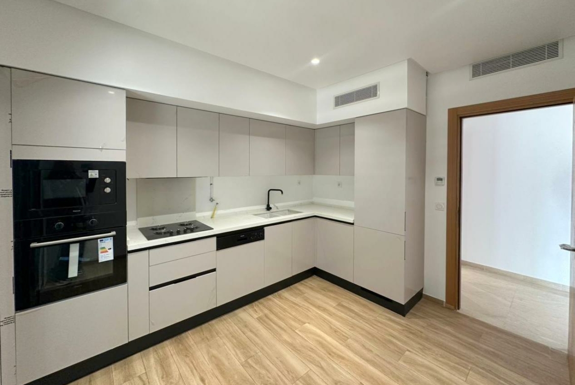 Cet appartement jamais habité est situé au deuxième étage d’une résidence récemment construite.