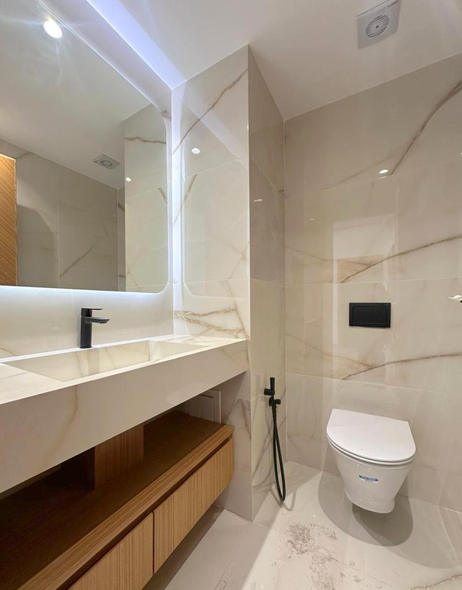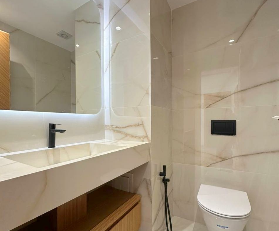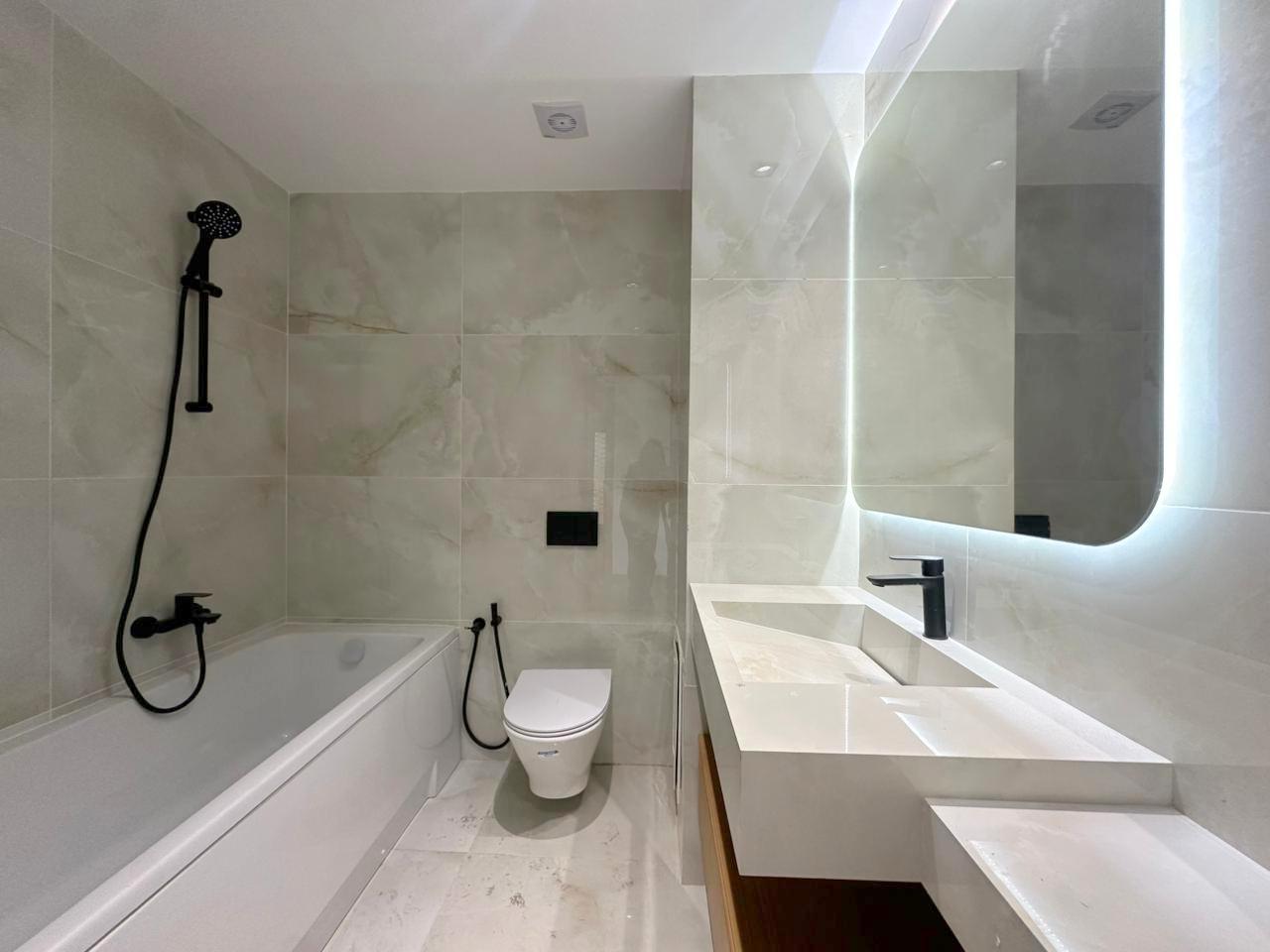 Cet appartement jamais habité est situé au deuxième étage d’une résidence récemment construite.