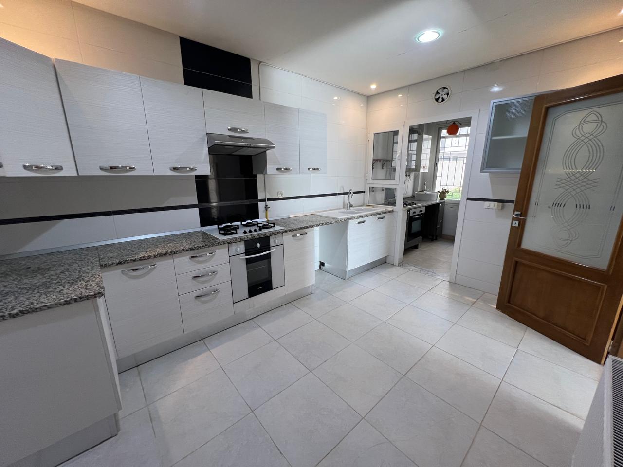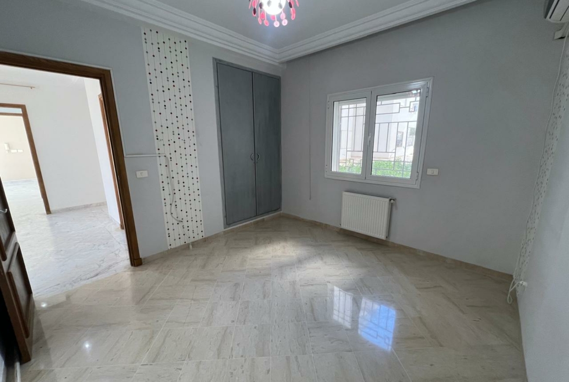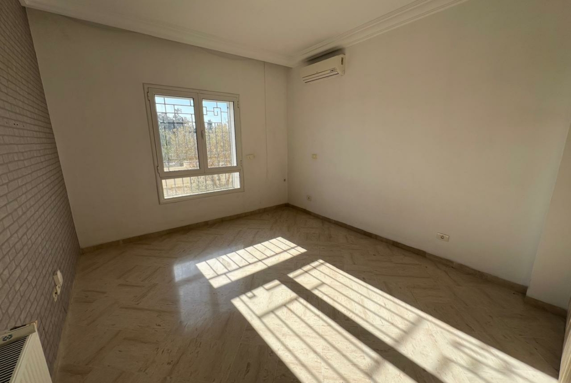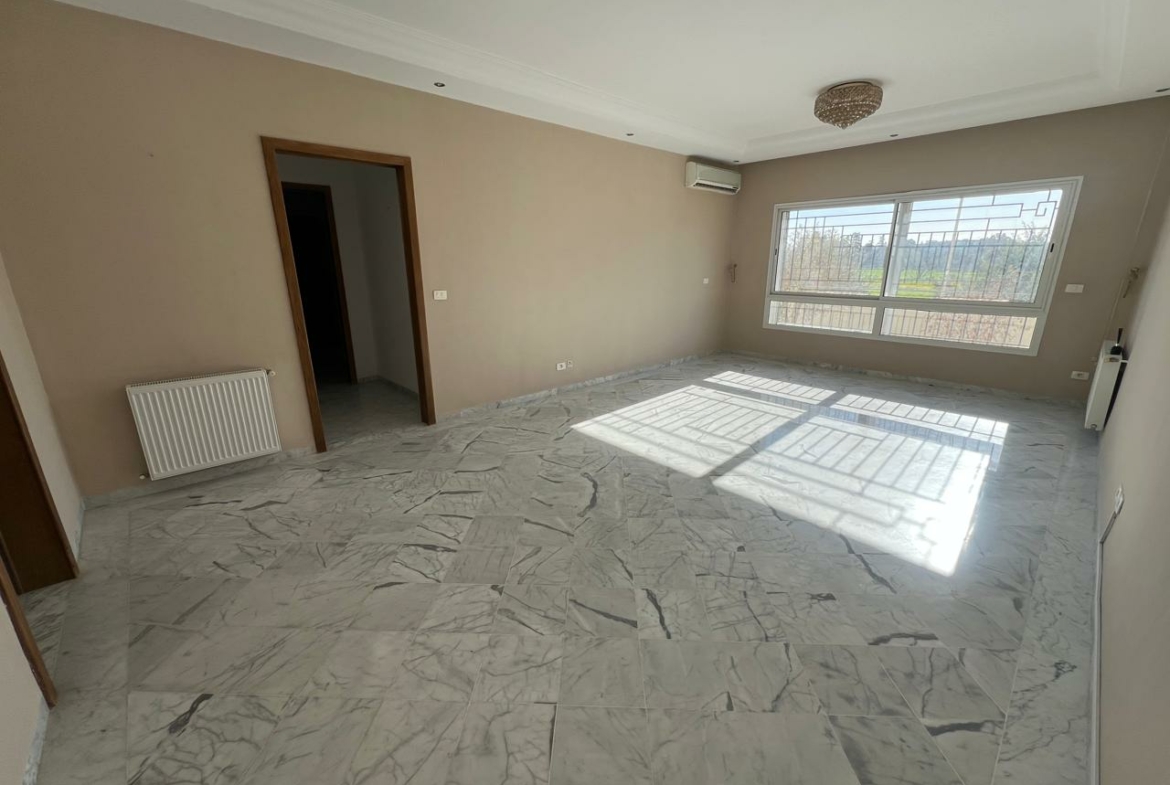 Appartement S+3 vide de 200 m², situé au rez-de-chaussée d’une résidence sécurisée, bénéficiant d’une bonne orientation.
