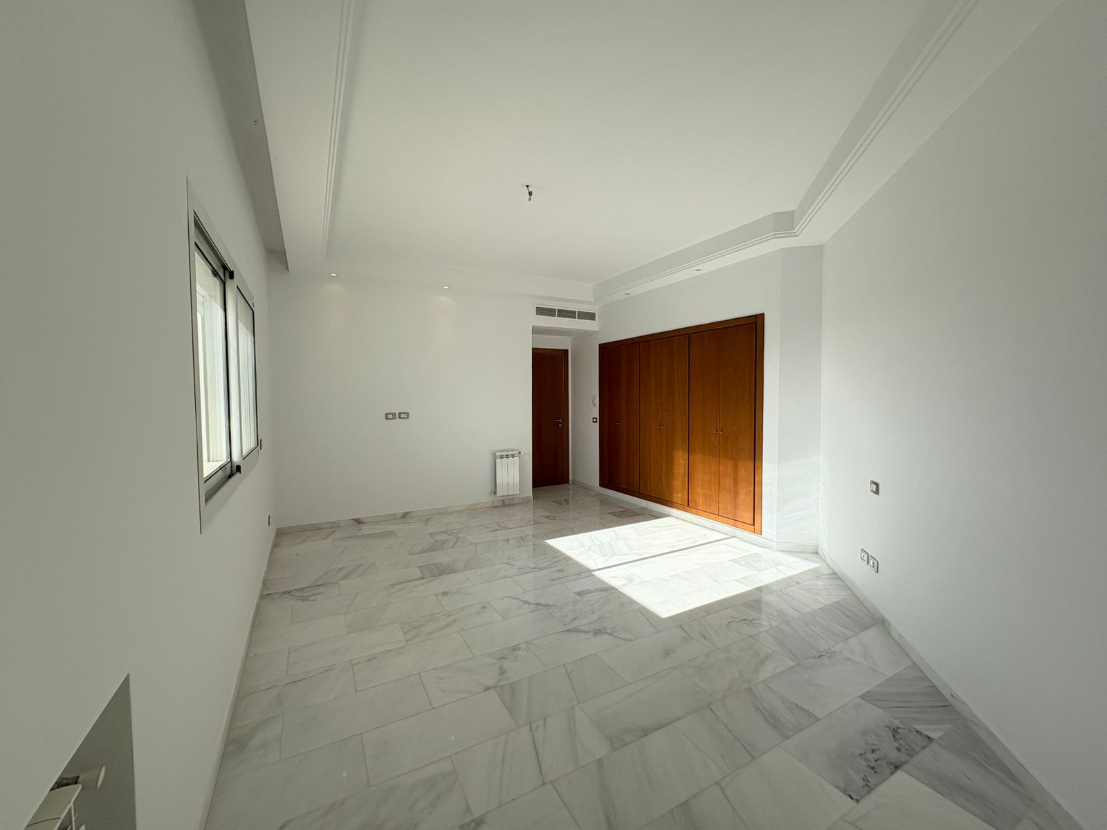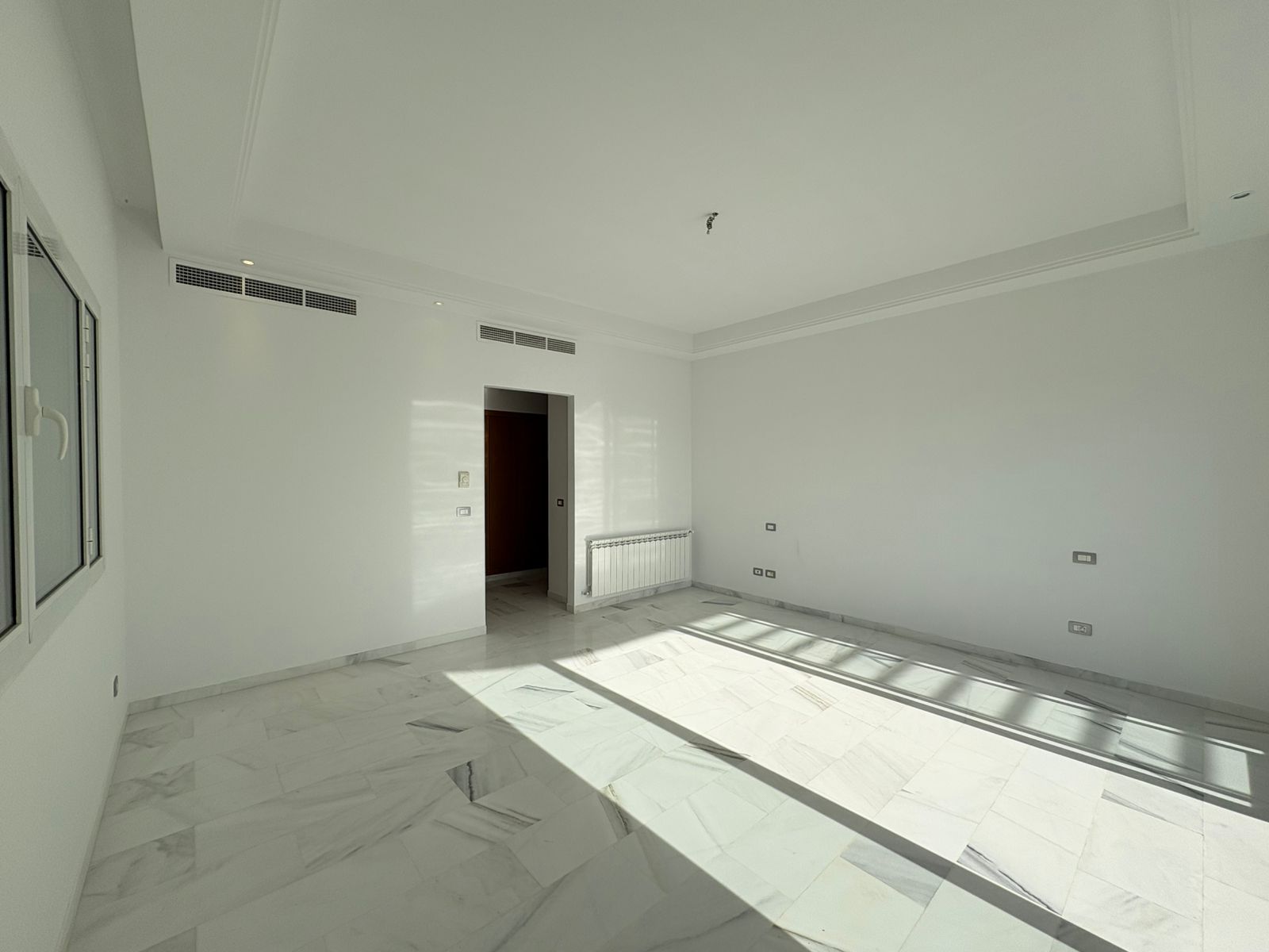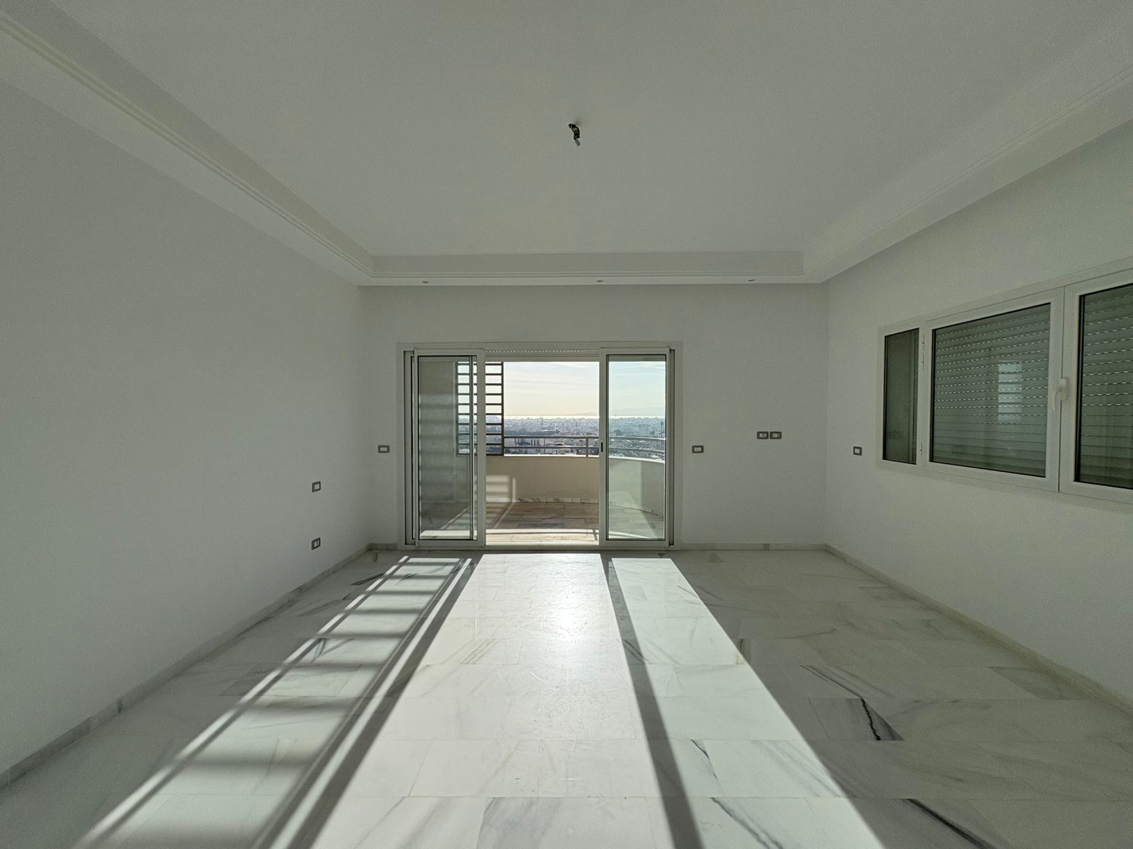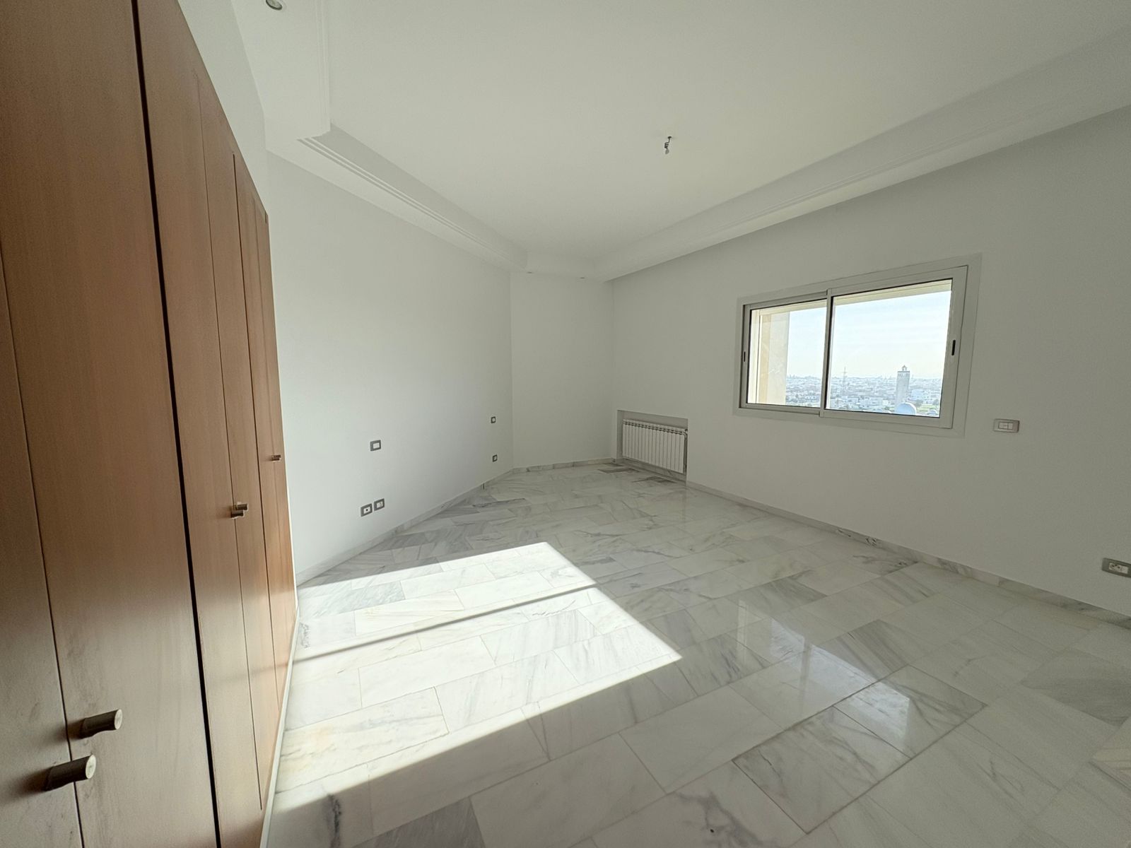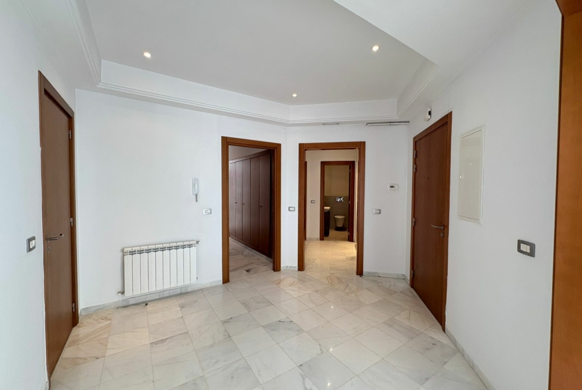 Appartement en S+3 vide, situé au 10ème étage d’une résidence sécurisée avec ascenseur. Il se compose d’un salon spacieux et lumineux avec terrasse, offrant une vue dégagée sur la forêt. La cuisine indépendante et équipée dispose d’un accès à un séchoir et est complétée par une salle d’eau pour les invités. La partie nuit comprend trois suites parentales, dont une avec accès à la terrasse, chacune bénéficiant de sa propre salle de bain et d’un espace dressing. L’appartement est doté de la climatisation et du chauffage.