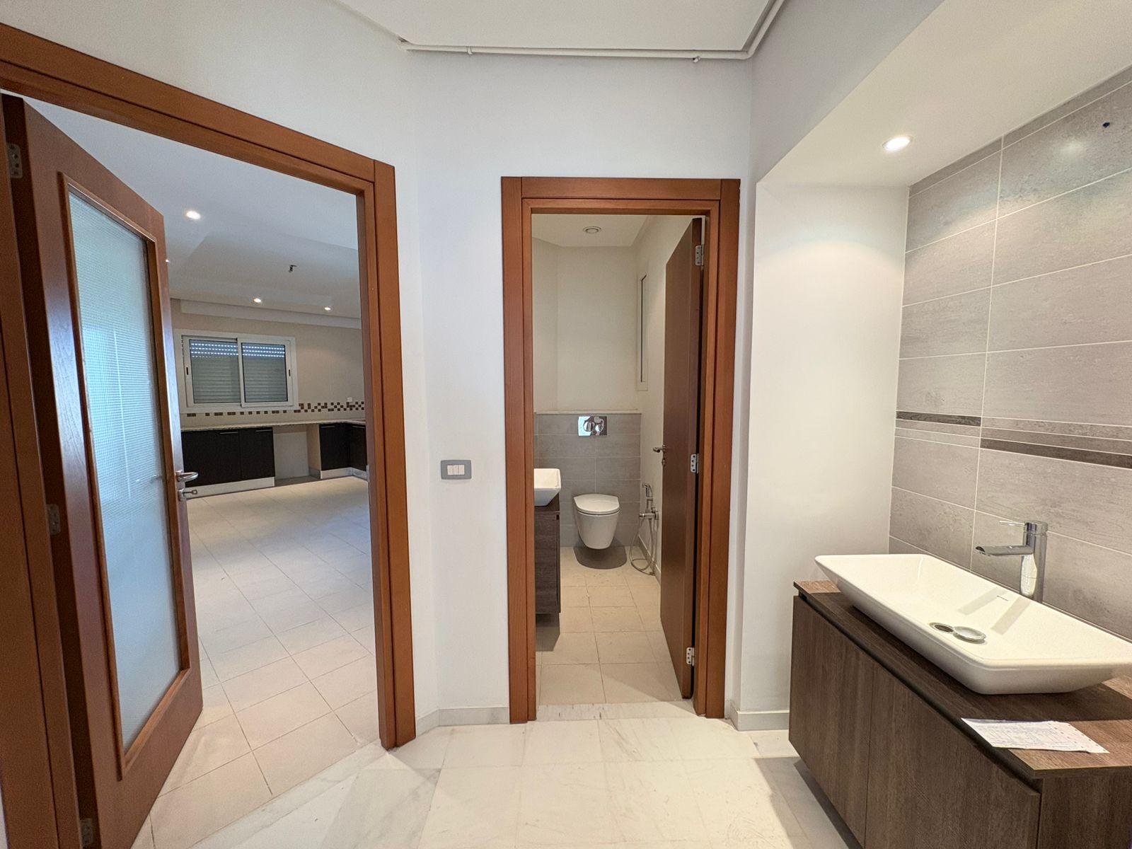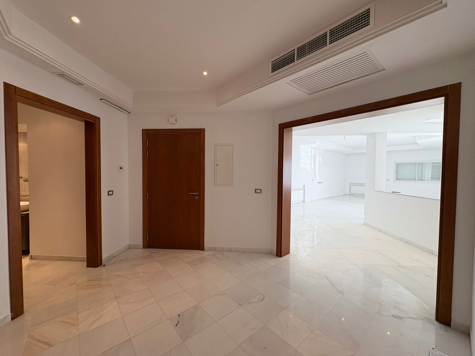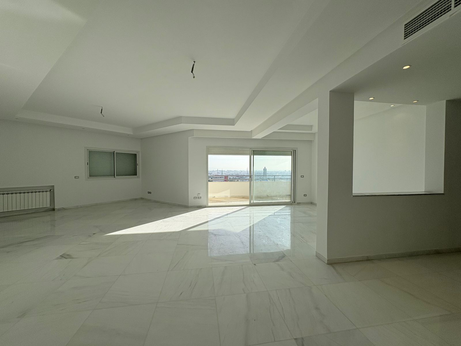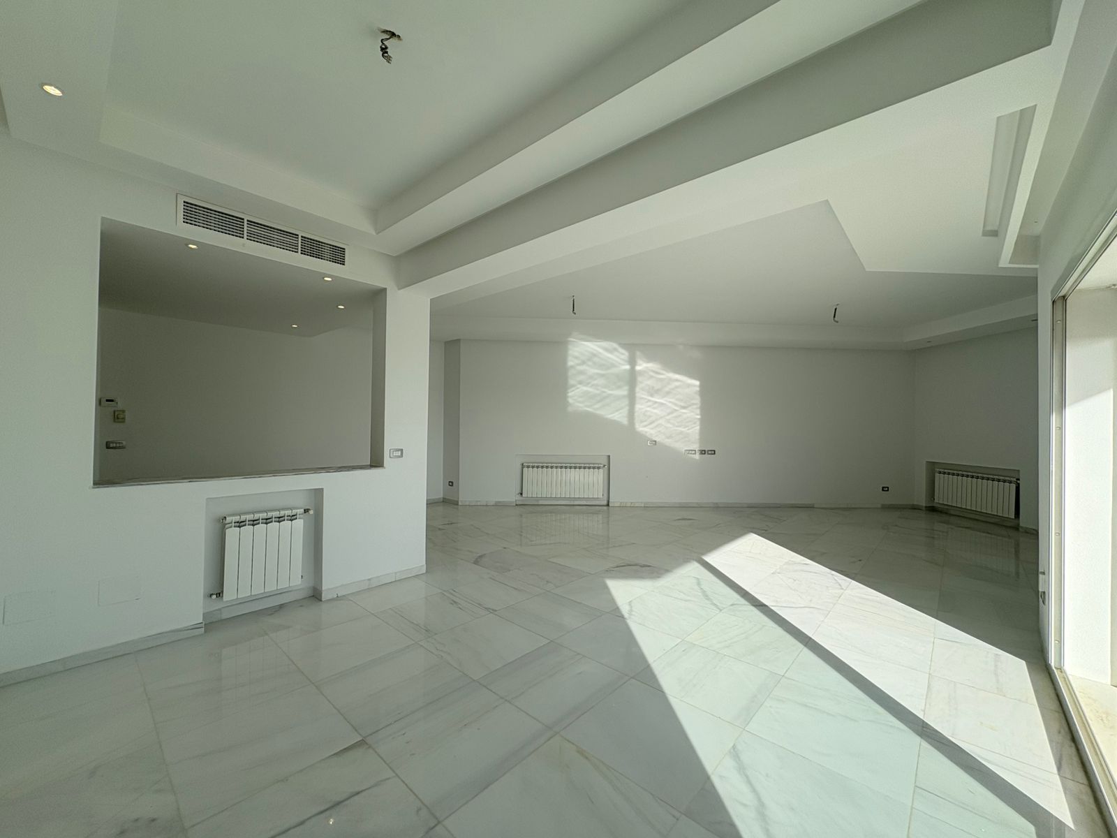 Appartement en S+3 vide, situé au 10ème étage d’une résidence sécurisée avec ascenseur. Il se compose d’un salon spacieux et lumineux avec terrasse, offrant une vue dégagée sur la forêt. La cuisine indépendante et équipée dispose d’un accès à un séchoir et est complétée par une salle d’eau pour les invités. La partie nuit comprend trois suites parentales, dont une avec accès à la terrasse, chacune bénéficiant de sa propre salle de bain et d’un espace dressing. L’appartement est doté de la climatisation et du chauffage.