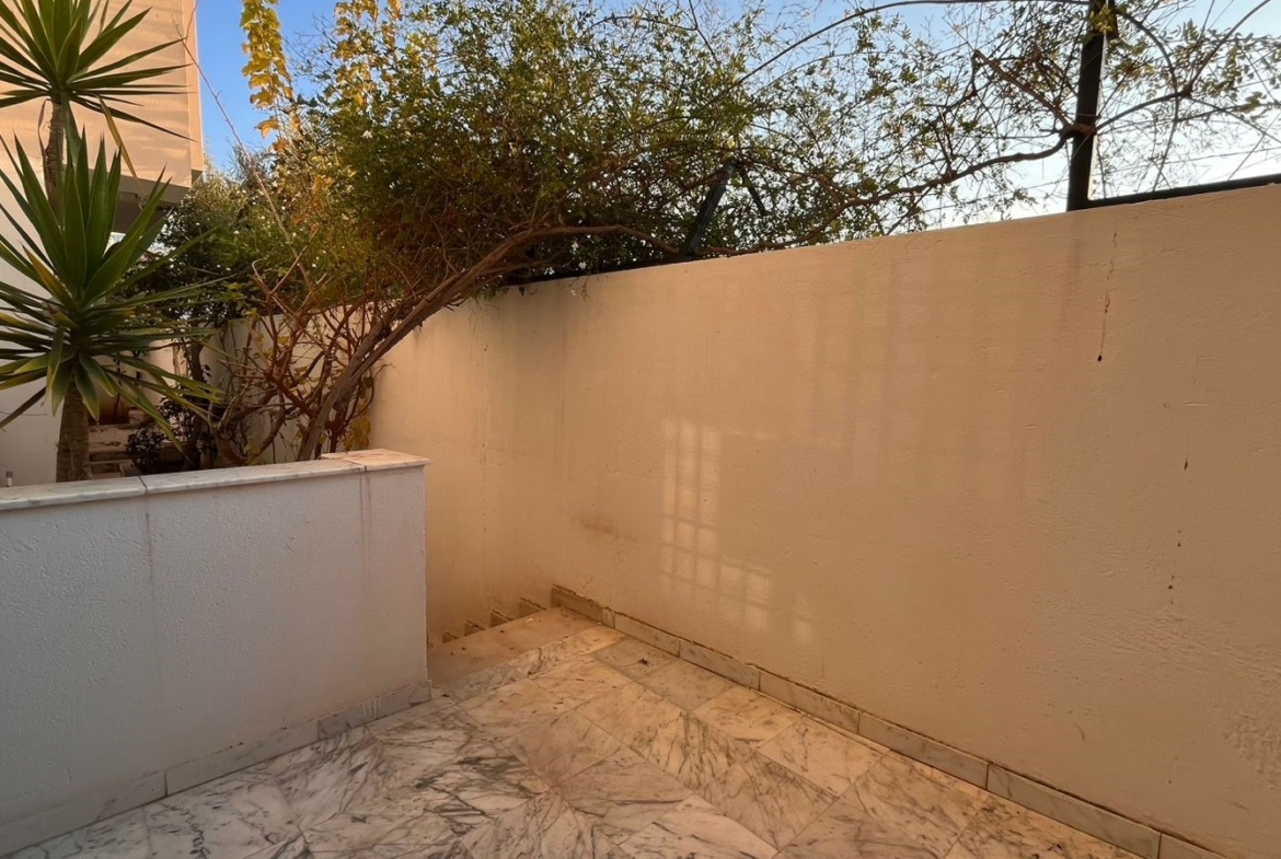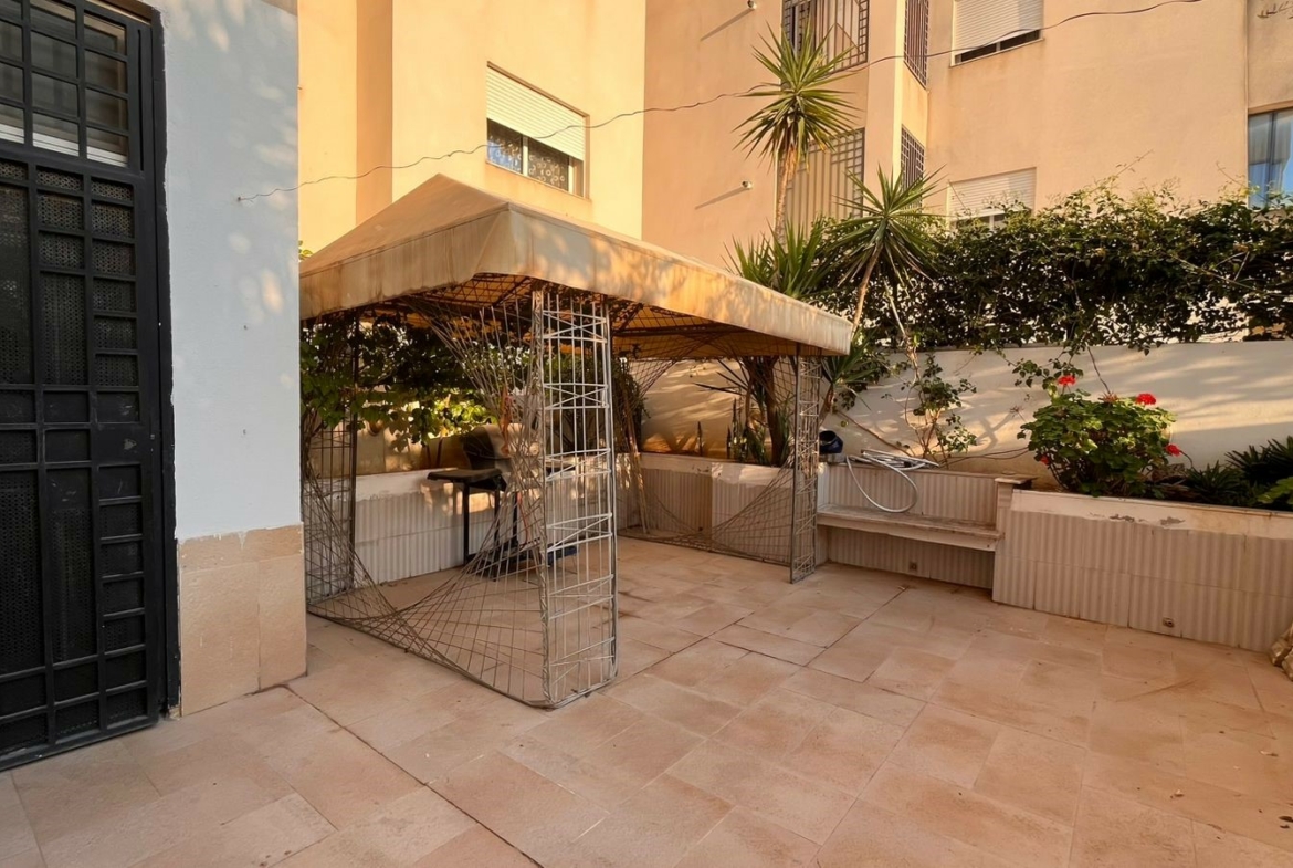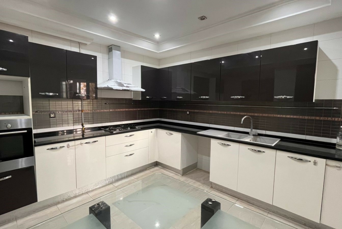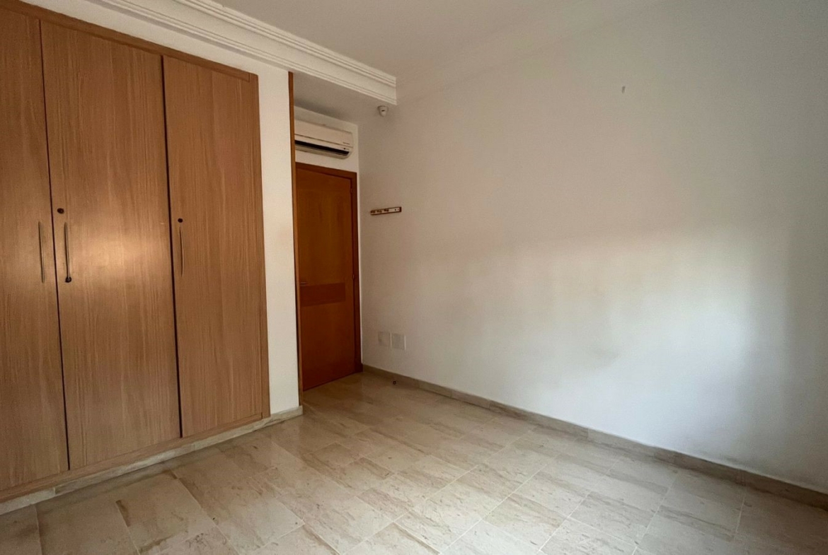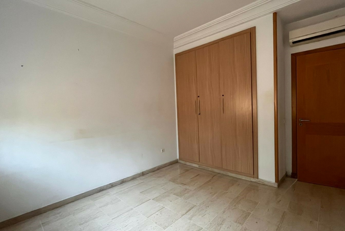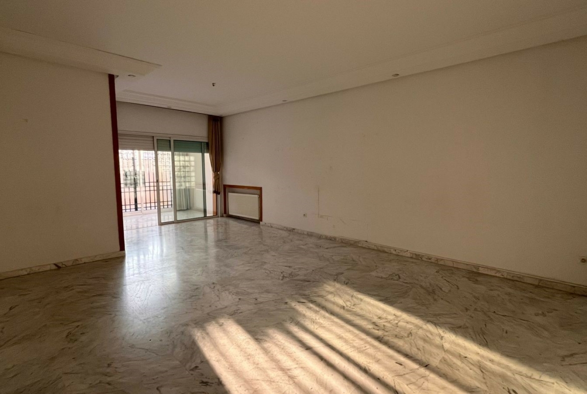 Appartement en S+3 vide d’une superficie de 155 m², situé au rez-de-chaussée d’une résidence sécurisée et bien gardée, dotée d’un ascenseur.