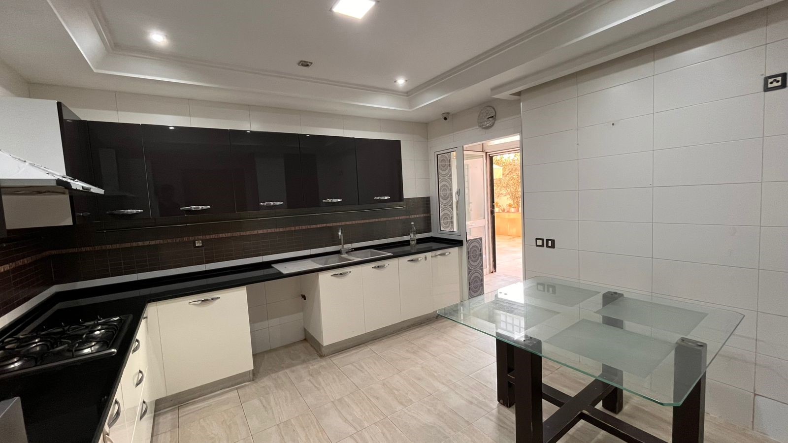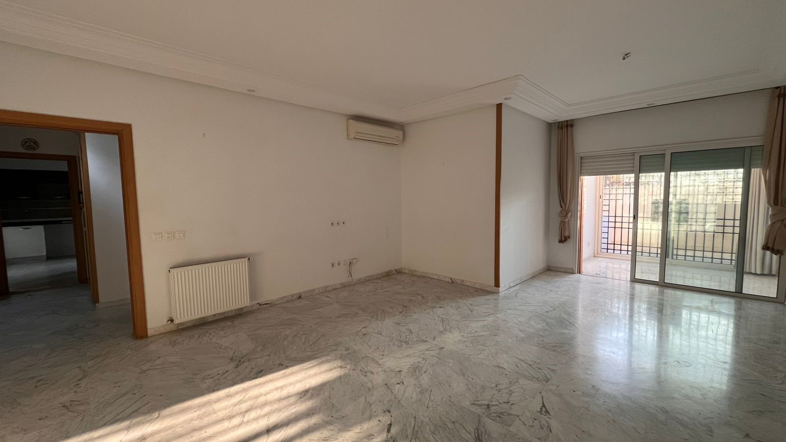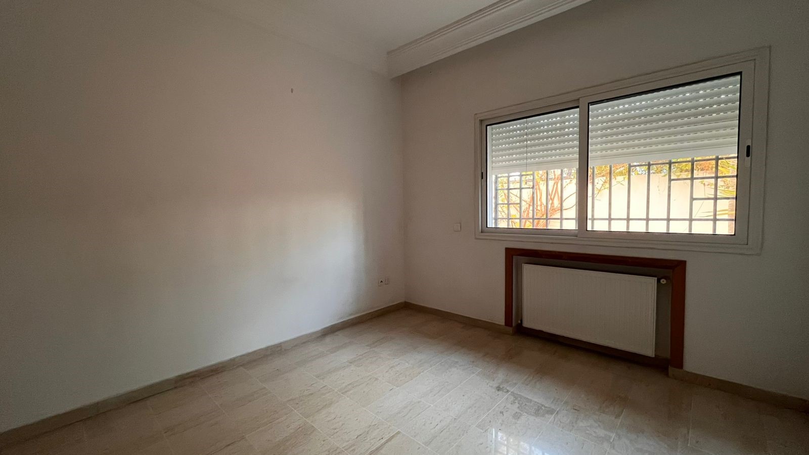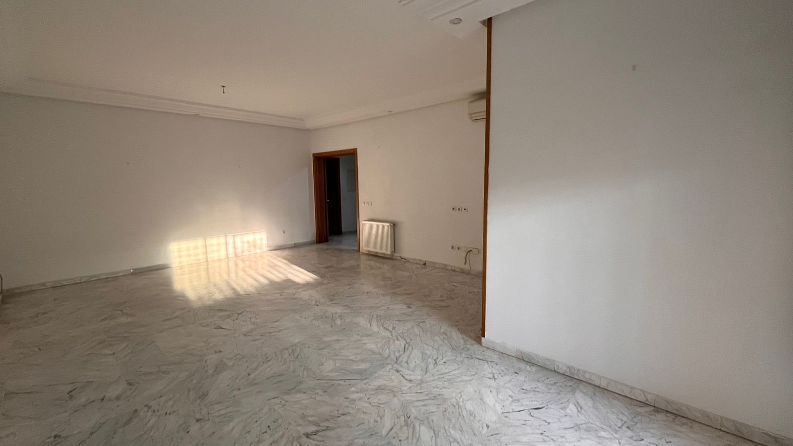 Appartement en S+3 vide d’une superficie de 155 m², situé au rez-de-chaussée d’une résidence sécurisée et bien gardée, dotée d’un ascenseur.