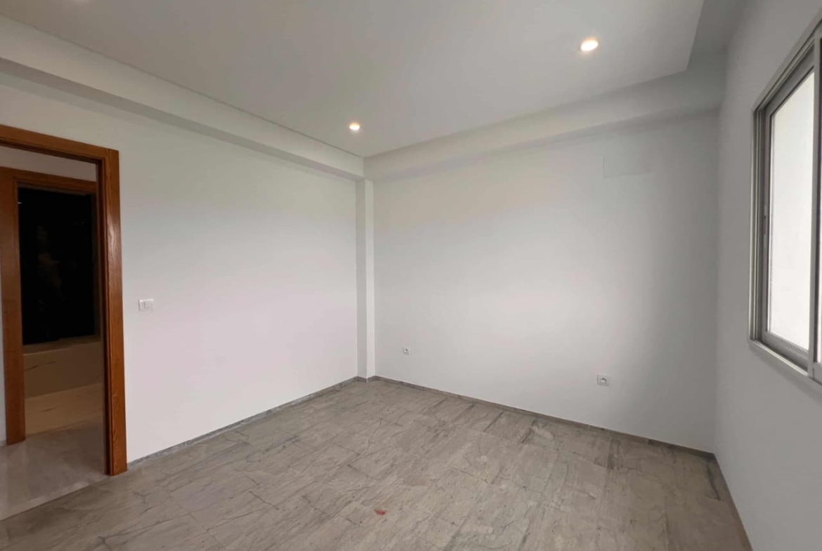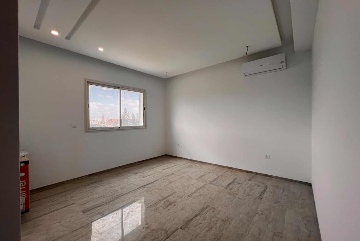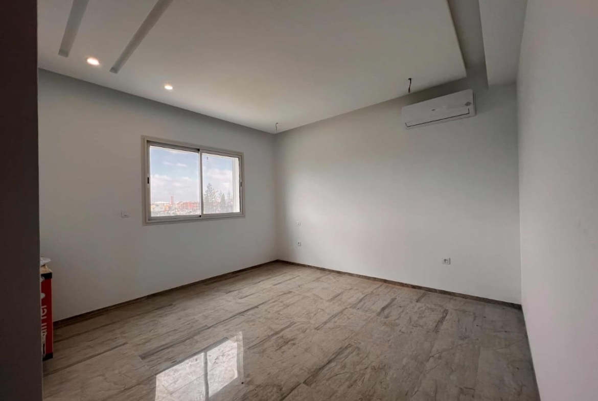 Appartement en S+3 jamais habité , situé au 2 ème étage d’une résidence sécurisée avec ascenseur. Il se compose d’un salon spacieux et lumineux avec terrasse, offrant une vue dégagée . La cuisine indépendante et équipée dispose d’un accès à un séchoir et est complétée par une salle d’eau pour les invités. La partie nuit comprend une suite parentale et deux chambres à couchers , bénéficiant d’une salle de bain commines et d’un espace dressing. L’appartement est doté de la climatisation et du chauffage.
