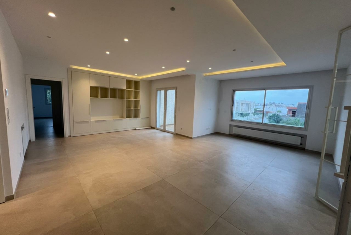 Cet appartement en S+3, de 179 m² direct promoteur, est situé dans une résidence à soukra. Cette dernière est équipée d’un double ascenseur. L’appartement s’ouvre sur un grand salon lumineux, avec une terrasse qui offre une vue dégagée La cuisine, entièrement équipée et aménagée, comprend également un séchoir. Une salle d’eau est disponible pour les invités. Dans la continuité, la partie nuit loge une suite parentale et deux chambres à coucher. Une salle de bain est également disponible. L’appartement est équipé d’un système de chauffage central.