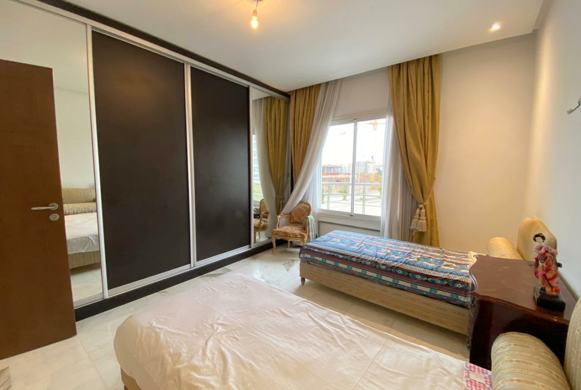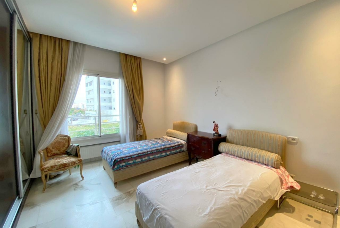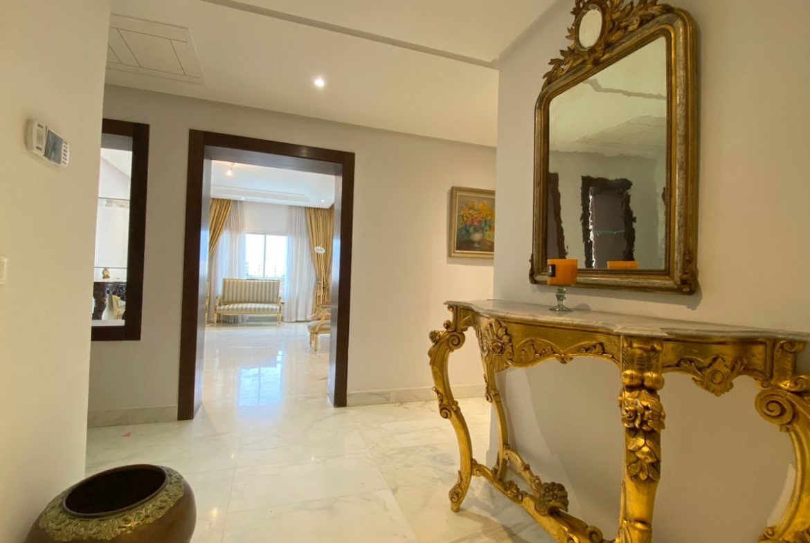 Cet appartement est situé au premier étage d’une résidence calme et sécurisée. L’entrée s’ouvre sur un salon lumineux donnant accès à un balcon, ainsi qu’à une cuisine entièrement aménagée et équipée comprenant une plaque de cuisson,, un four électrique une hotte aspirante, un micro-ondes, un réfrigérateur et une machine à laver, complétée par un séchoir. Une salle d’eau pour invités complète la partie jour, avec chauffage central et climatisation. La partie nuit se compose de deux chambres à coucher avec dressing, d’une suite parentale avec dressing et salle de douche, ainsi que d’une salle de bains commune. Une place de parking est réservée au sous-sol pour les futurs propriétaires.