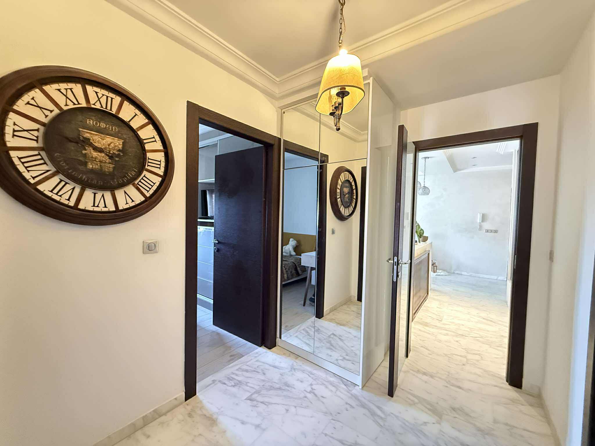 Dès l’entrée, vous êtes accueilli par un hall menant à un salon baigné de lumière naturelle et s’ouvre sur un balcon qui offre une vue dégagée.