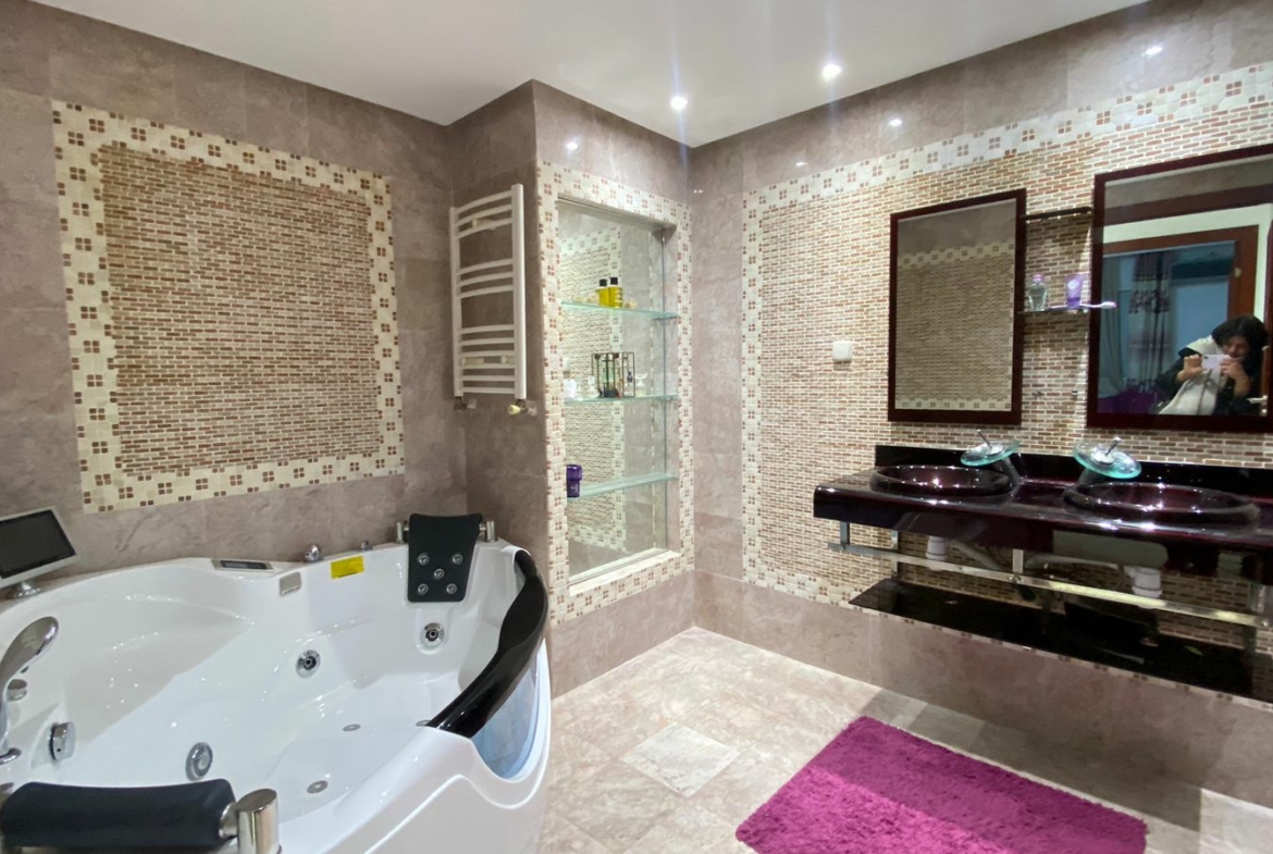 Les salles d’eau sont dotées de cabines de douche vitrées. L’appartement est équipé du chauffage et de la climatisation, assurant un confort optimal en toute saison, et dispose d’une place de parking dédiée.