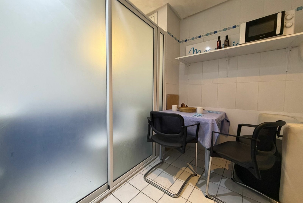 Le studio se compose d’une pièce principale, d’un coin kitchenette et d’une salle d’eau.