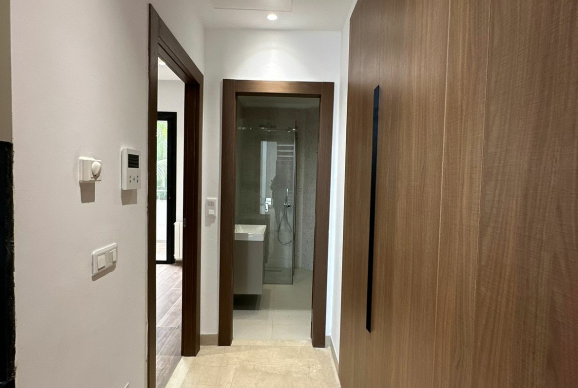 Le rez-de-chaussée comprend dant la partie jour comprend une kitchenette équipée et aménagée (plaque, hotte et four), un séchoir avec fenêtre, ainsi qu’un accès direct à la terrasse. Salon, une salle à manger, une chambre avec dressing, une salle de douche