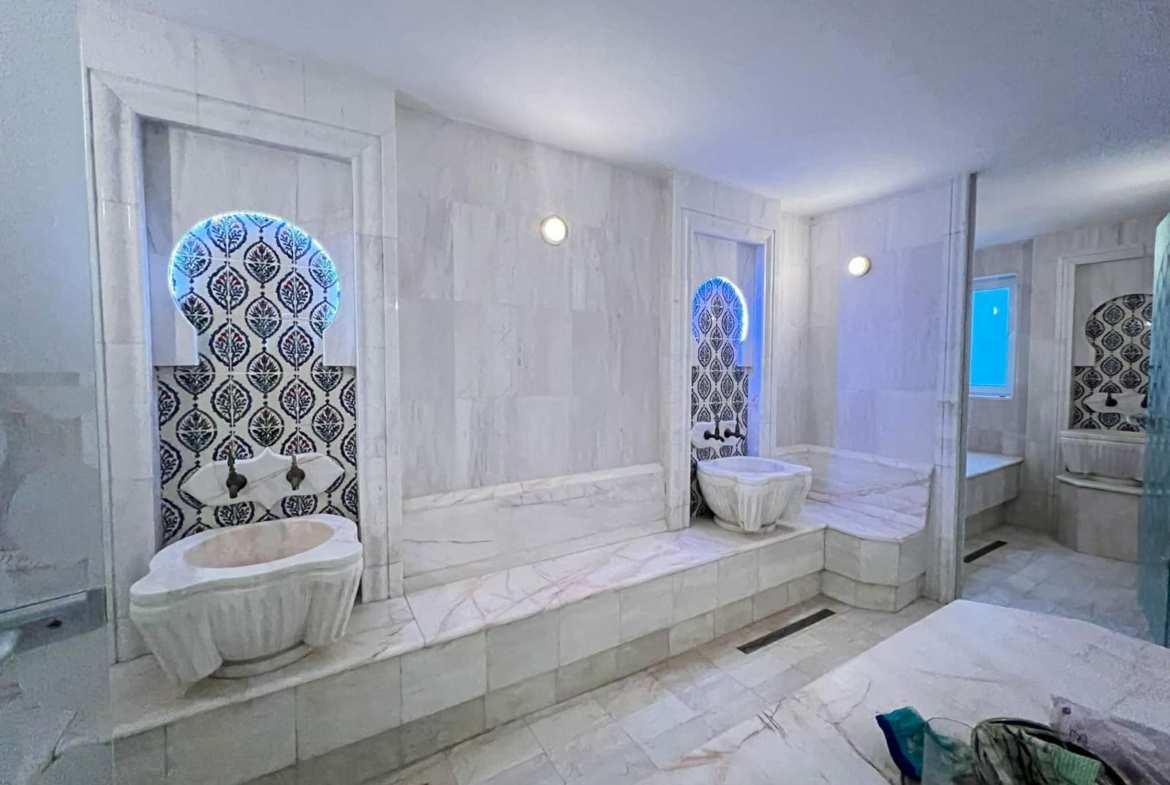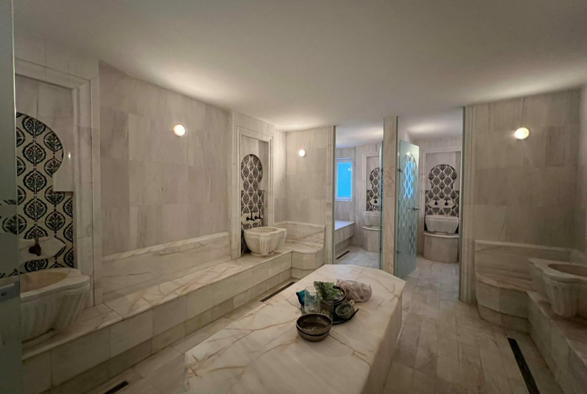Située dans un environnement recherché et privilégié, cette somptueuse villa d’angle de 413 m² incarne l’excellence architecturale et l’art de vivre haut de gamme. Conçue pour une clientèle exigeante, elle offre des volumes exceptionnels baignés de lumière, répartis sur trois niveaux aux prestations rares. Le rez-de-jardin dévoile un espace bien-être d’exception, inspiré des hammams turcs, entièrement habillé de marbre blanc et pensé comme un véritable spa privé. À l’étage supérieur, l’esprit penthouse s’impose avec un vaste open-space contemporain de 100 m², sublimé par une toiture escamotable et un balcon à la vue dégagée, créant une expérience unique entre intérieur et extérieur. Alliant finitions haut standing, concept architectural singulier et intimité absolue, ce bien rare représente une opportunité idéale pour une résidence de prestige ou un investissement immobilier d’exception.