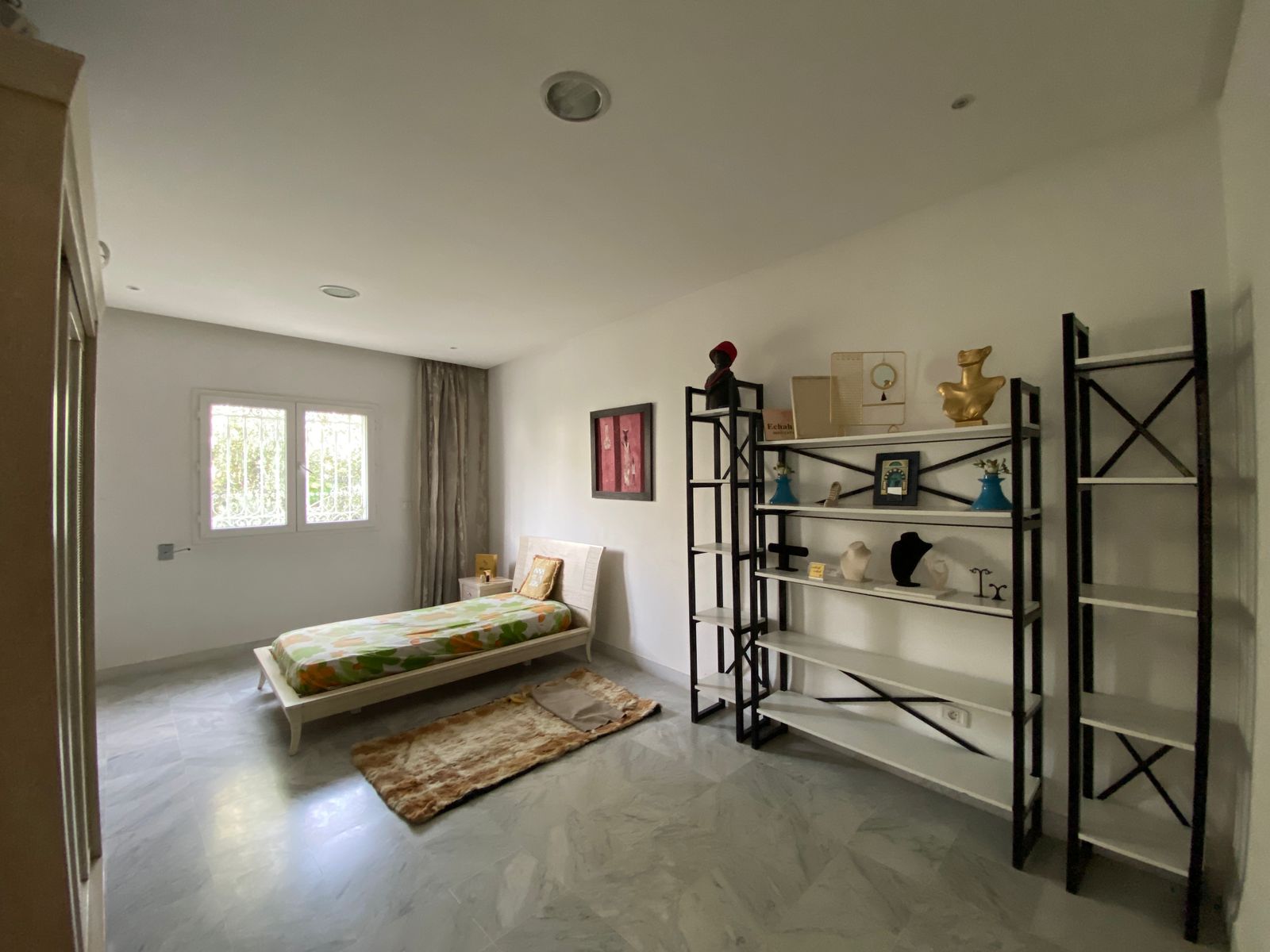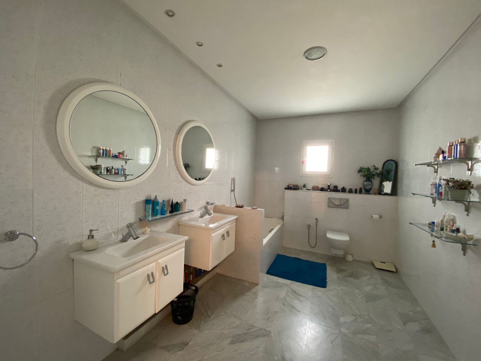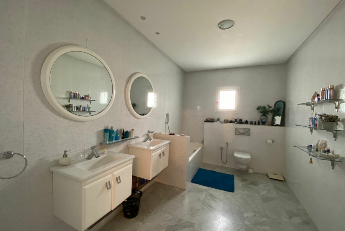 Cette villa comprend un S+4, une suite parentale avec salle de bain privative et baignoire, ainsi qu’une cuisine équipée et aménagée.